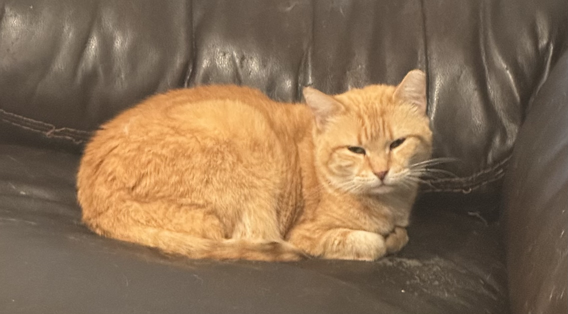 She’s low maintenance, not big on toys, and happiest lounging indoors watching birds from the window. Her striking green eyes and rare orange female coat make her even more special.