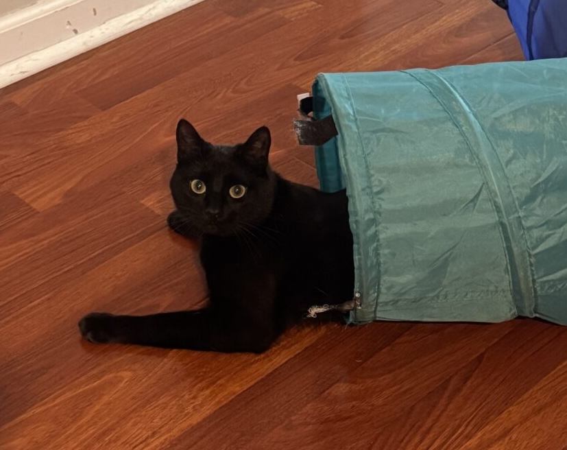 This boy is a cuddle magnet. He leans into affection like it’s his favorite sport, purring with abandon and curling into laps like he was born to be held. He’s playful, too—chasing toys, tumbling with joy, and bringing laughter wherever he goes. His bright green eyes sparkle with curiosity and trust, as if he knows he was saved—and he’s ready to live like it.
