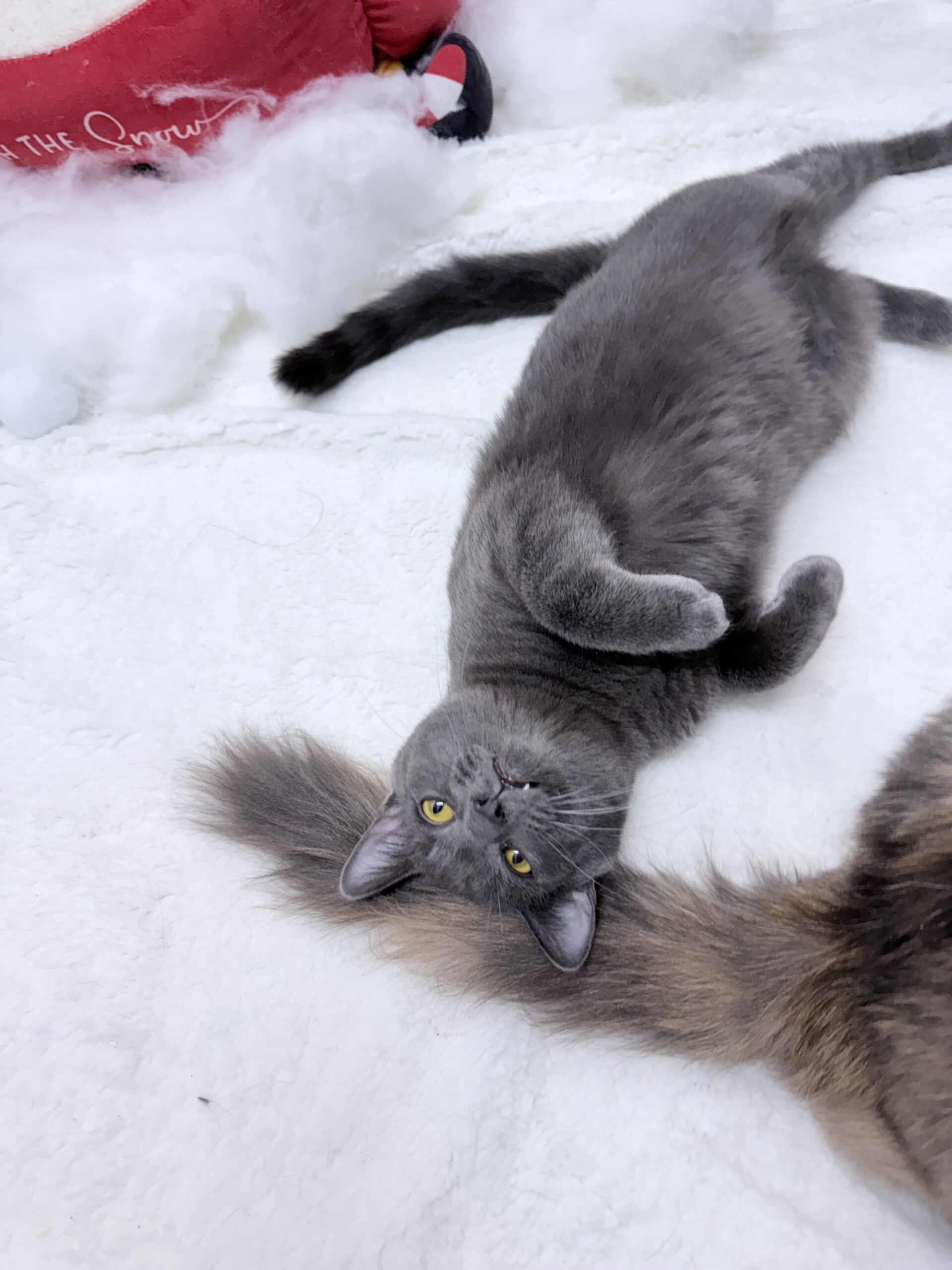 They nap in a tangled pile, groom each other like synchronized swimmers, and have perfected the art of the triple purr. These babies must be adopted together—they’re a bonded bundle of joy, mischief, and unconditional love.