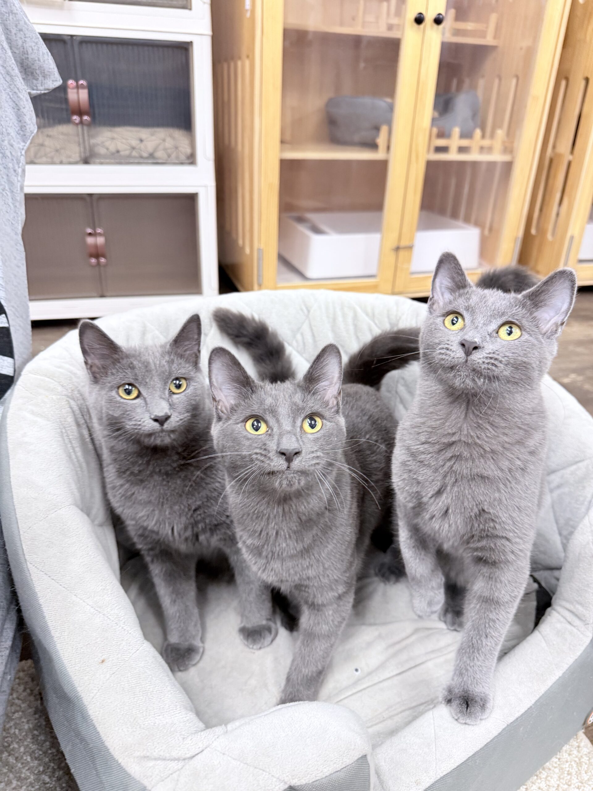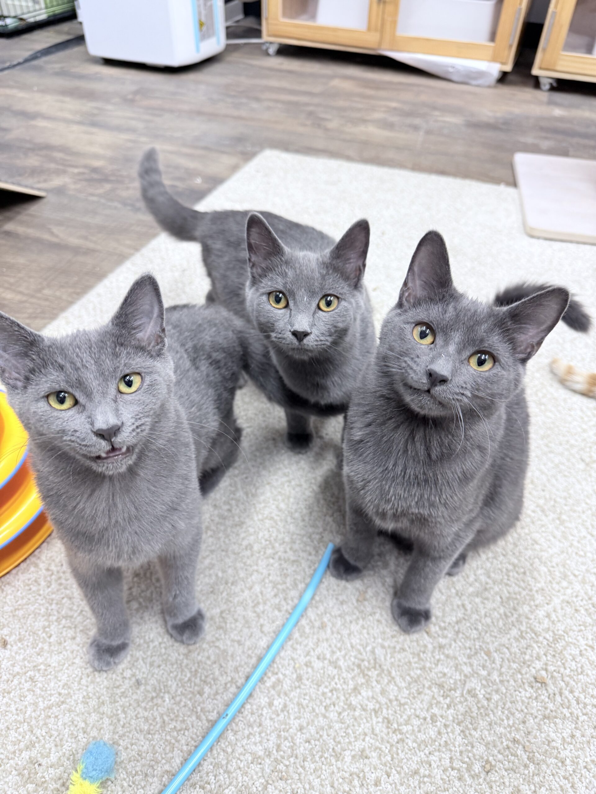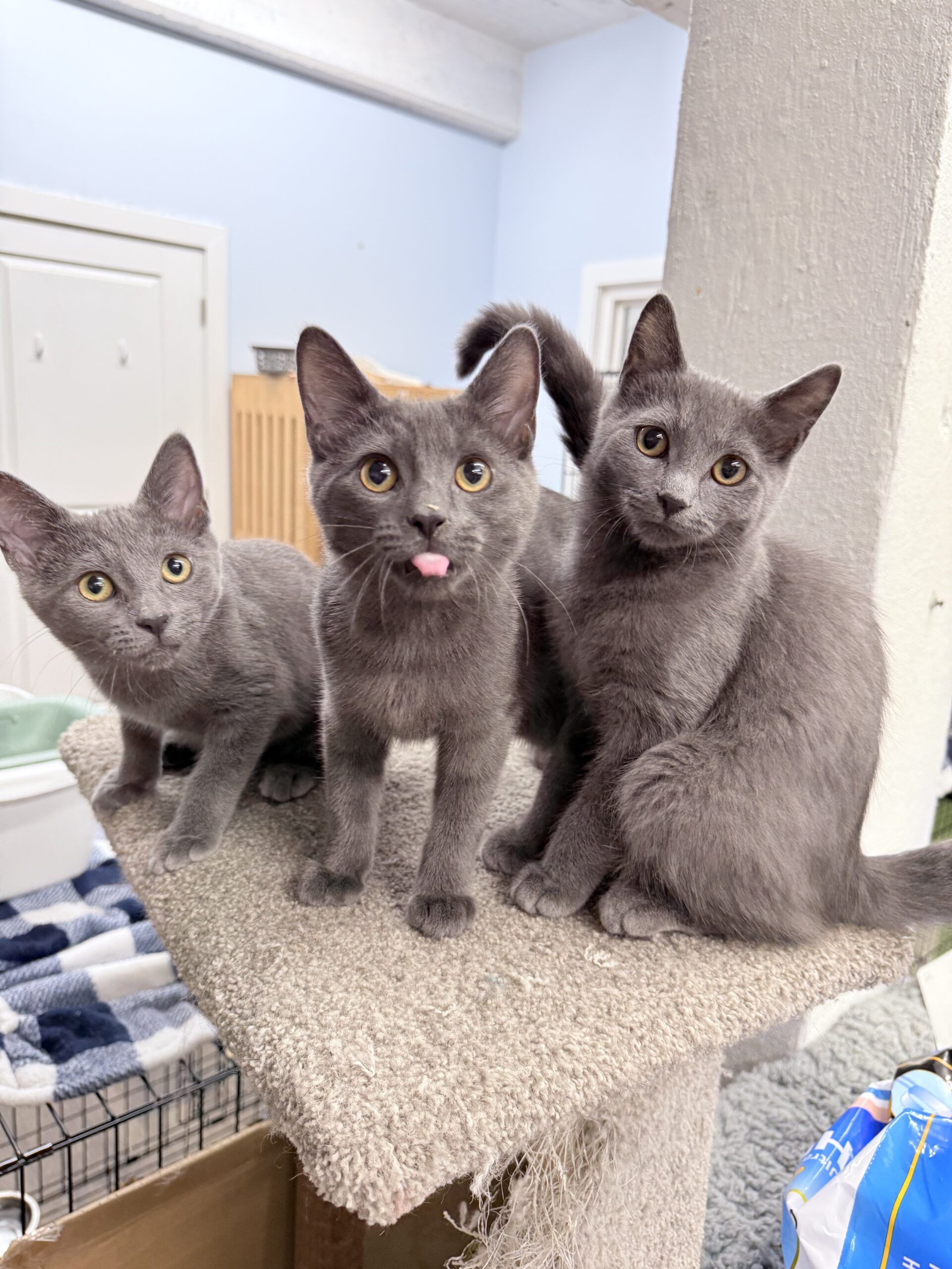 Discovered behind a Popeyes with hearts full of hope and bellies full of curiosity, Chonathan, Chollie, and Chulianna are three 6-month-old grey fluffballs who are equal parts sweet, goofy, and inseparable.