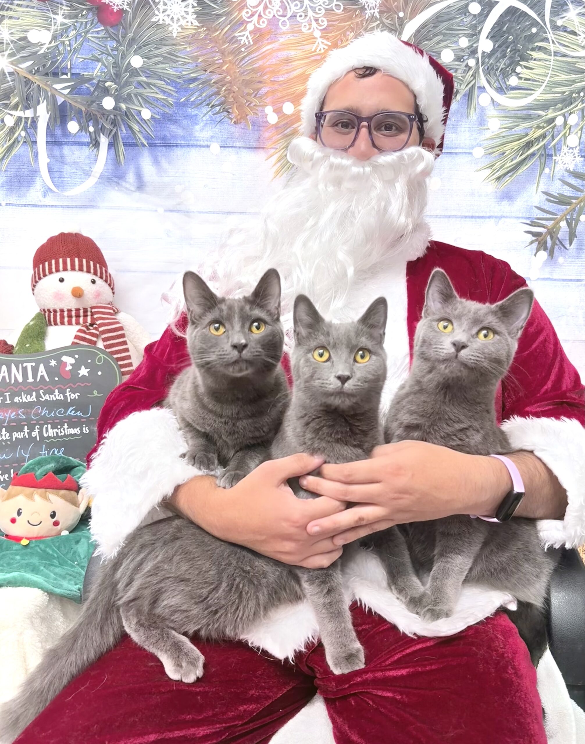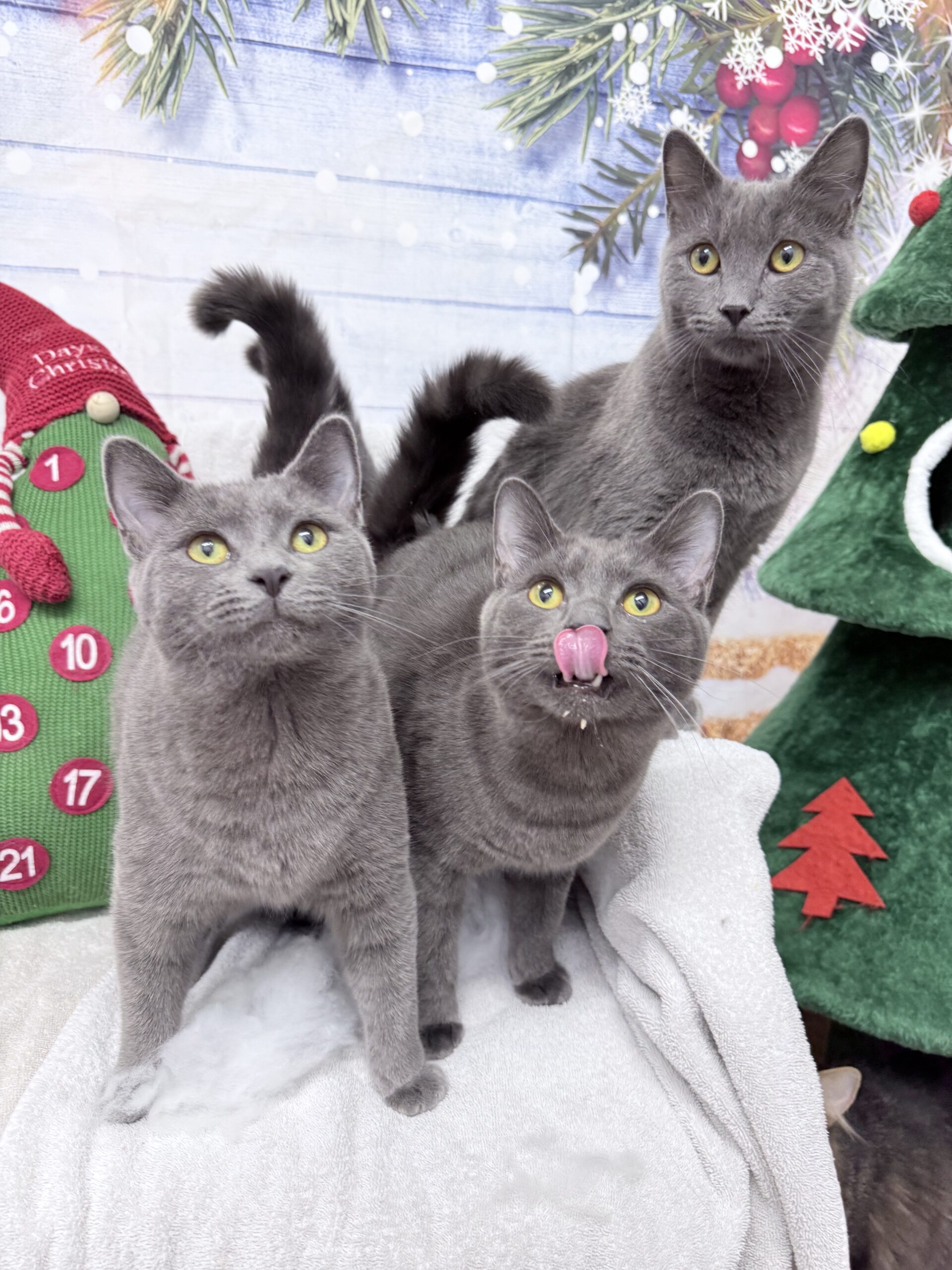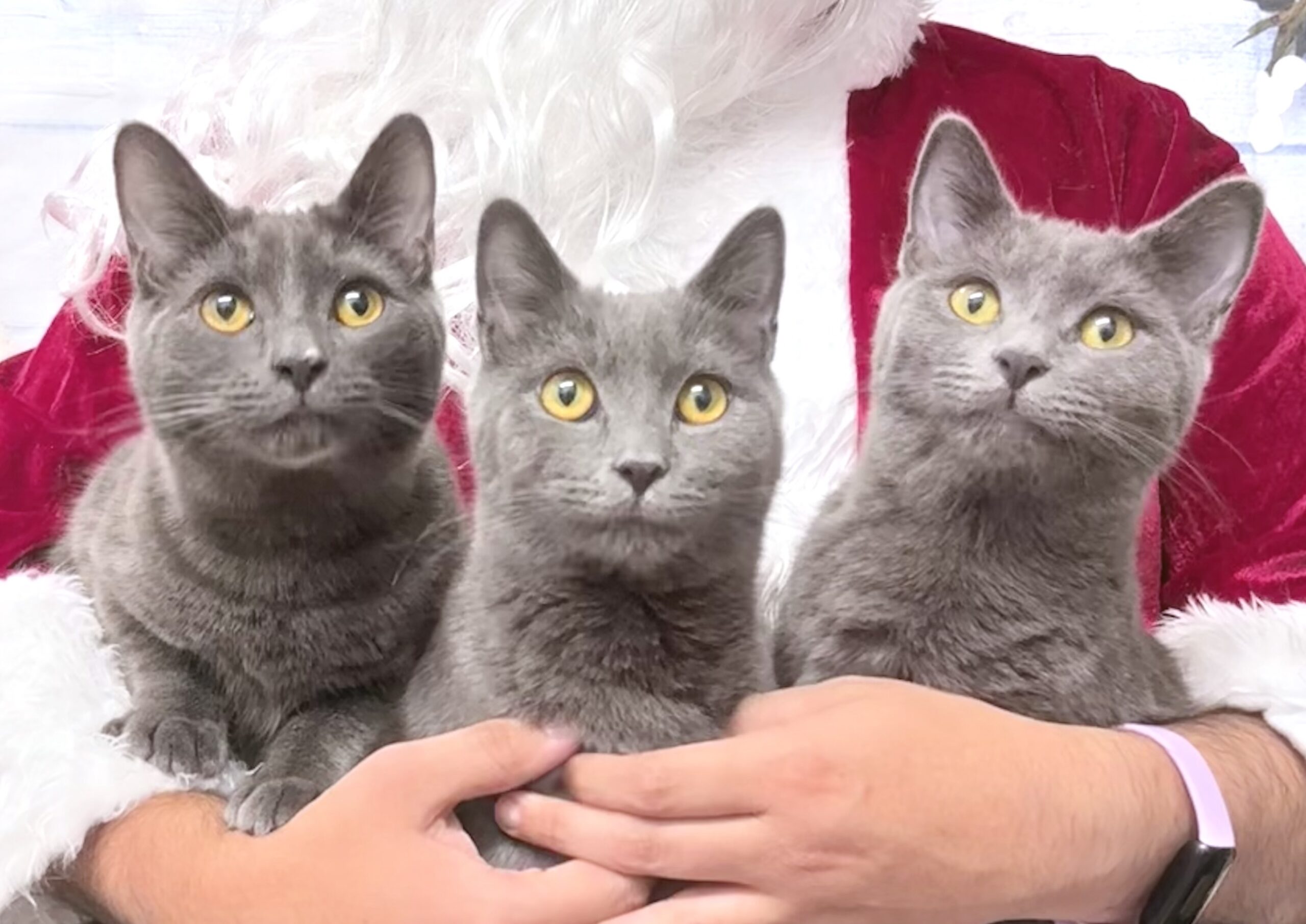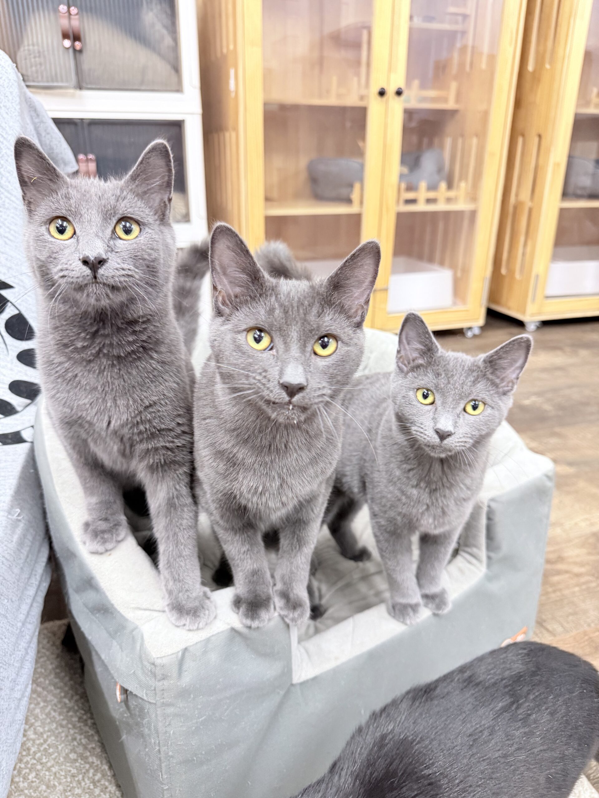 Discovered behind a Popeyes with hearts full of hope and bellies full of curiosity, Chonathan, Chollie, and Chulianna are three 6-month-old grey fluffballs who are equal parts sweet, goofy, and inseparable.