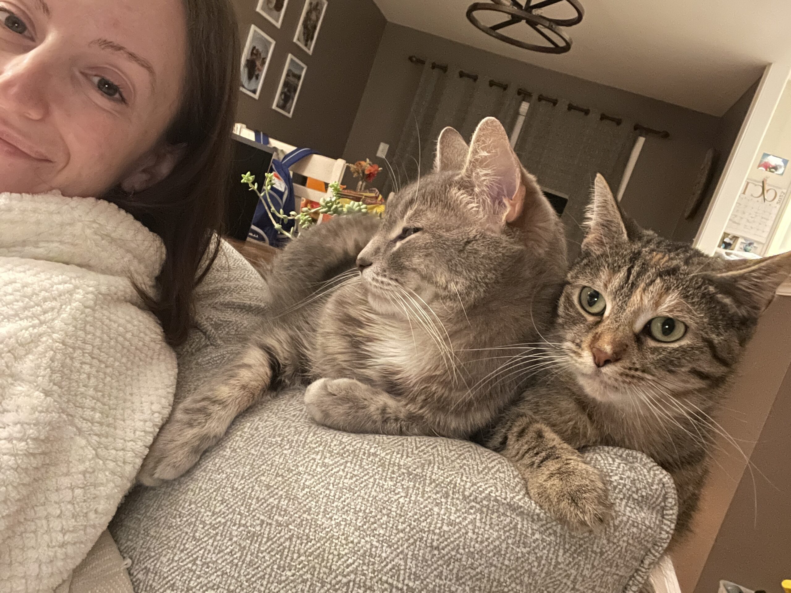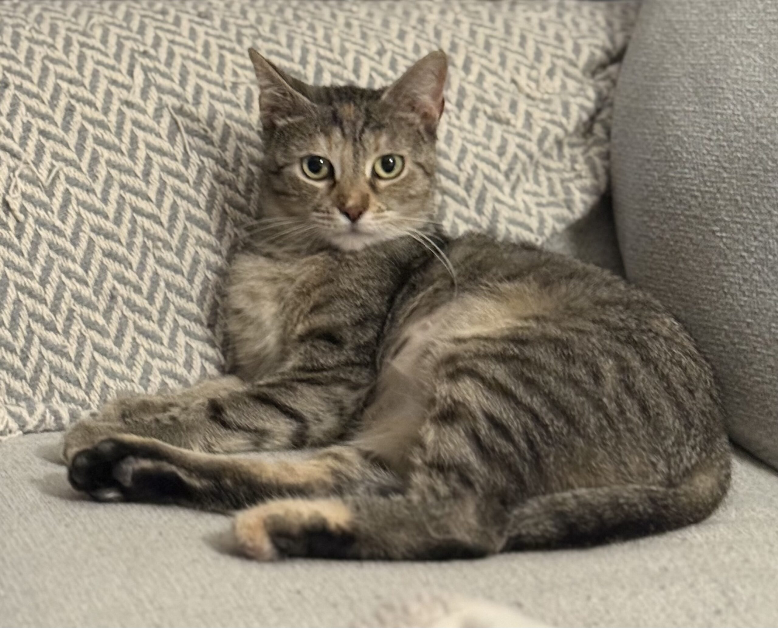 Cookie is a young and beautiful tabico (tabby + calico) kitty with a gentle soul. Life hasn’t always been kind to her—she was sadly kicked out of her previous home and left to raise her kittens outside on her own. She did an amazing job as a mama, and now it’s finally her turn to be loved and cared for.