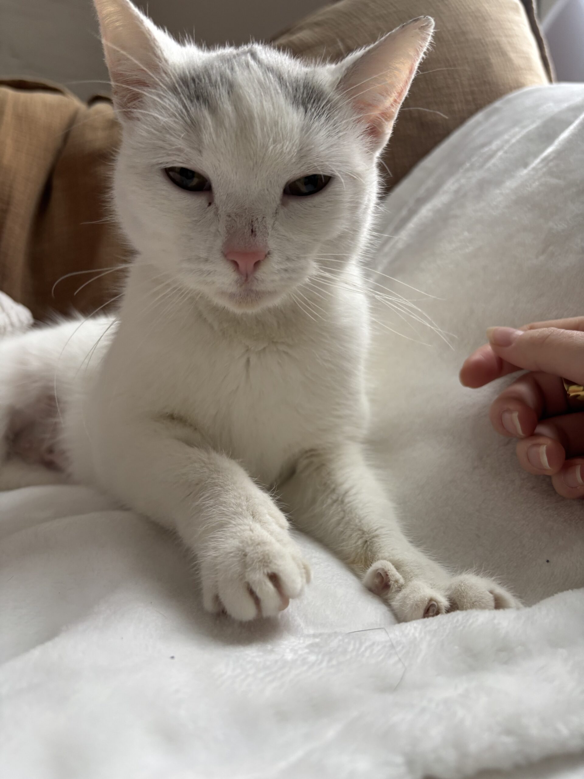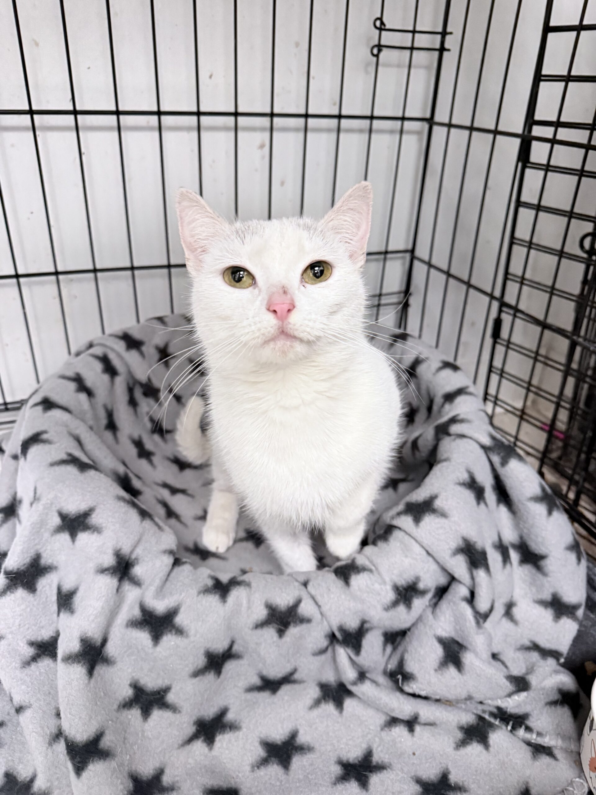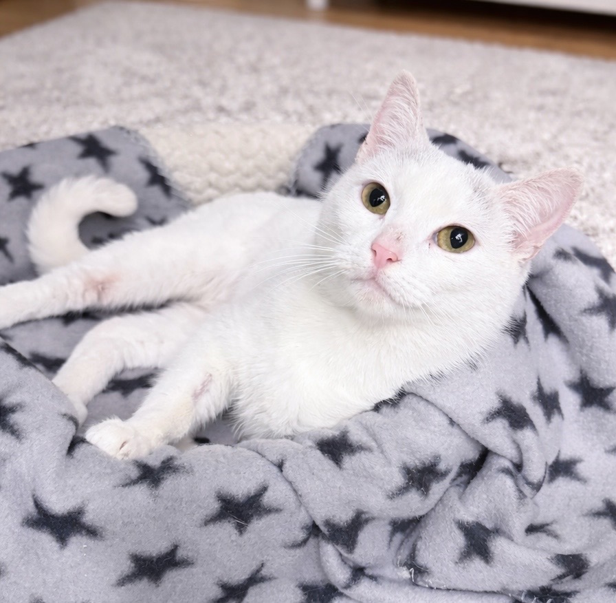 Her initial FeLV test came back positive, but follow‑up testing brought a beautiful glimmer of hope: her viral load is very low, suggesting this may be a transient infection. There is a real chance she could test negative in the future. For now, she is healthy, bright, affectionate, and so grateful for every bit of kindness she’s shown.
