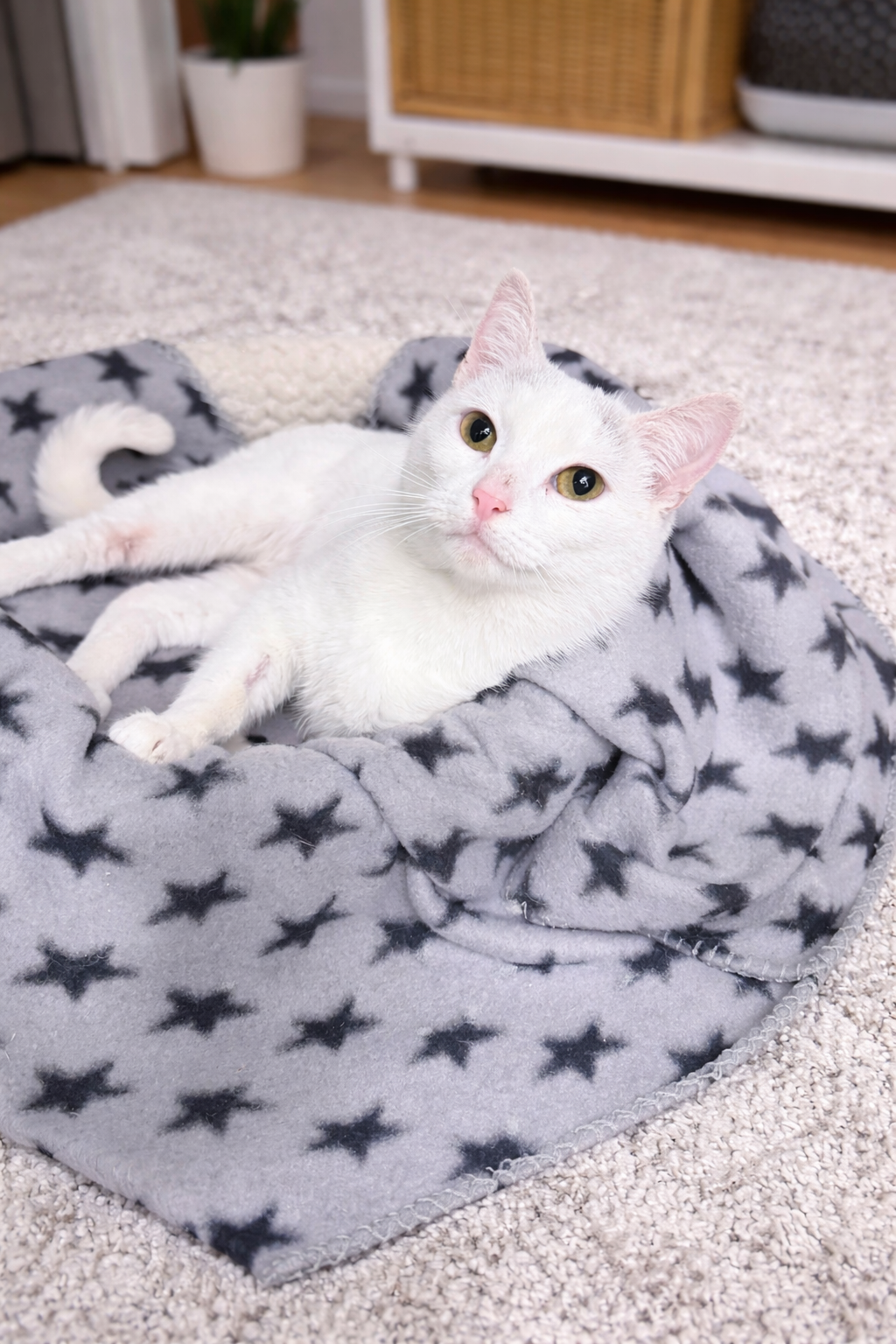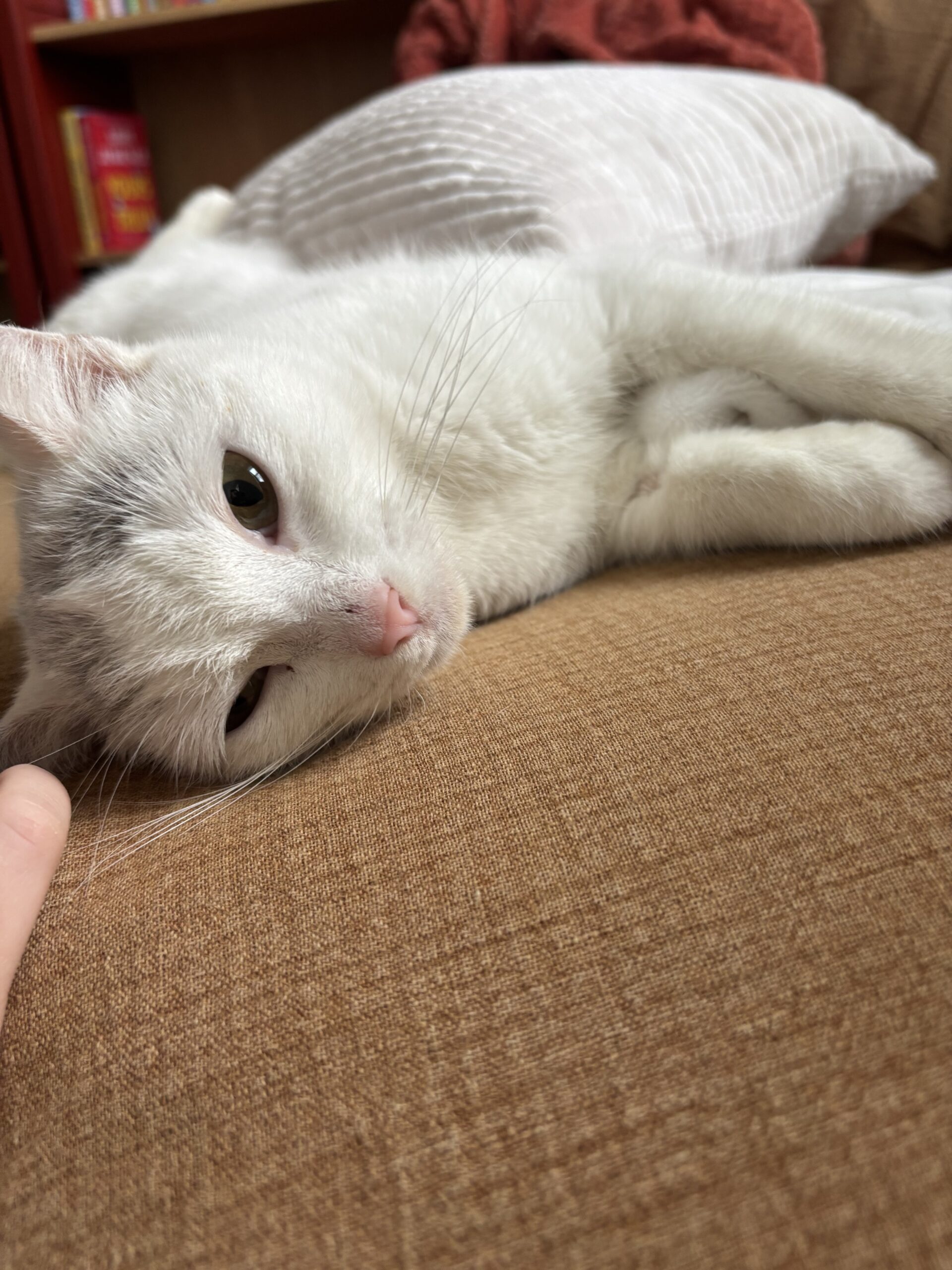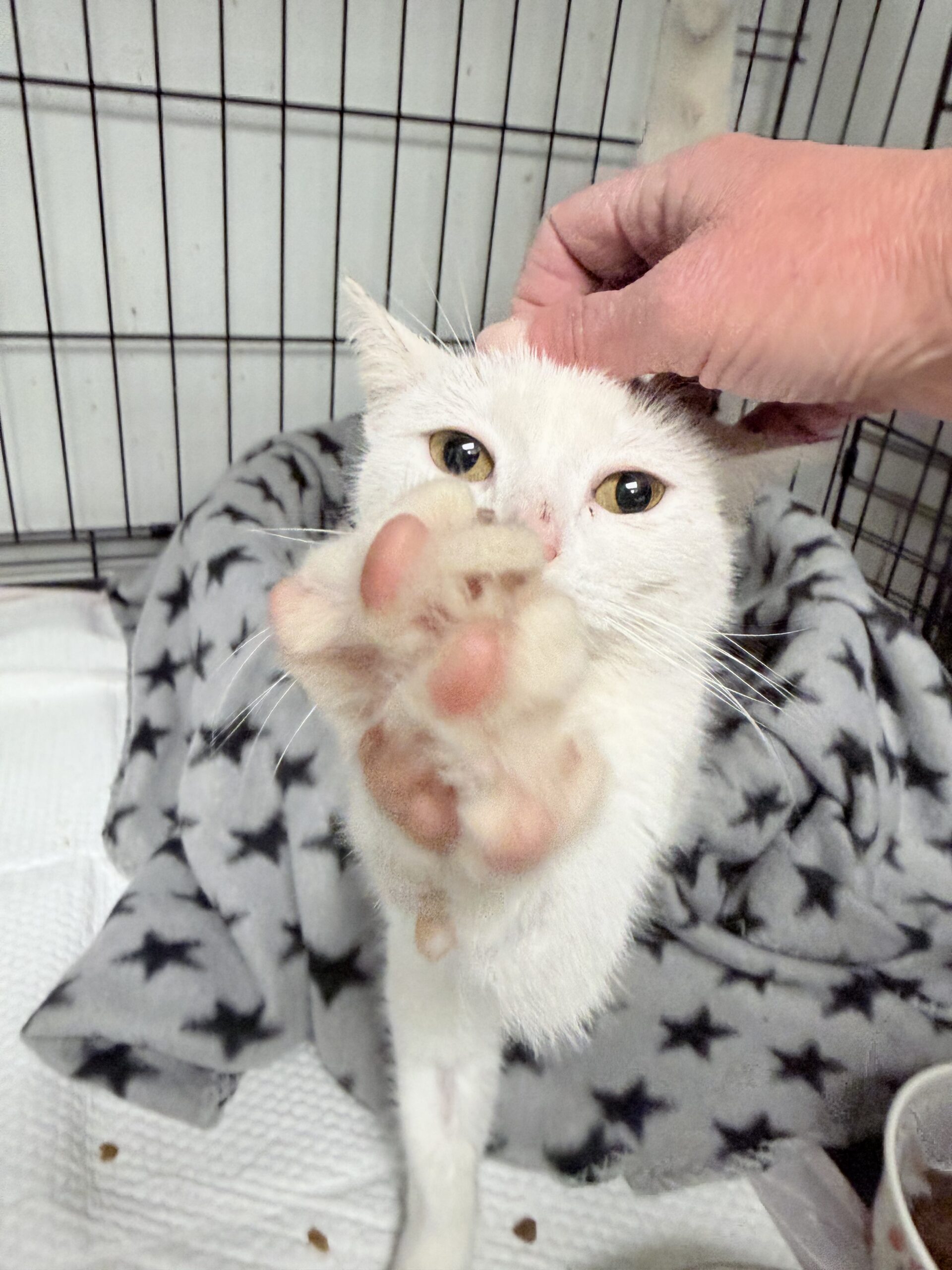 Her initial FeLV test came back positive, but follow‑up testing brought a beautiful glimmer of hope: her viral load is very low, suggesting this may be a transient infection. There is a real chance she could test negative in the future. For now, she is healthy, bright, affectionate, and so grateful for every bit of kindness she’s shown.