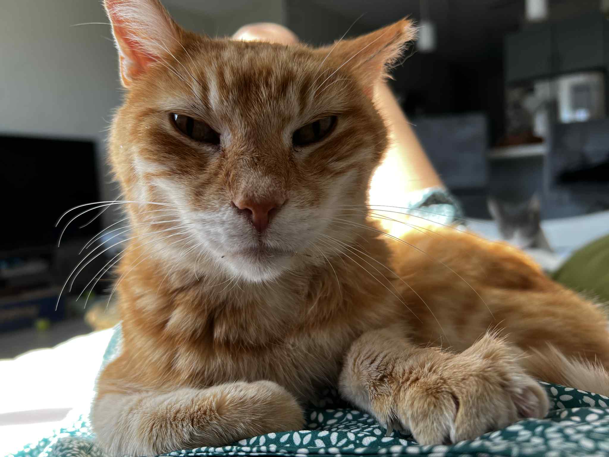 Cutie is a distinguished older gentleman with a heart full of charm and a strut full of confidence. From the very first moment he arrived, he waltzed right in as if he’d always belonged, confidently claiming his spot among the household crew. He enjoys the company of other cats and fits in with ease, though he politely requests that any canine companions give him a respectful bubble of personal space.