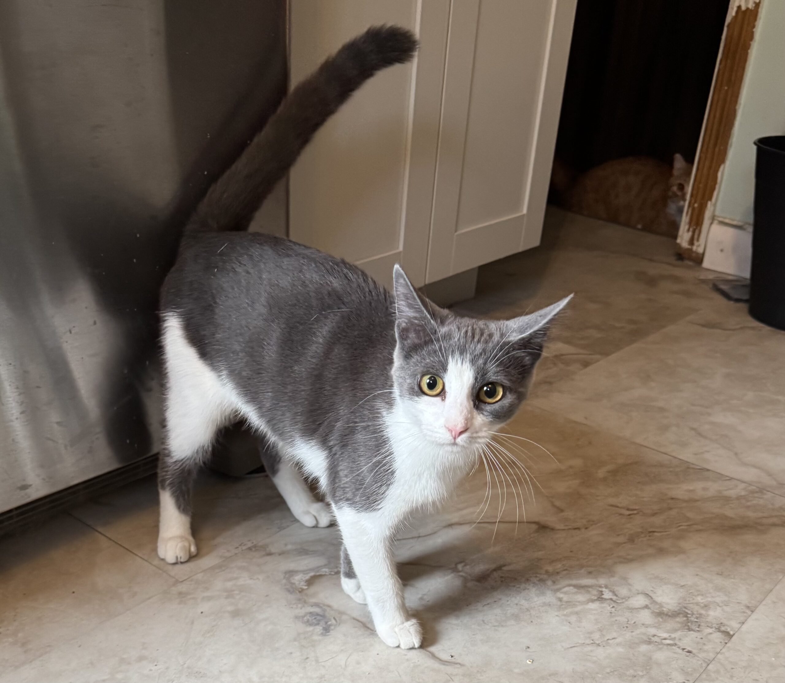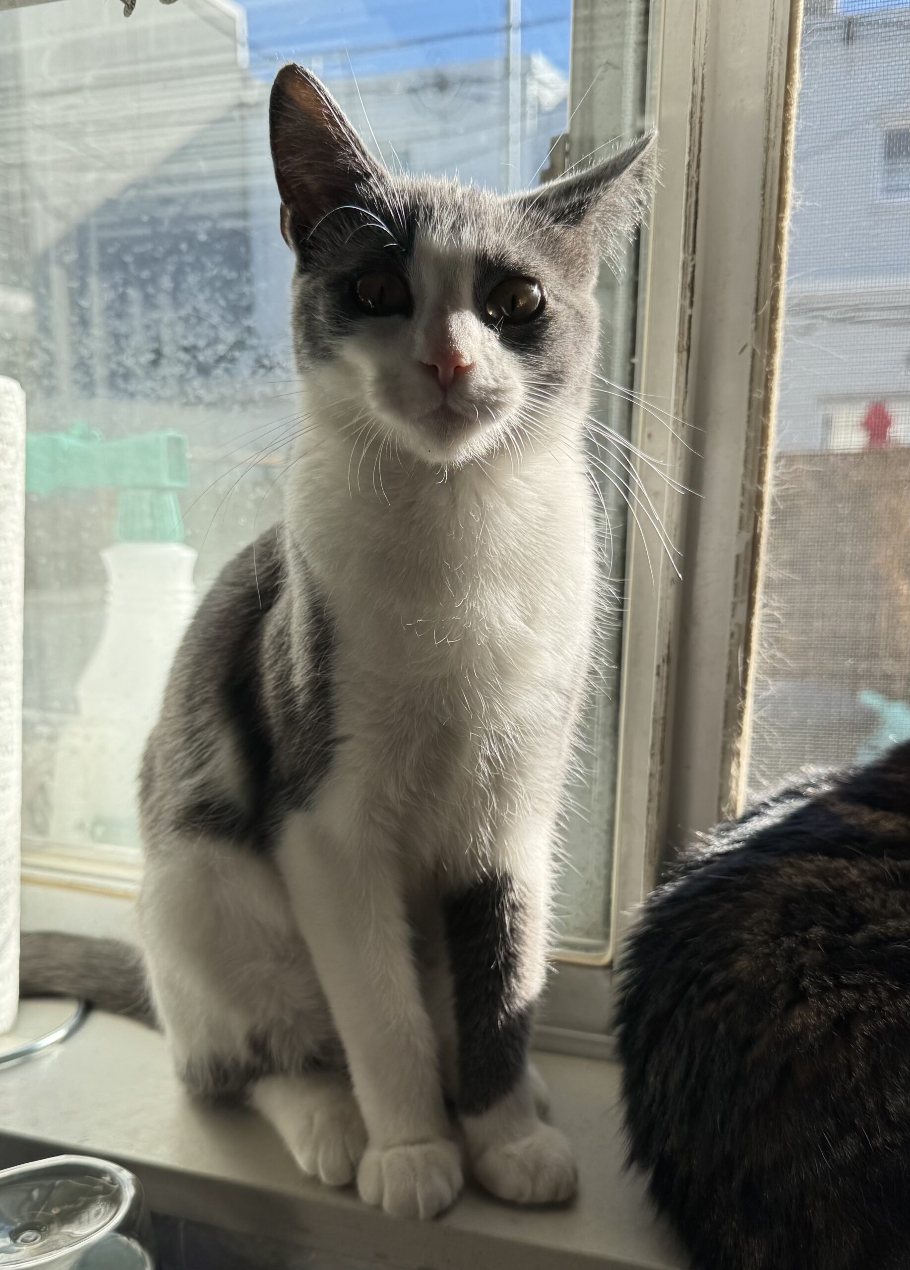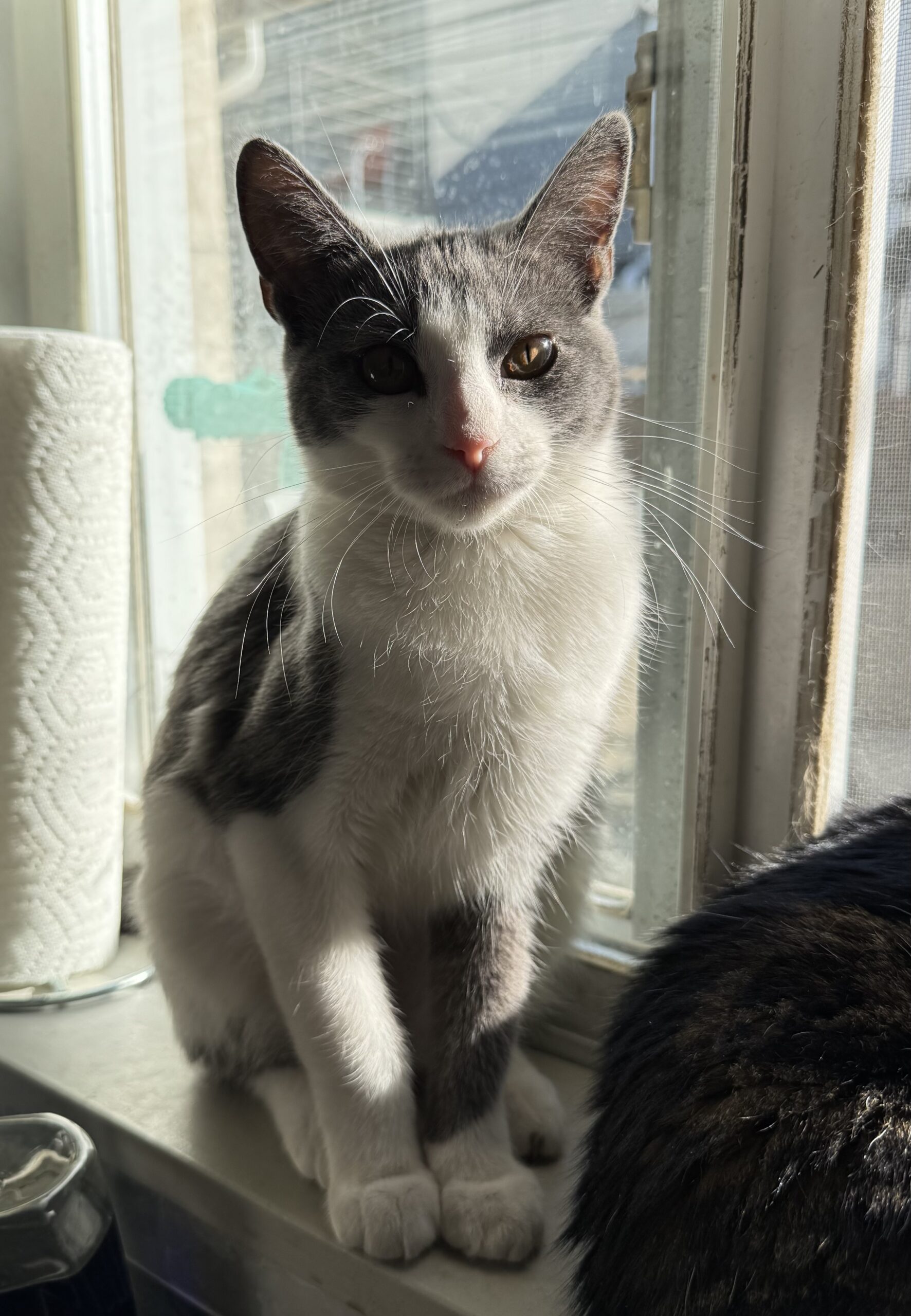 Finra is the playful explorer of the pair. She loves to chase toys, climb, and investigate every new corner, but she’s also incredibly sweet and enjoys being petted and fussed over. Once she’s had her fun, she’s quick to settle down for some love or a nap.