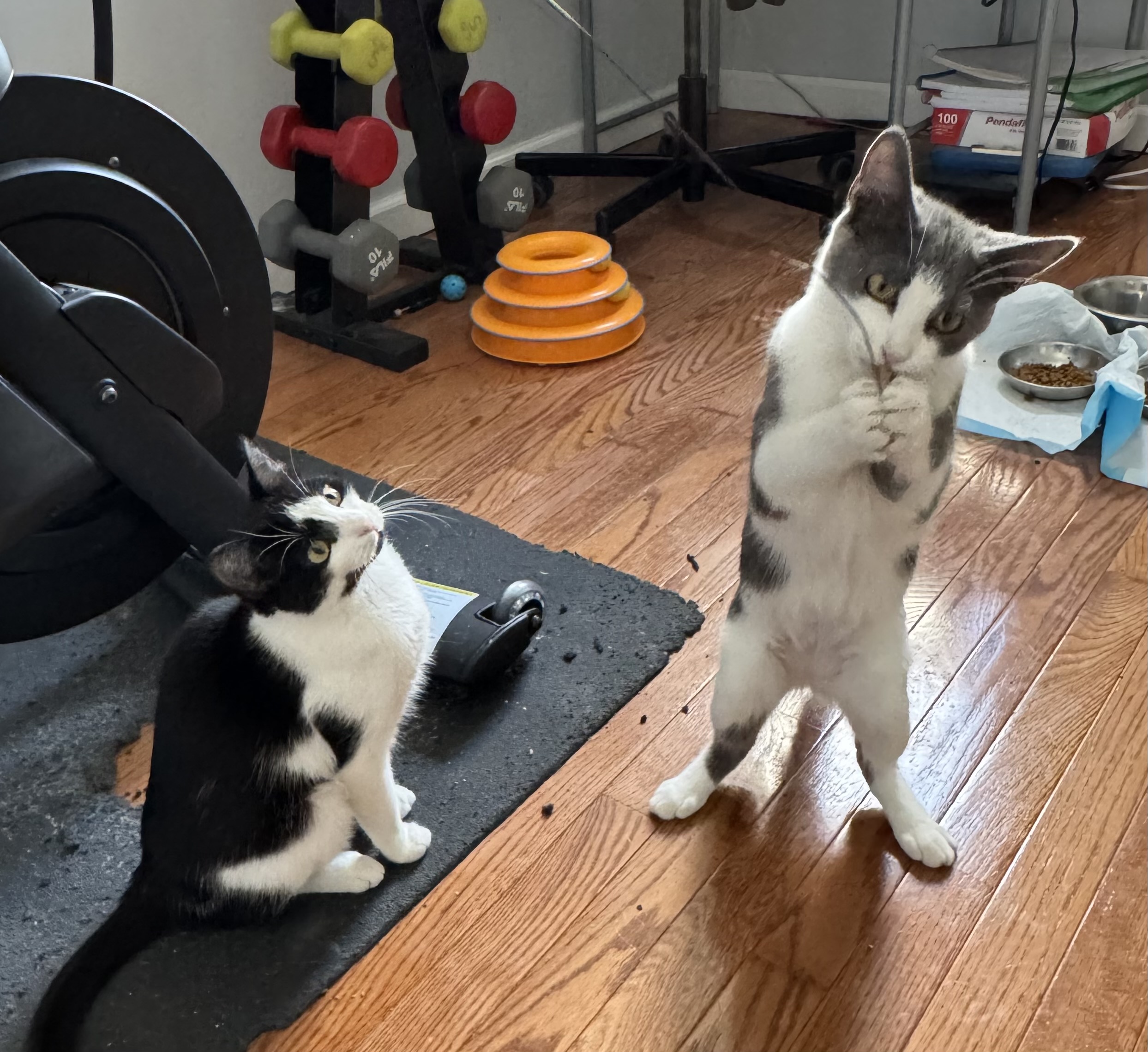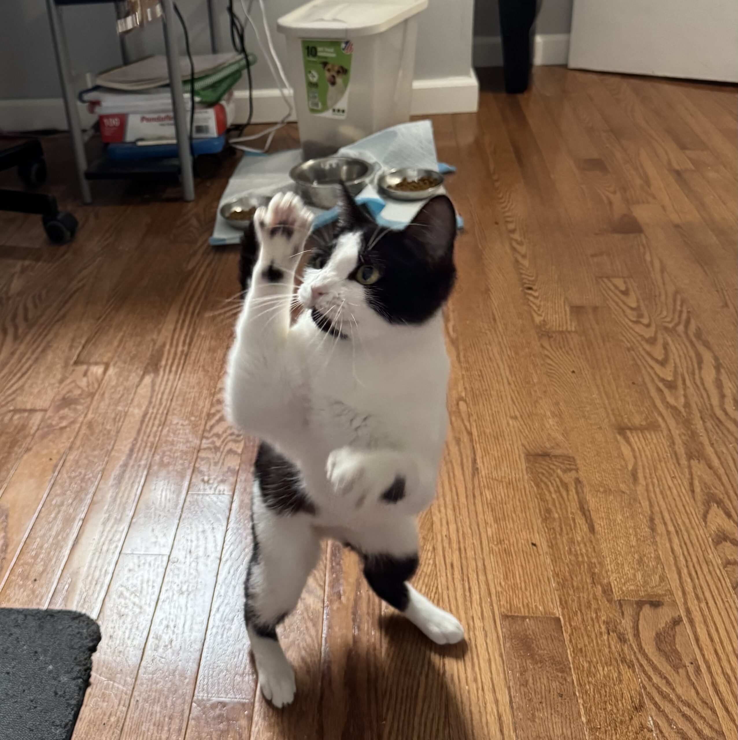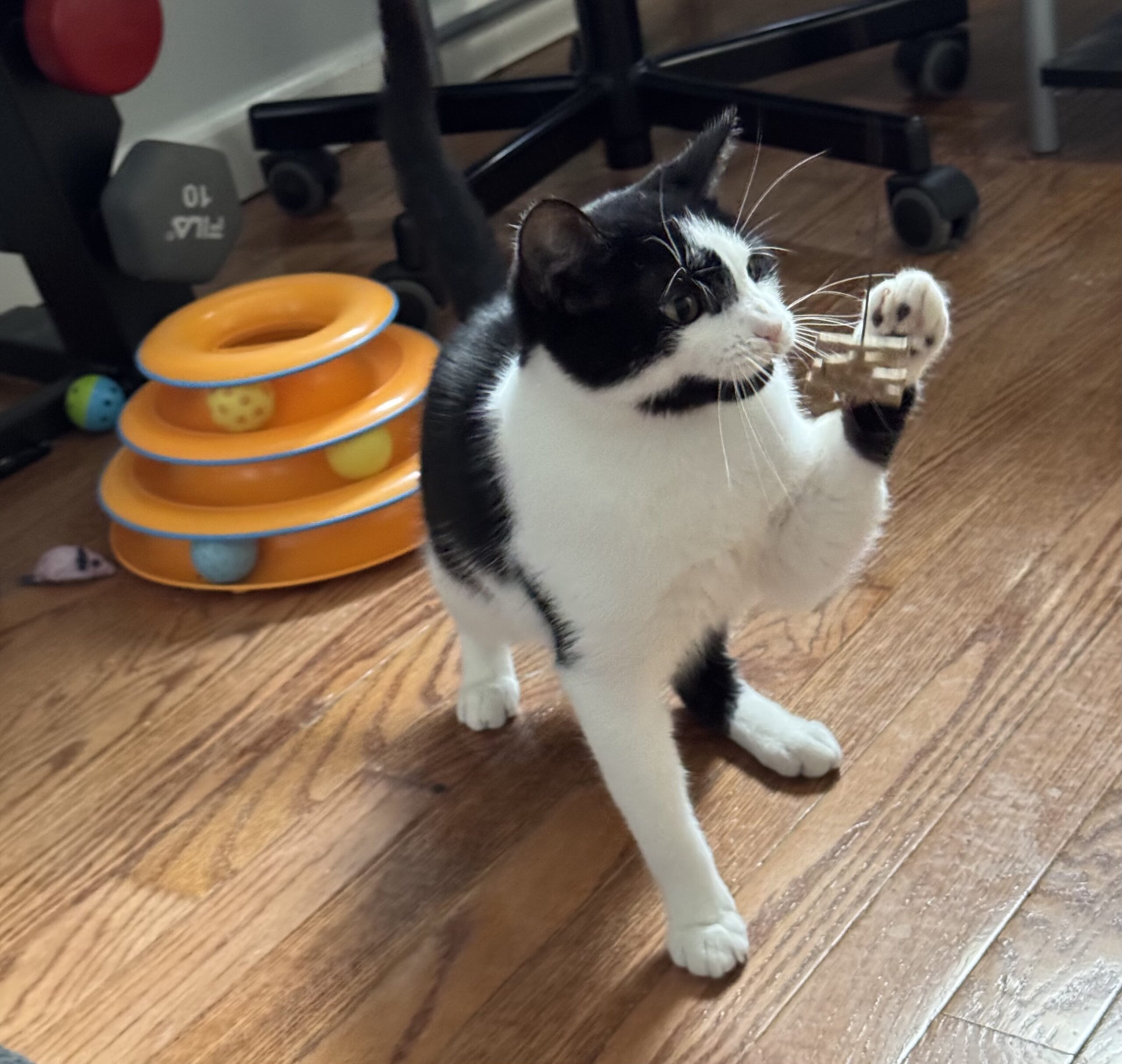 Finra is the playful explorer of the pair. She loves to chase toys, climb, and investigate every new corner, but she’s also incredibly sweet and enjoys being petted and fussed over. Once she’s had her fun, she’s quick to settle down for some love or a nap.