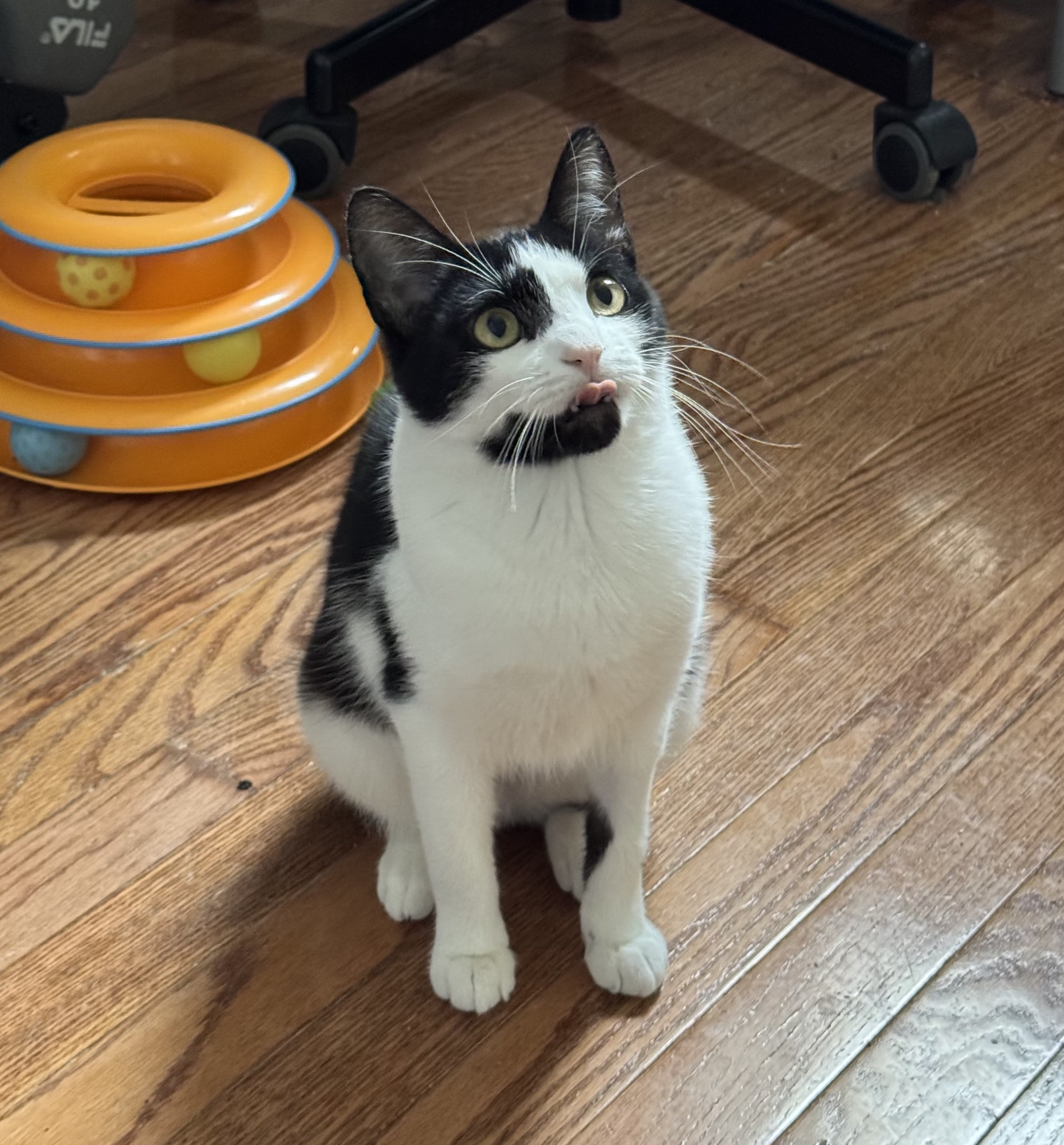 Divi is the ultimate lovebug — a born lap cat who simply can’t get enough cuddles. She adores snuggling with her person and even cozies up with the resident dog, Duncan, whenever she gets the chance. She’s affectionate, gentle, and happiest when she’s soaking up love.