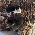 When Divi isn’t in a lap, you’ll usually find her and Finra curled up together on the bed with Liam, the resident cat. They’re both wonderfully cat- and dog-friendly, making them the ideal companions for a loving home.