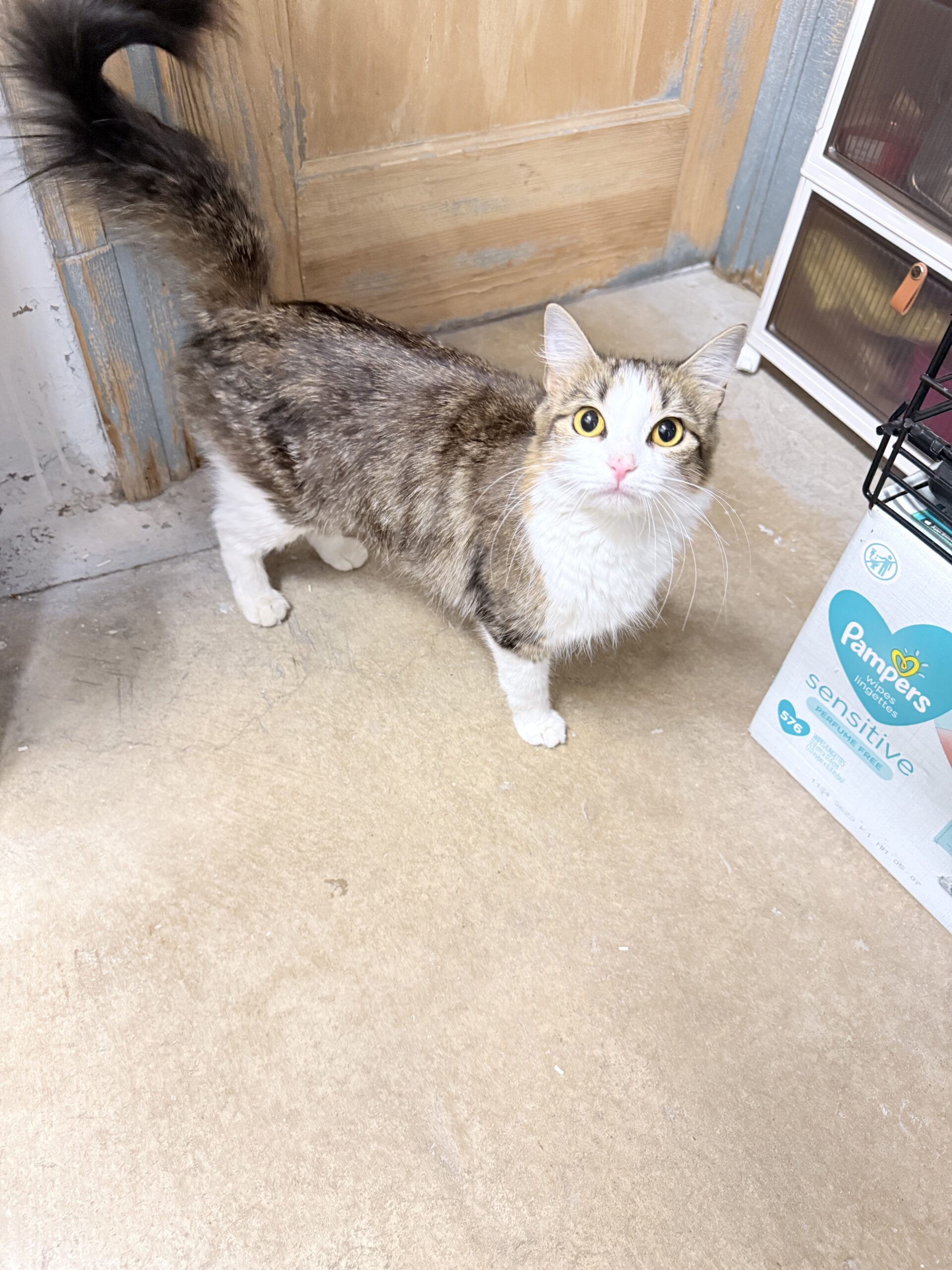She lived by the Delaware River, raising litter after litter in the hush of the underbrush. Her days were spent curled around tiny bodies, nursing kittens beneath the trees while joggers and kind strangers passed by with scraps. She never begged. She never wandered. She stayed rooted in place—gentle, fluffy, endlessly loving—giving everything she had to her babies and asking nothing for herself.