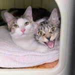 Rescuers opened the door, and instead of running, we lifted our tired heads together. We didn’t have the strength to hide — only the strength to stay touching. They scooped us up gently, whispering that we were safe now, and we leaned into their hands because it was the first kindness we’d felt in so long.