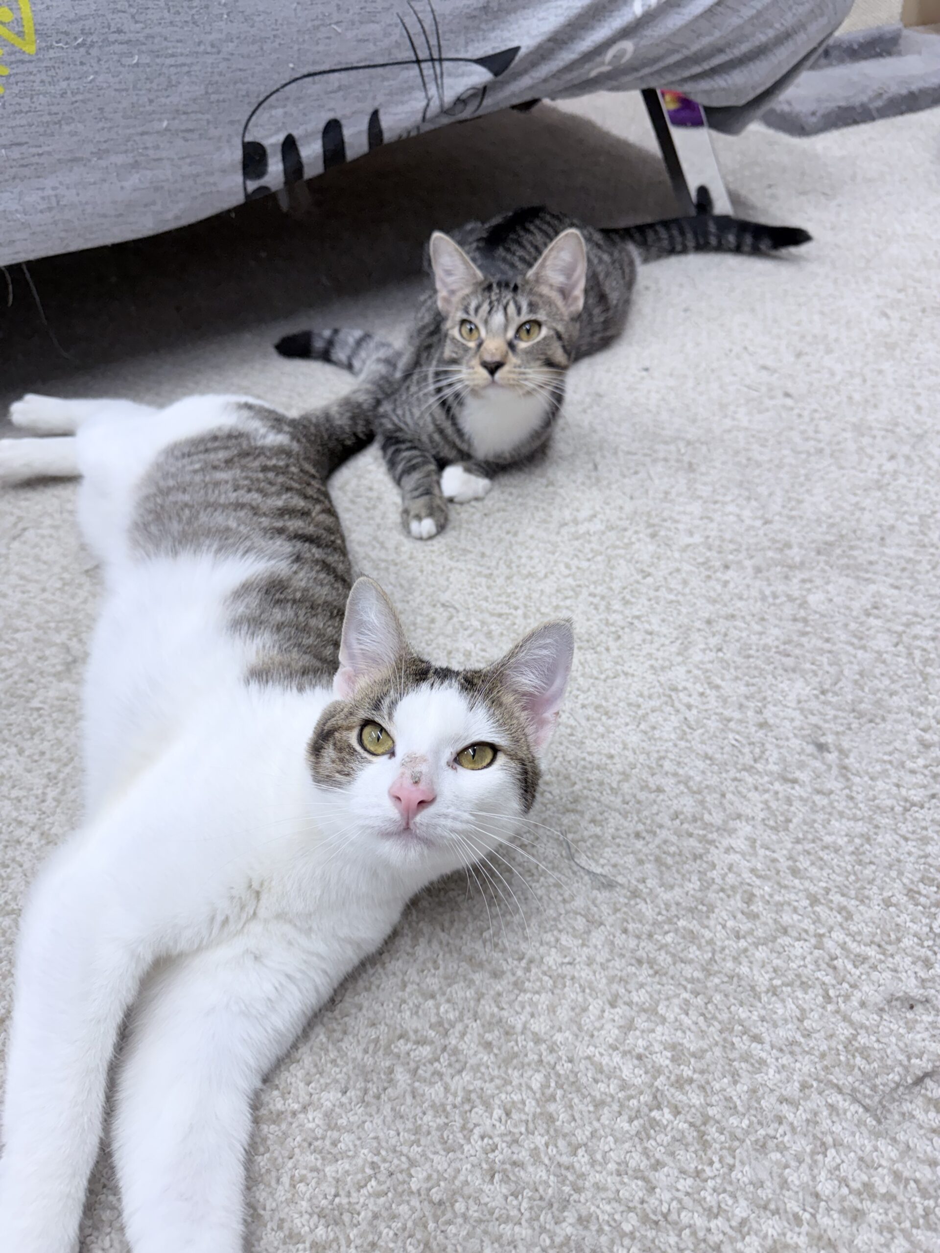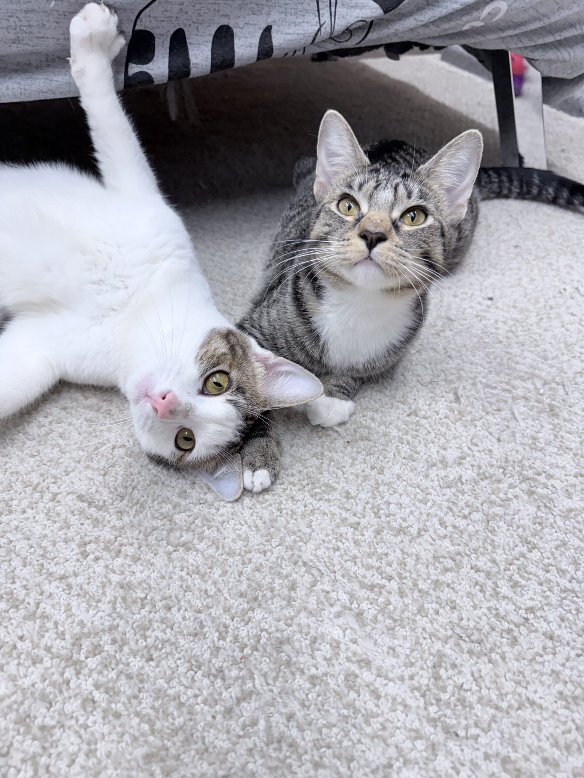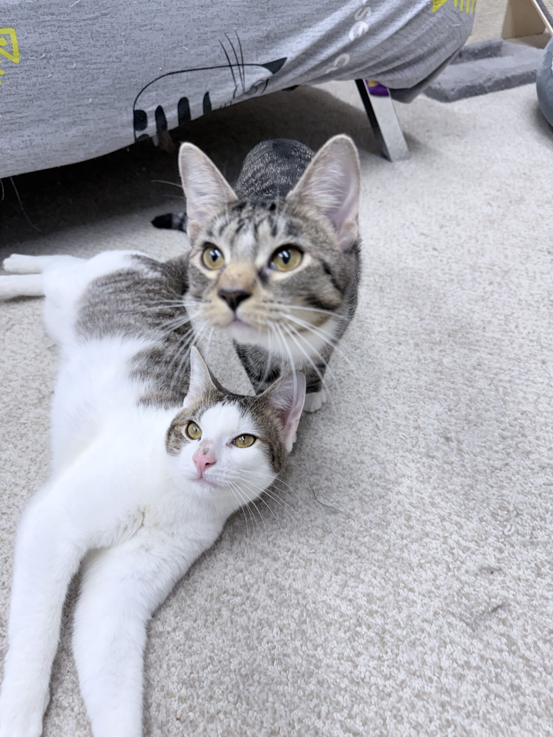 Now we’re warm. Fed. Loved. And still inseparable — not out of fear anymore, but out of pure devotion. Elo is the sweetest protector, and Ever is his soft little shadow. We sleep curled together, eat together, explore together, and purr just because we can.