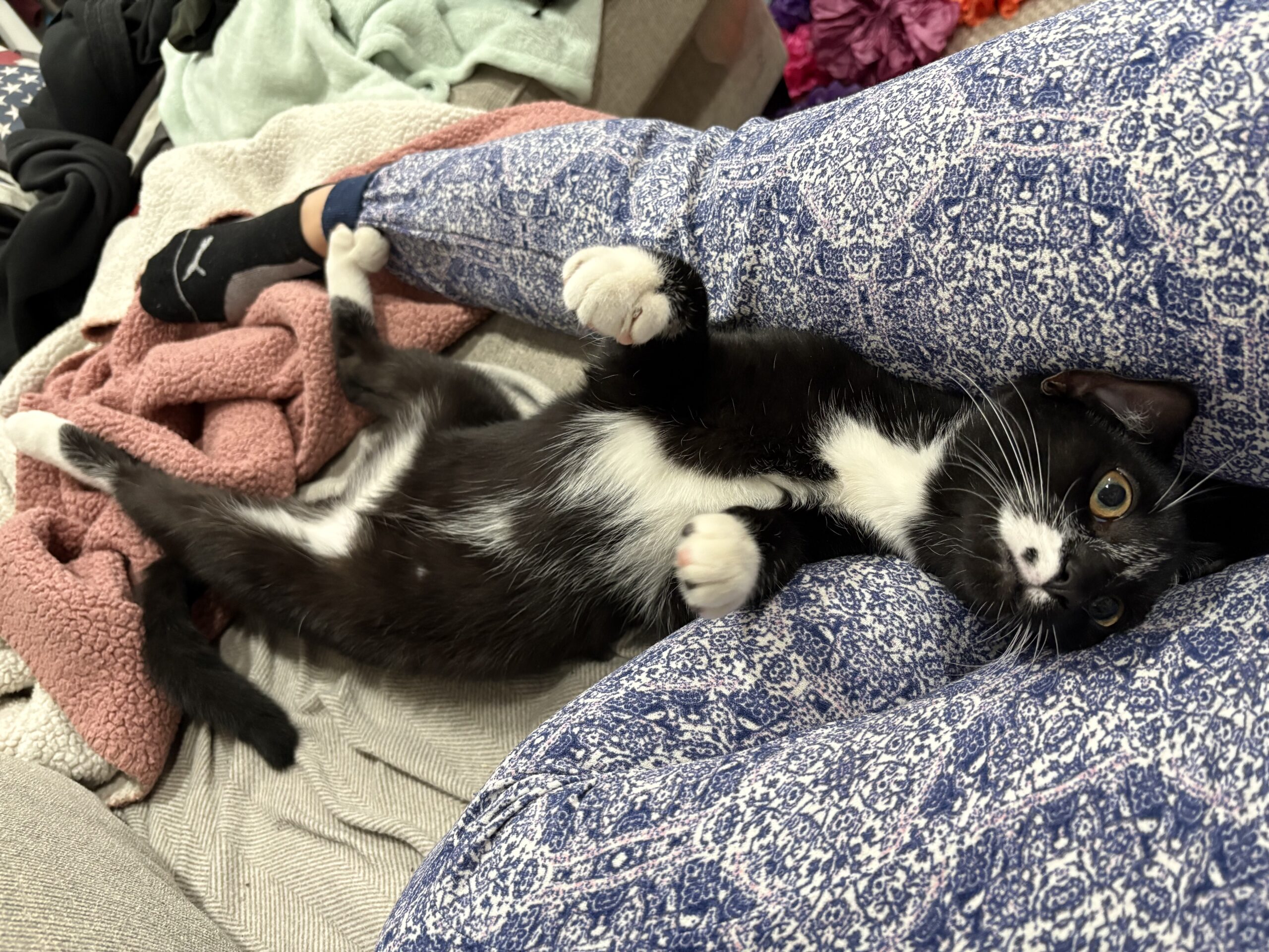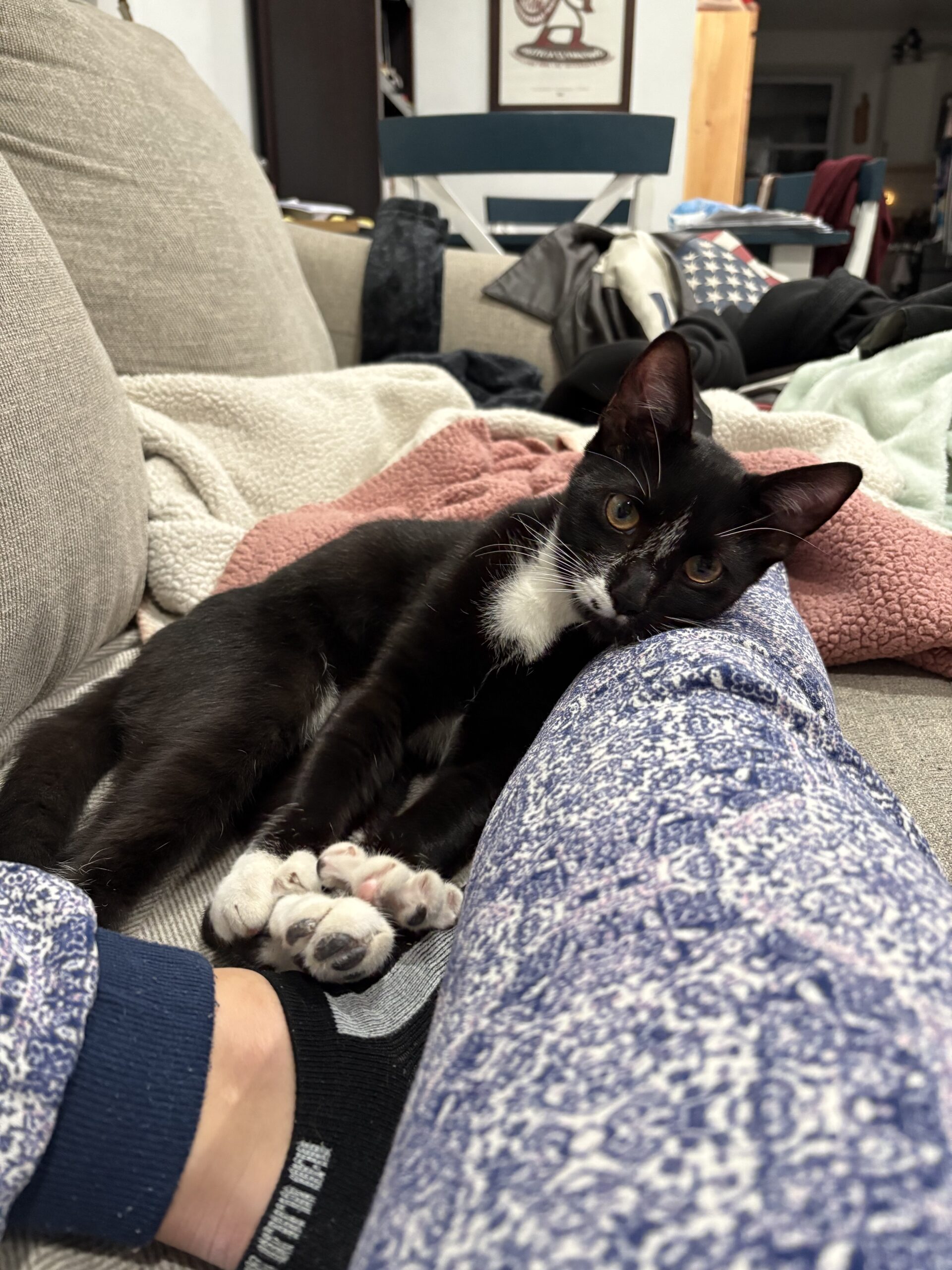 If you are looking for a lover boy, look no further! Fabio is ready to sweep you off your feet. This little guy is the sweetest and loves to purr and cuddle. If you sit on the couch, he will come up to spend some quality time with you. If you have some work to do at your tool bench, he will sit on your shoulder like a parrot. He makes biscuits everywhere he goes and loves to play. He is ready to find his forever home!