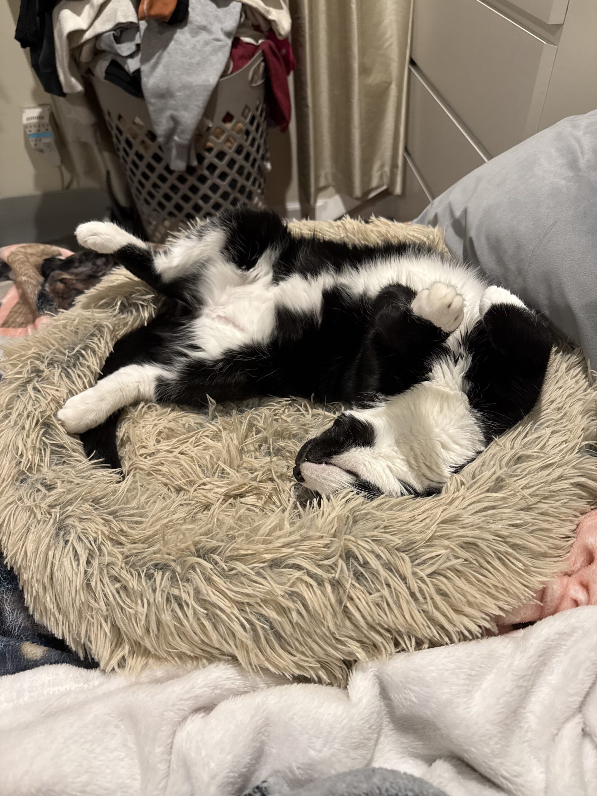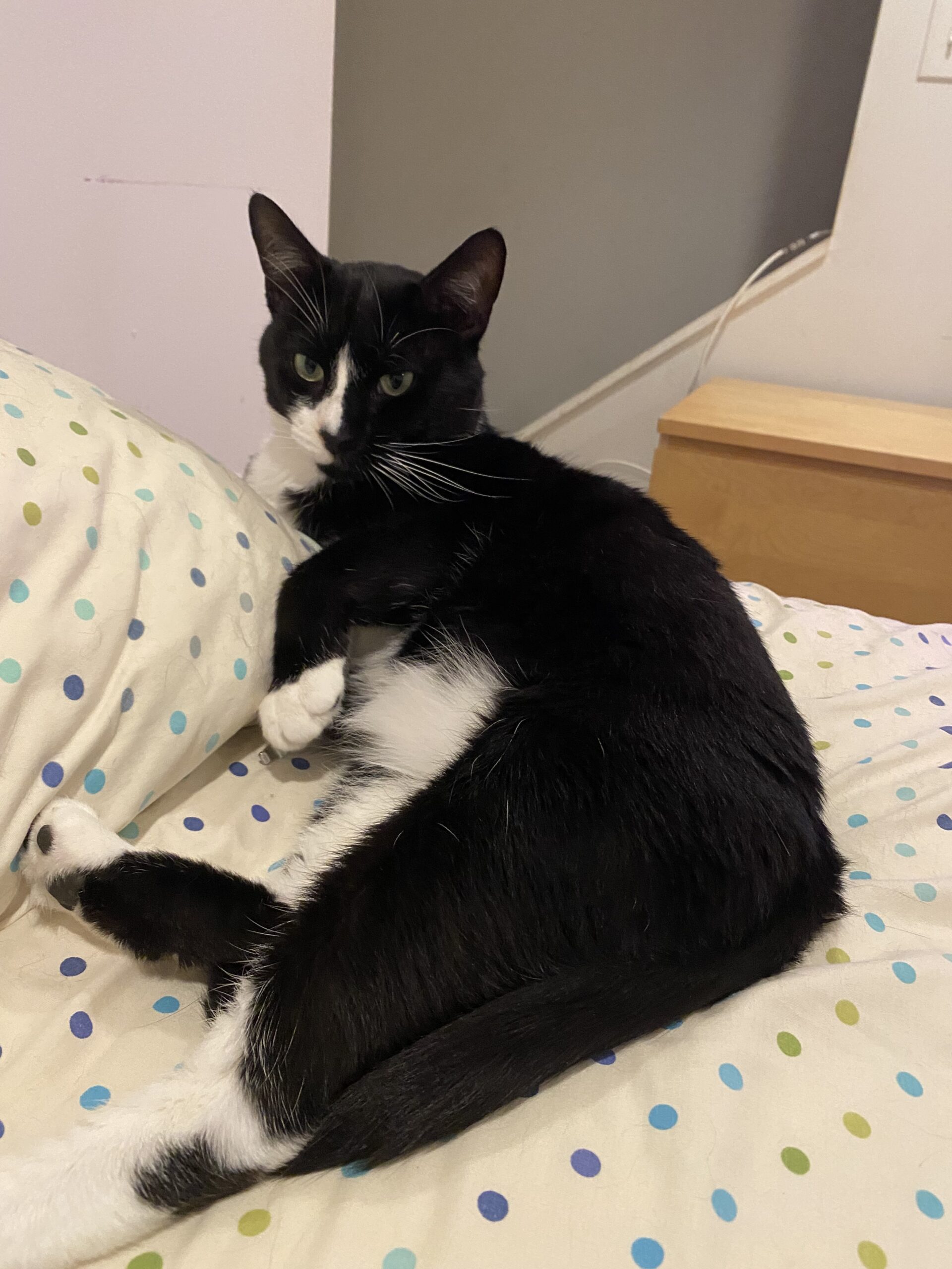 Meet Klaus Mikaelson, the dashing tuxedo with a flair for drama and a heart full of love (and catnip). Klaus is a young, spirited kitty whose high-pitched meows and chirps could melt even the most hardened vampire—er, human. While he may have started out shy, this charismatic boy has truly come out of his shell. Now, he greets his foster with joyful chirps and eagerly leans in for pets, especially cheek rubs—his absolute favorite.