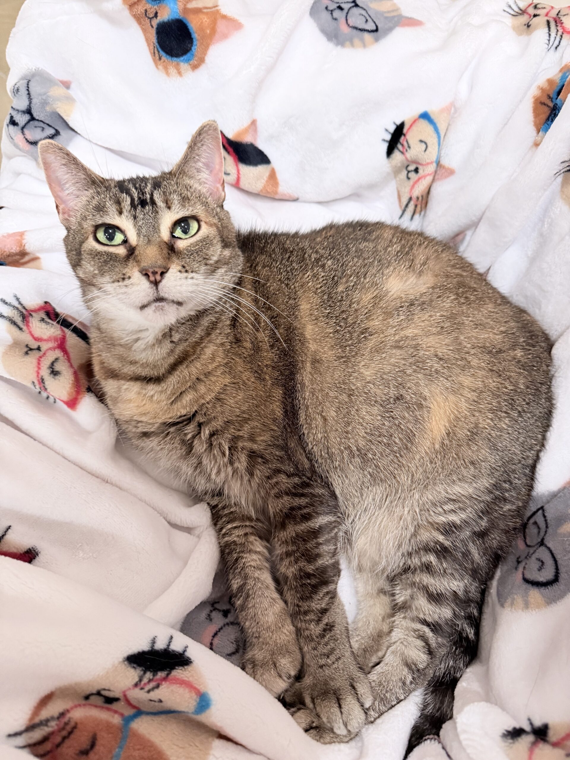 Kya has been through a lot in her life so far. She was likely abandoned and ended up struggling to live outside. We learned someone took her in but dumped her outside again. Through it all she’s been nothing but sweet and loving. She is in good spirits and grateful for another chance. She loves pets, curling up nest to you, and just relaxing the day away in comfort. She is affectionate and gentle. She did not deserve all that betrayal (they never do). She’s ready and waiting for a committed and loving family!