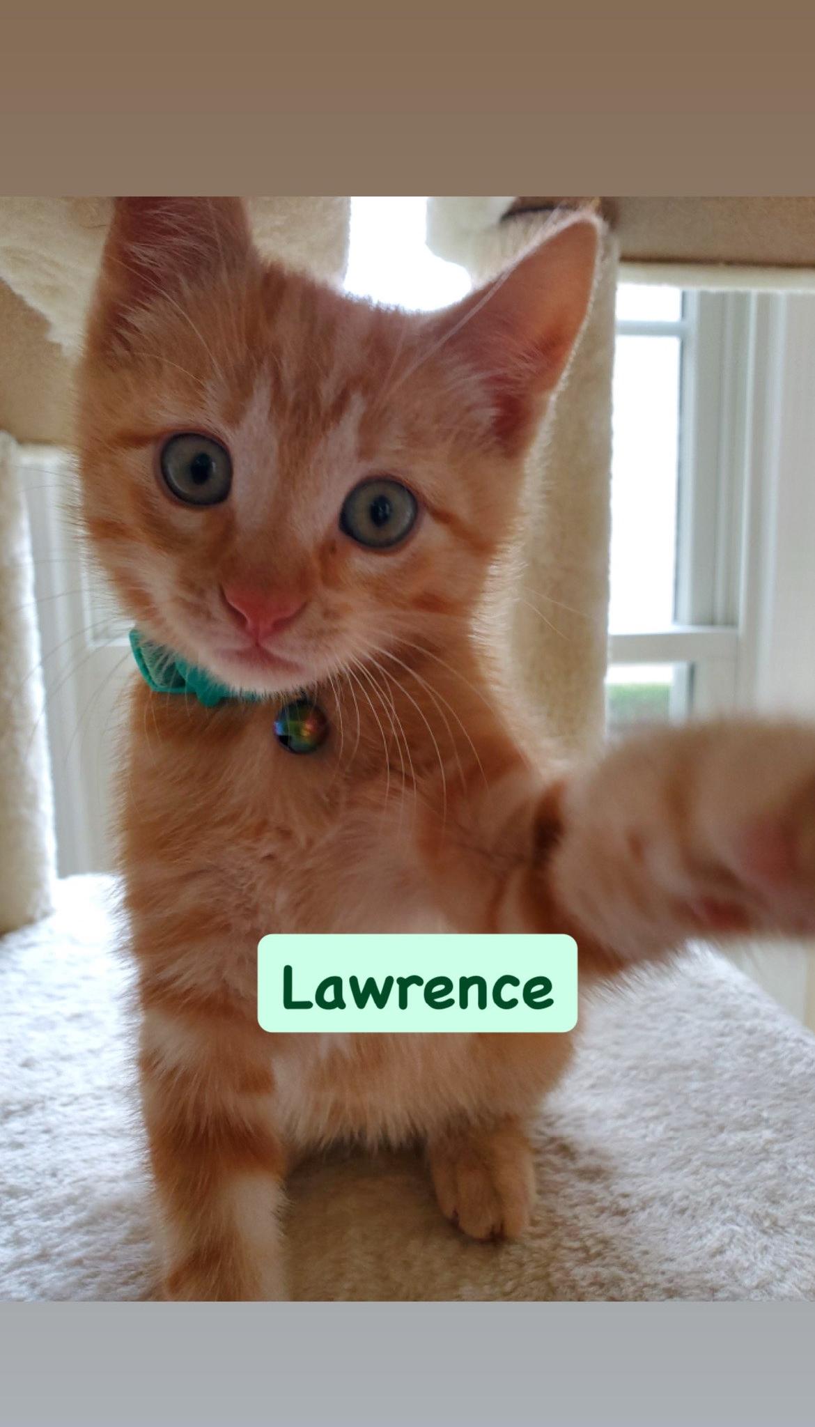 Lawrence – The clever escape artist who loves sneaking out of the cat room whenever he gets the chance!