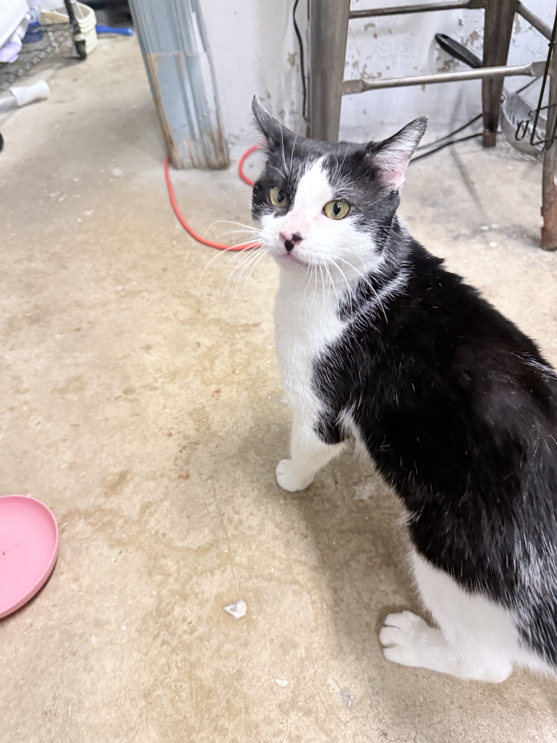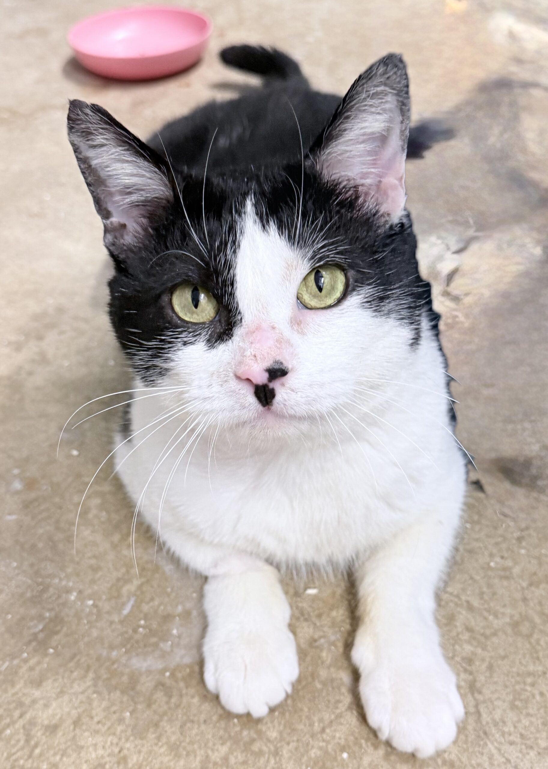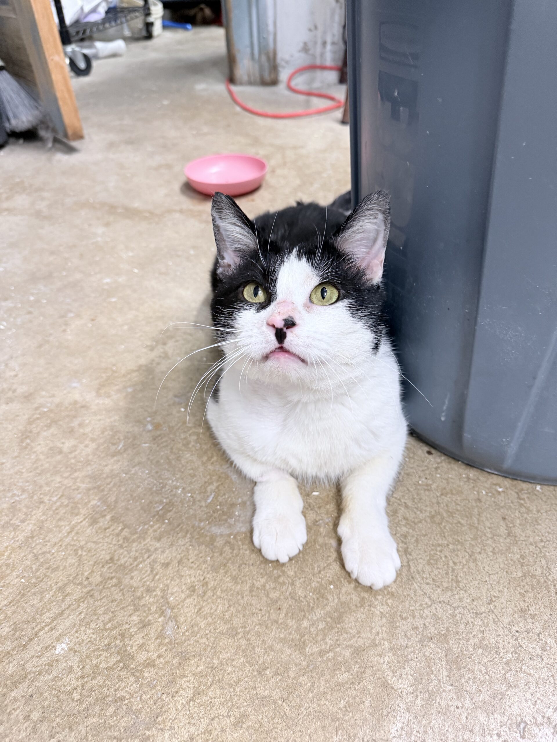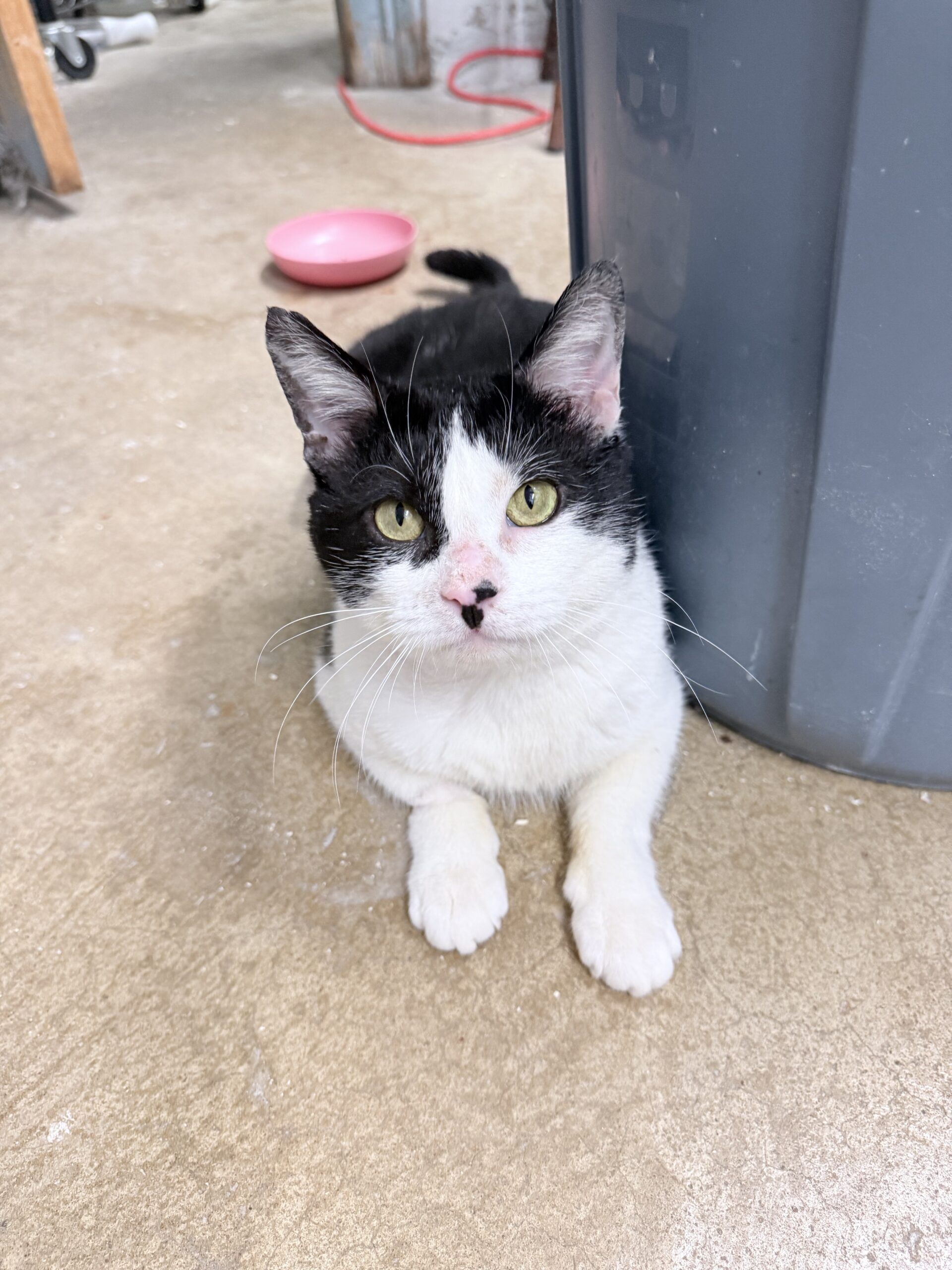 Liam spent most of his young life slipping quietly into the same yard each day—a place where he knew there might be a little food waiting. He never caused trouble. He never challenged anyone. He just arrived with his soft black‑and‑white face and those hopeful eyes, grateful for whatever kindness he could find.