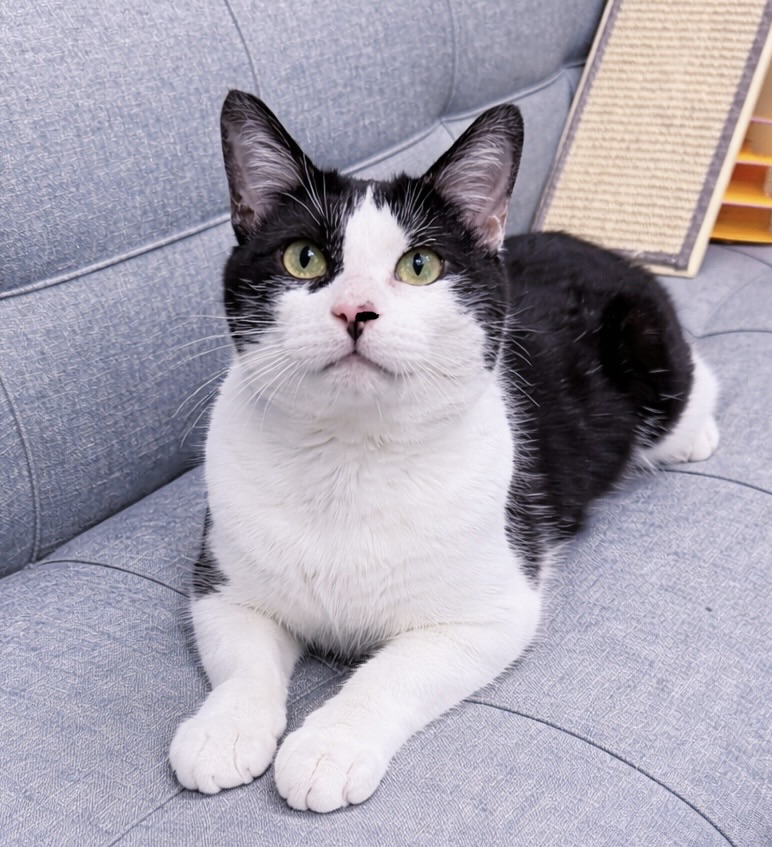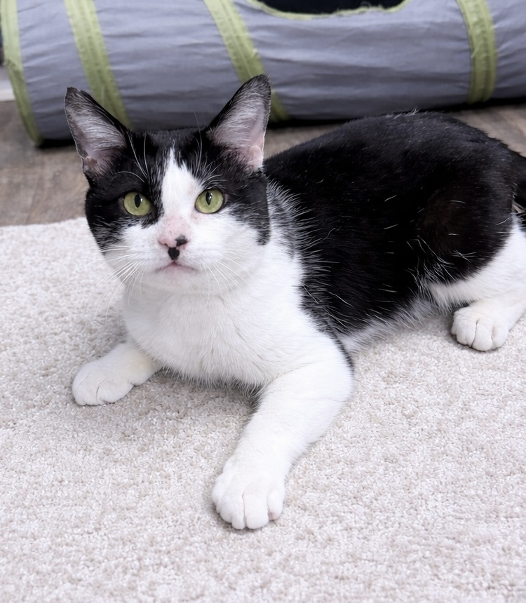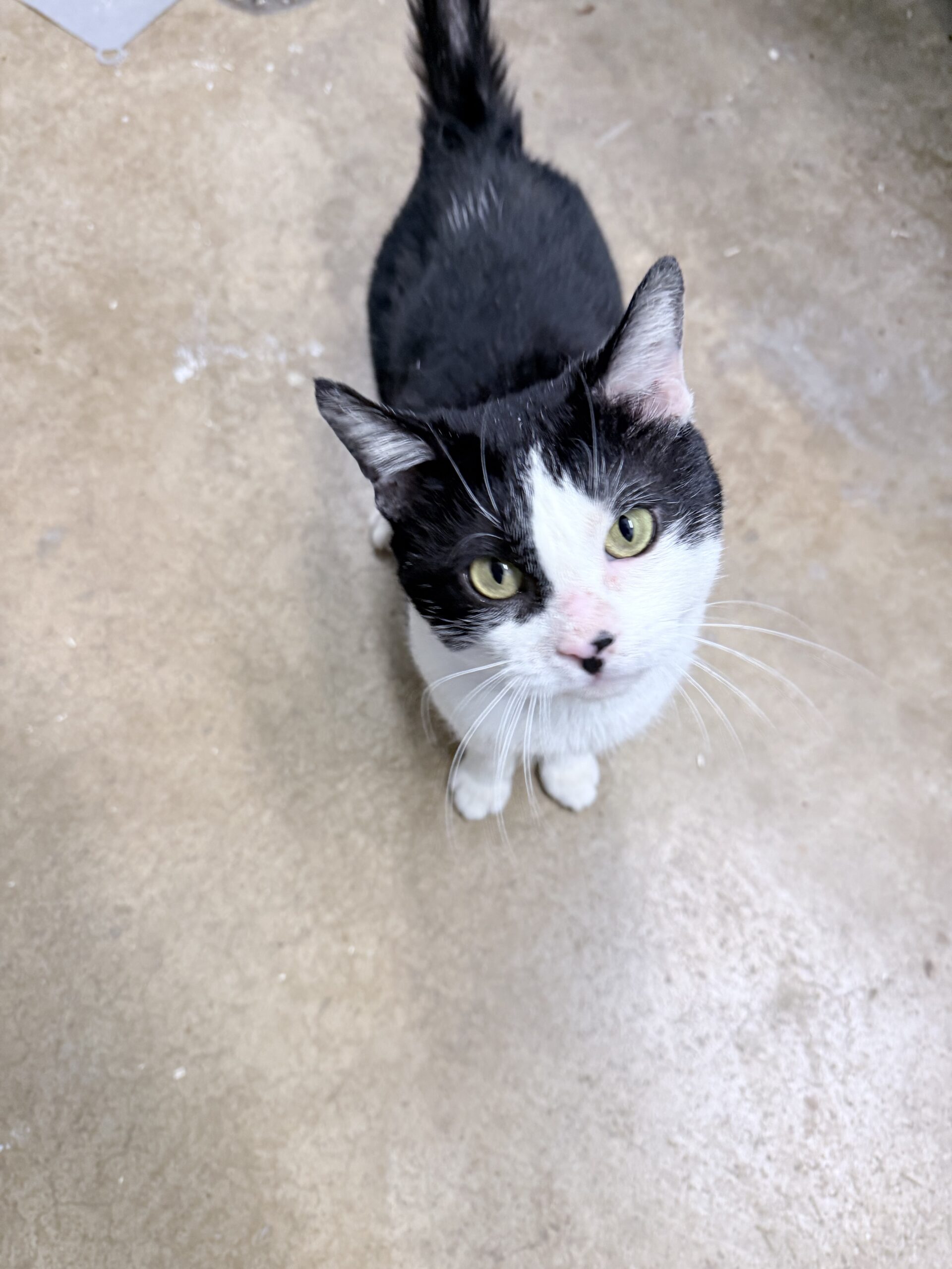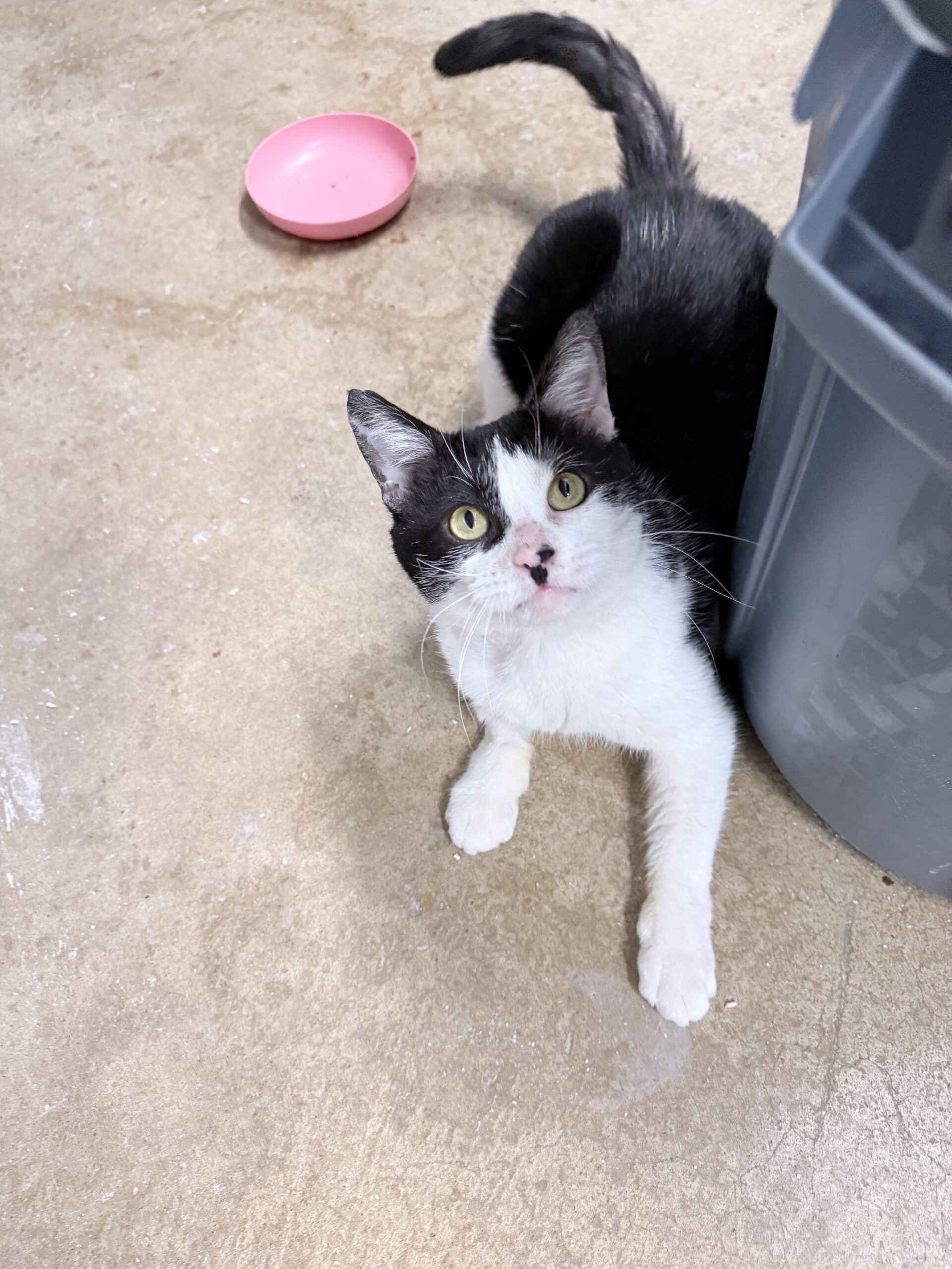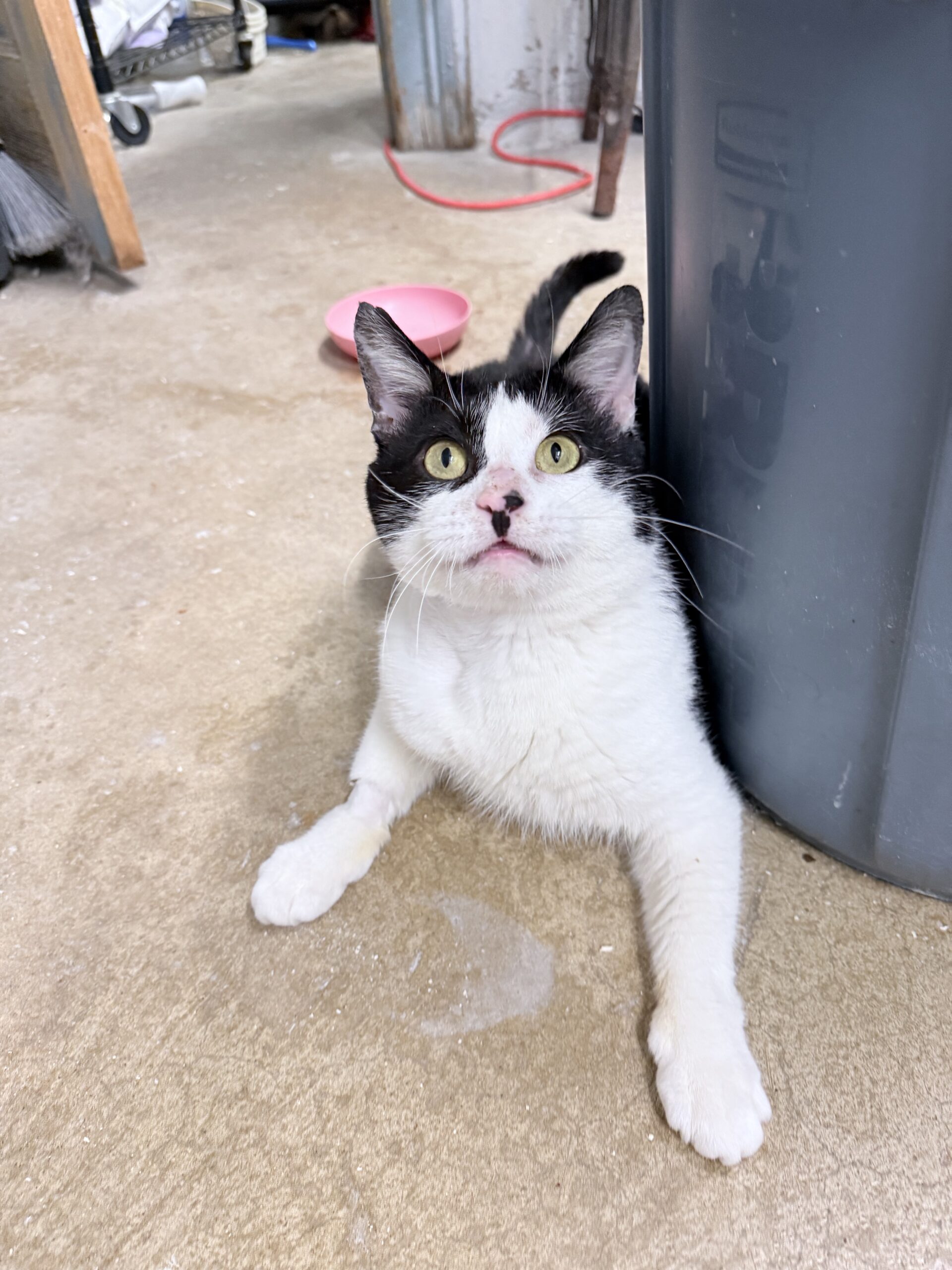 Liam spent most of his young life slipping quietly into the same yard each day—a place where he knew there might be a little food waiting. He never caused trouble. He never challenged anyone. He just arrived with his soft black‑and‑white face and those hopeful eyes, grateful for whatever kindness he could find.