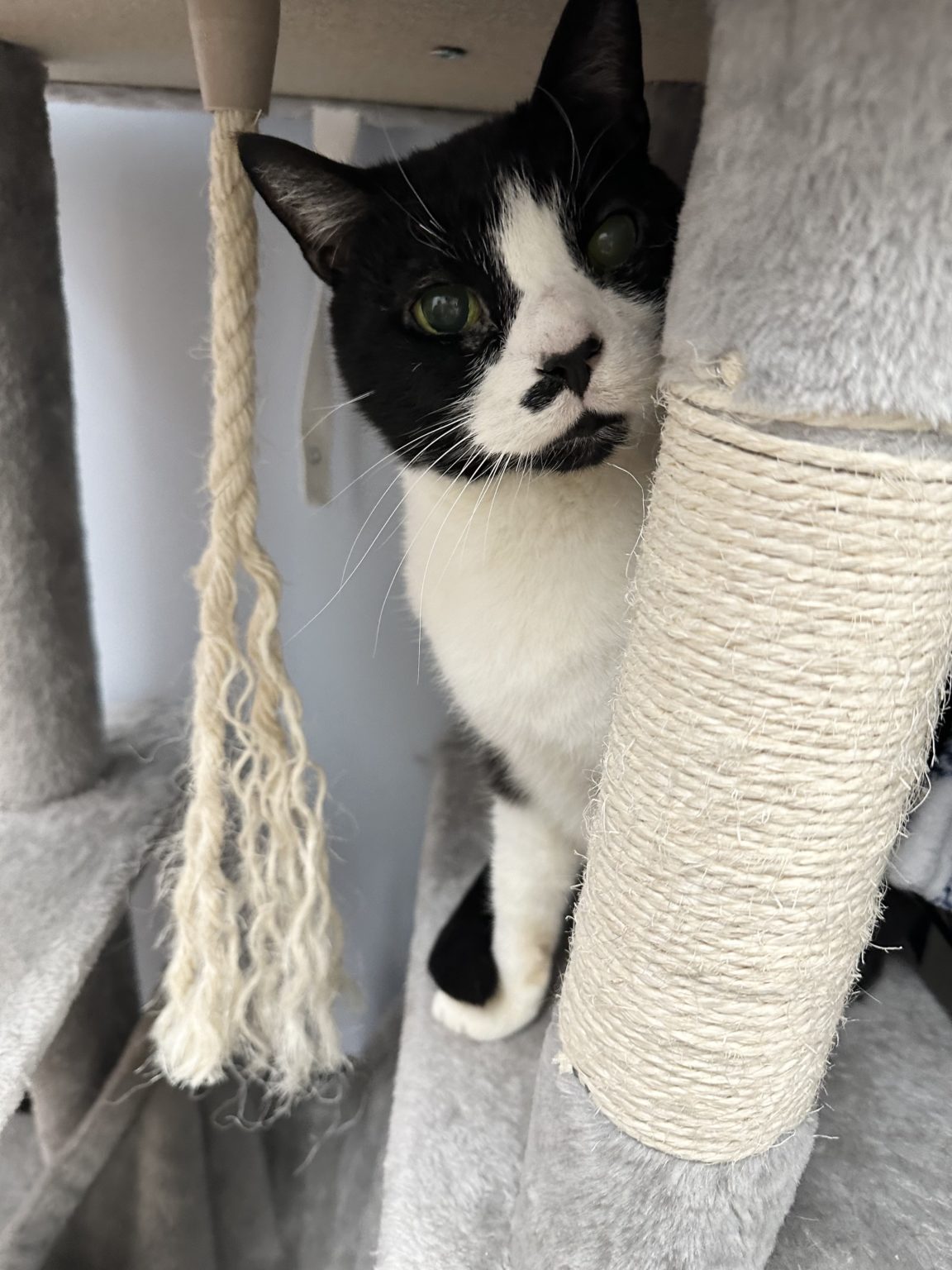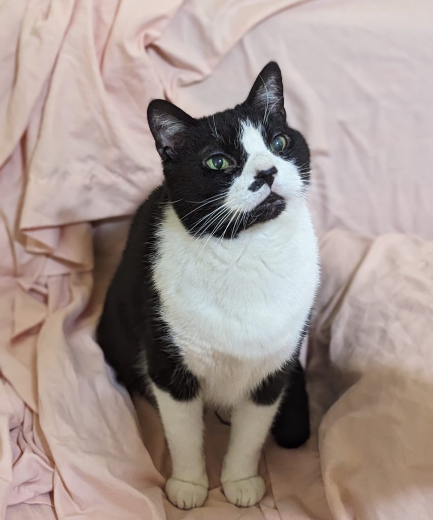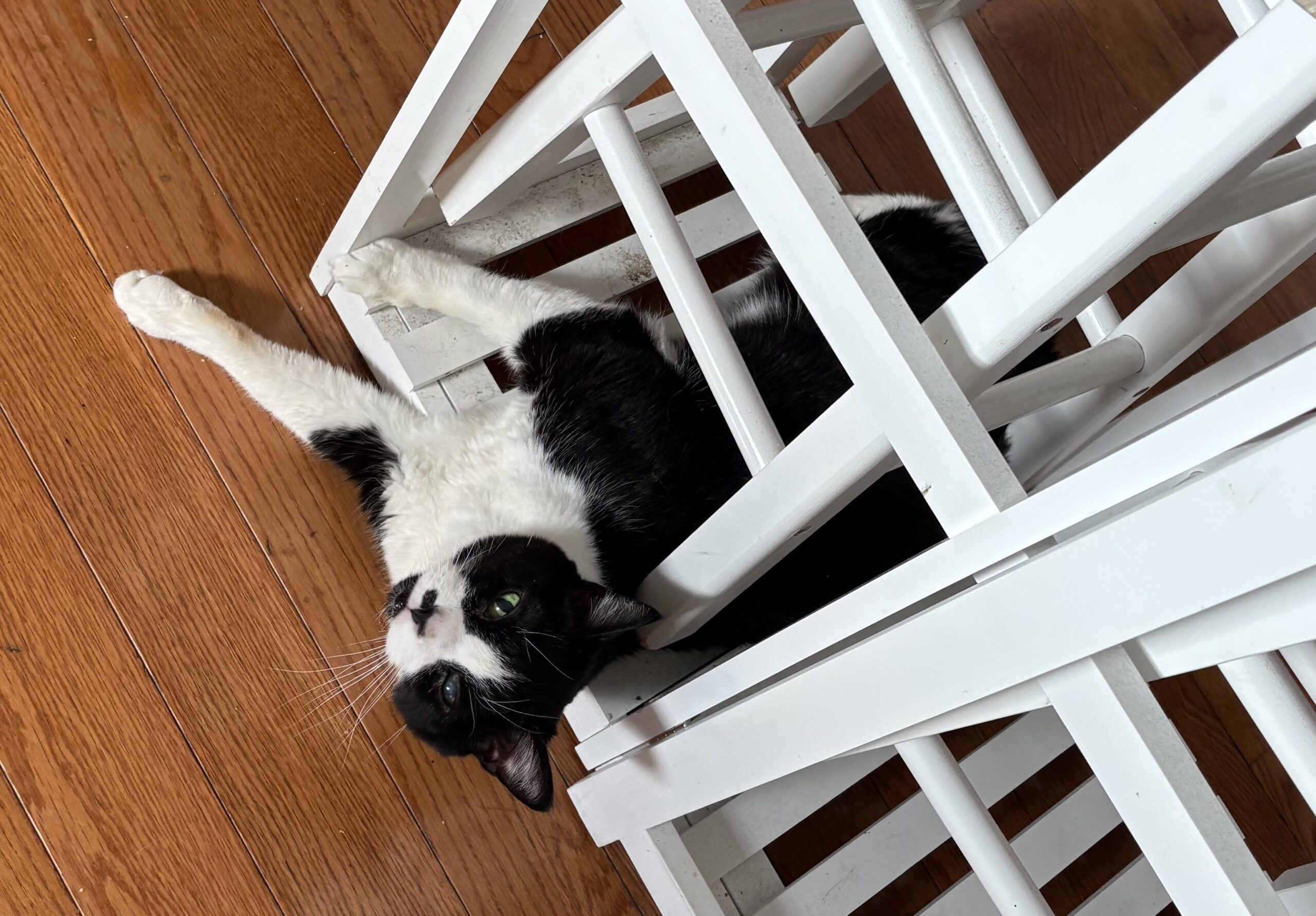 Linus is a total lovebug who adores curling up in your lap for long, cozy cuddle sessions. When he’s not melting your heart with affection, he’s showing off his playful side — zooming around with his favorite kicker toy or entertaining you with his goofy, laugh-out-loud antics.