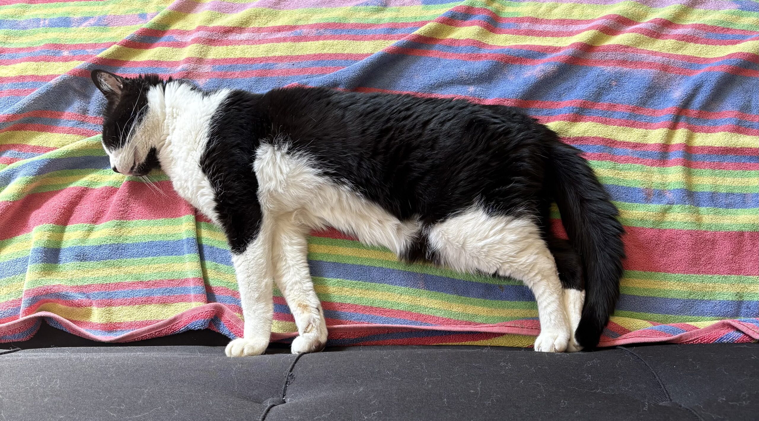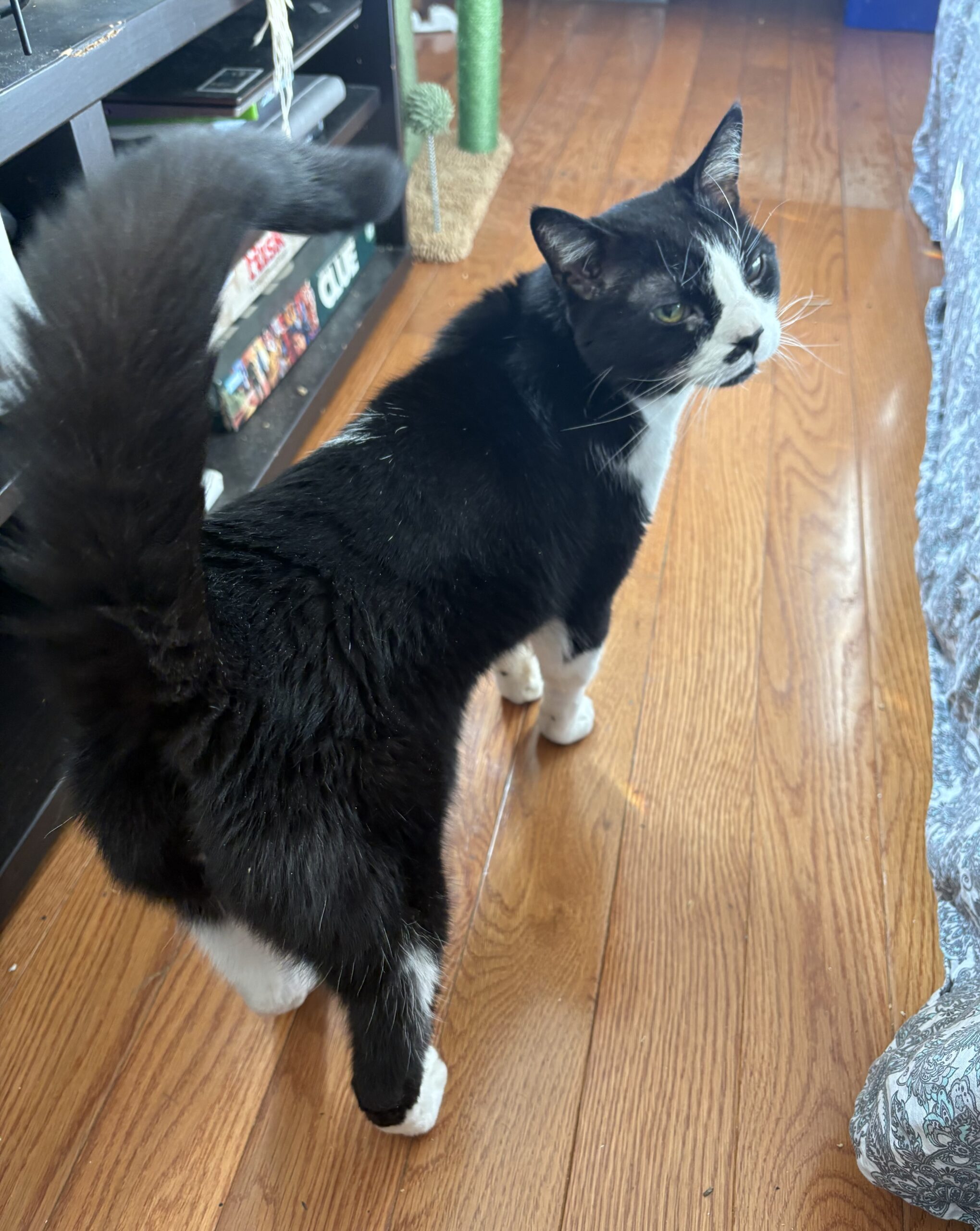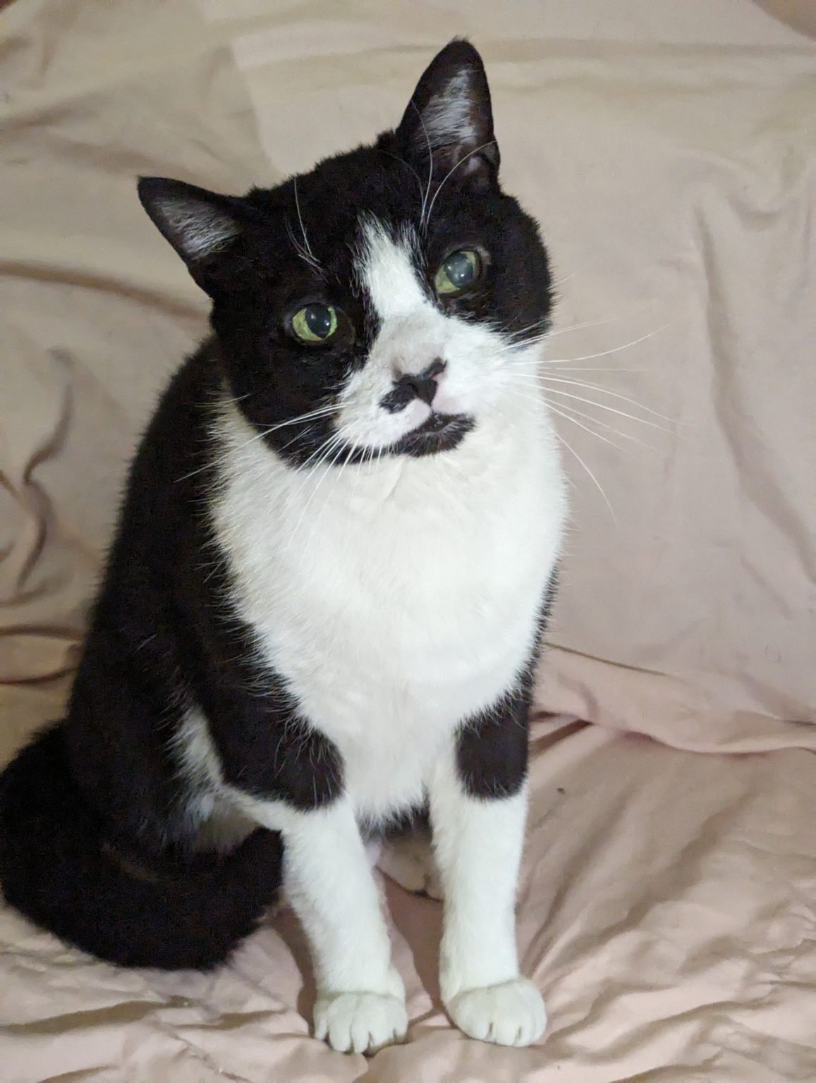 Linus is a total lovebug who adores curling up in your lap for long, cozy cuddle sessions. When he’s not melting your heart with affection, he’s showing off his playful side — zooming around with his favorite kicker toy or entertaining you with his goofy, laugh-out-loud antics.