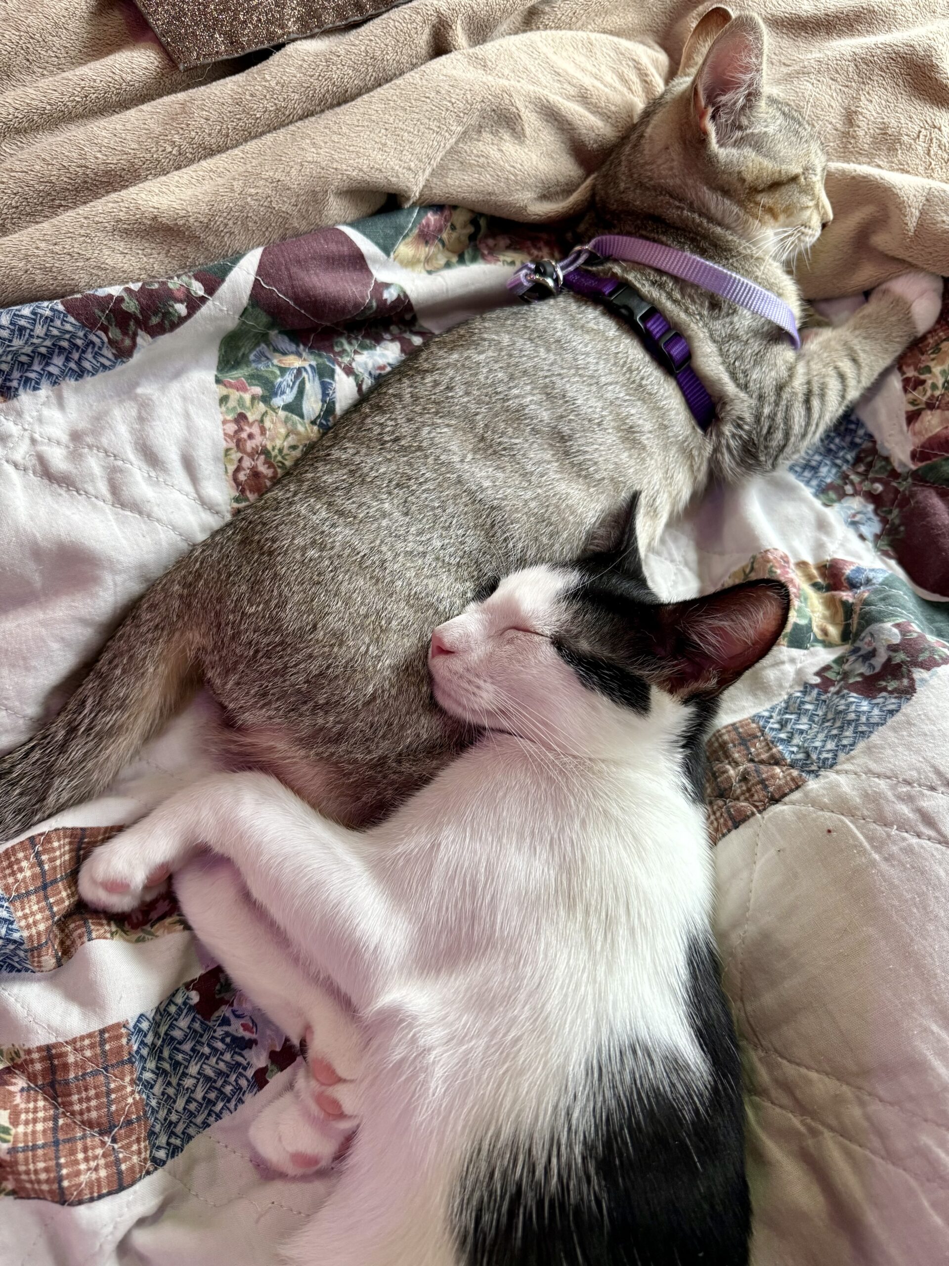🎨 Michelangelo, the tabby, is a swirl of stripes and sunshine. He’s the bold explorer, the first to leap into a new adventure (or laundry basket), and the last to leave your lap. His purr is instant, his joy contagious.