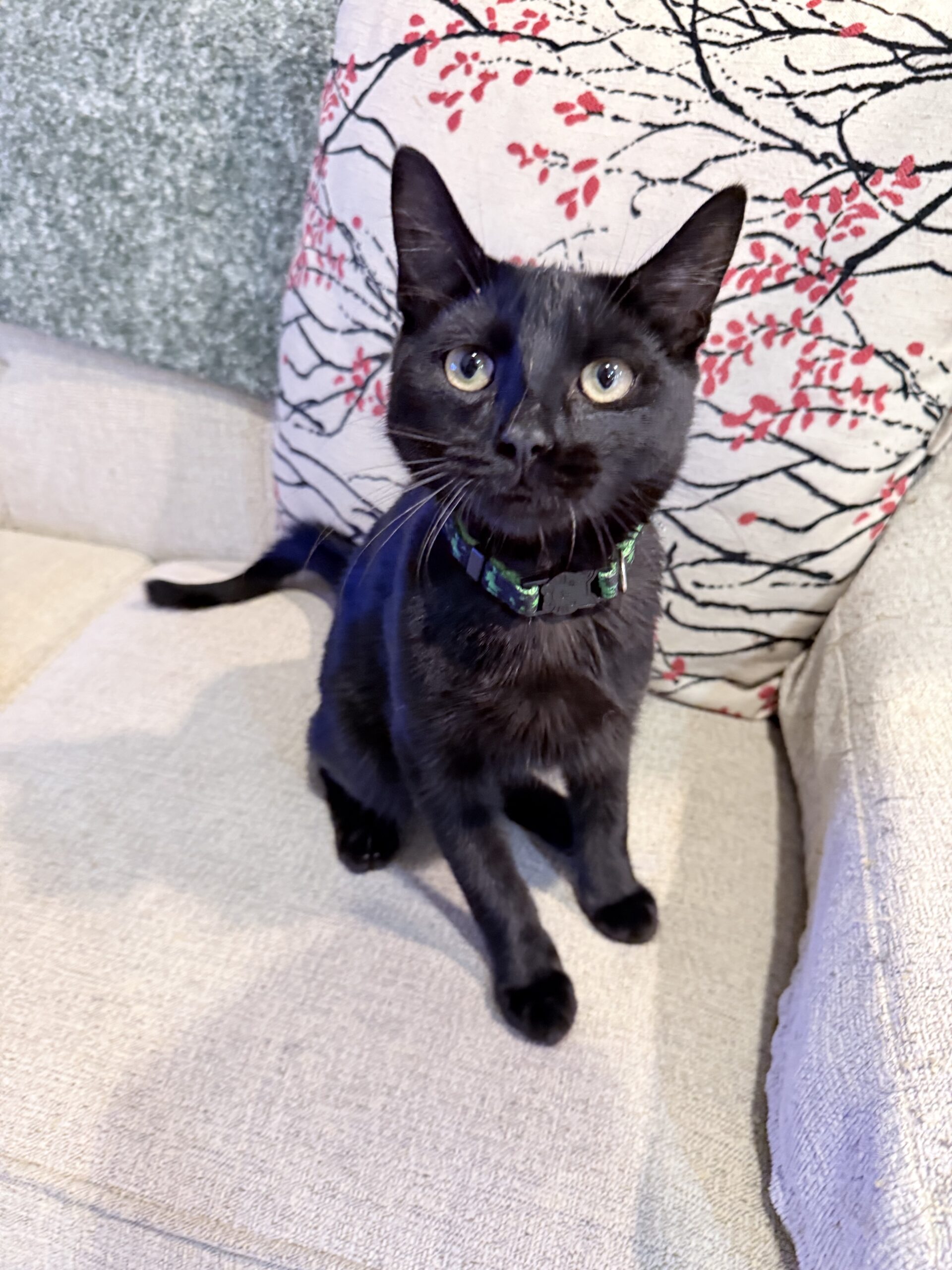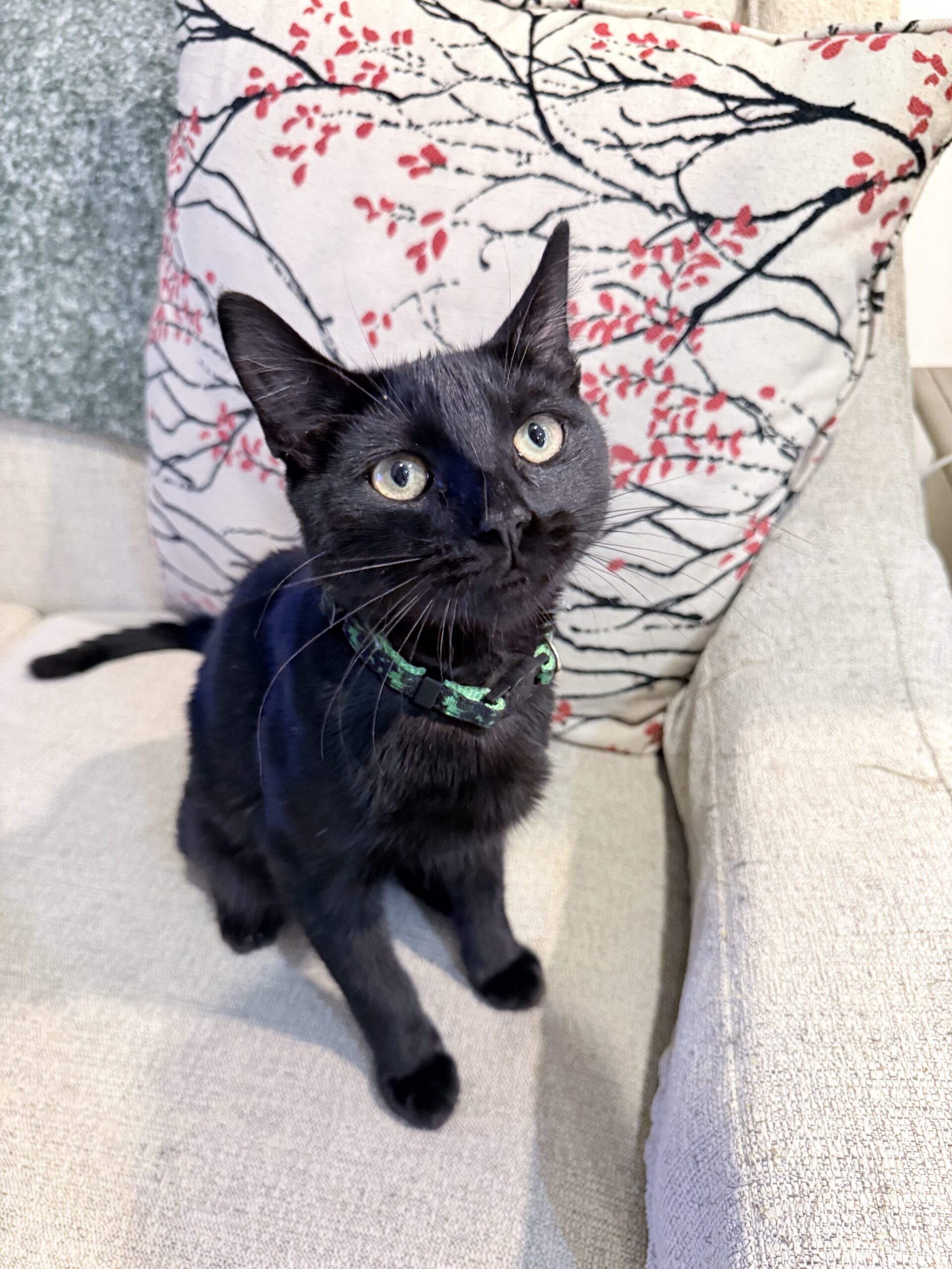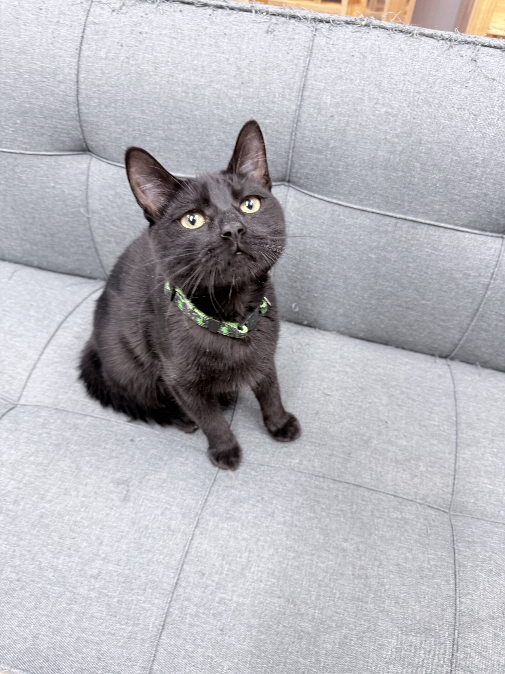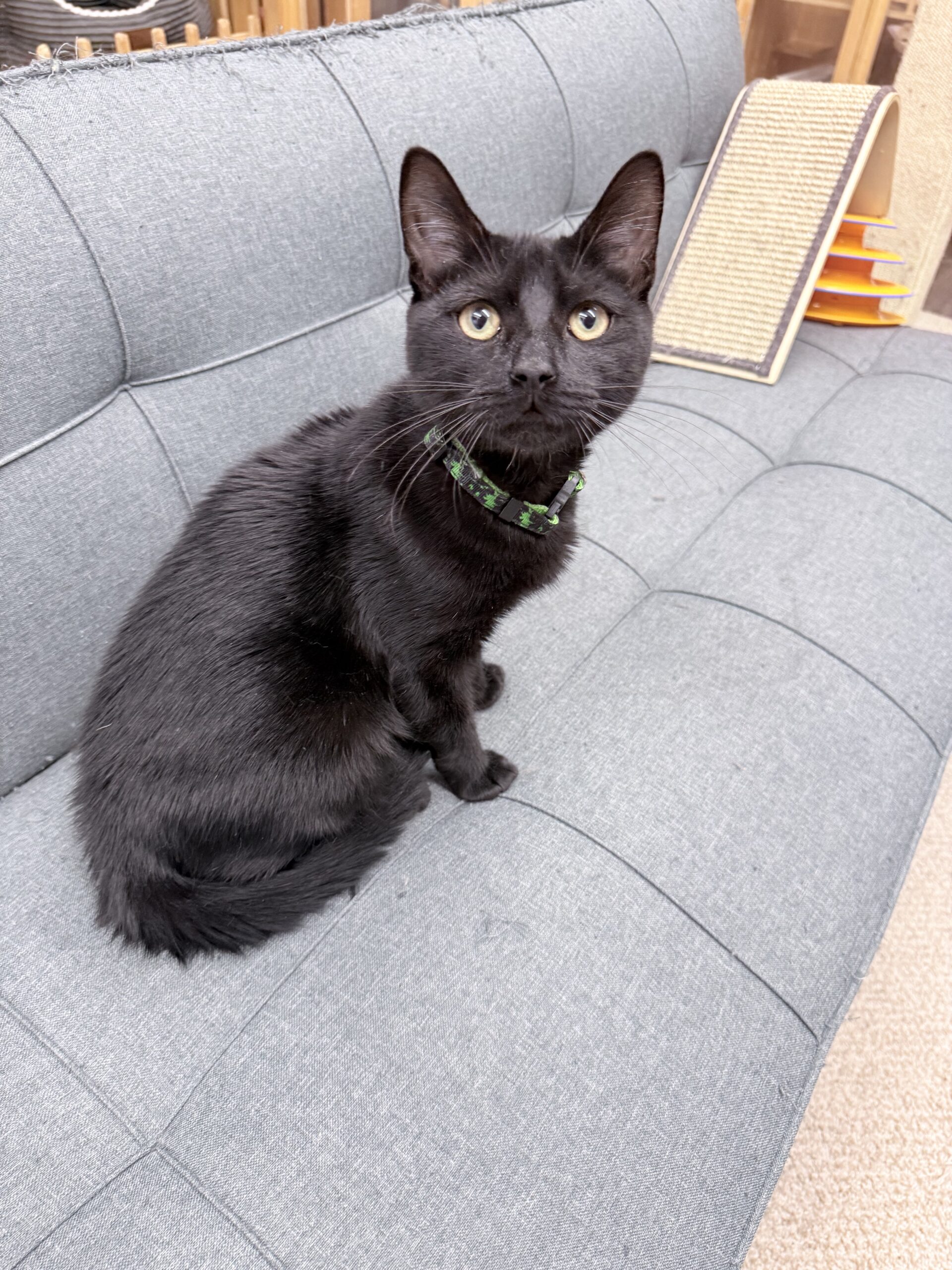 Nami is the kind of girl who settles into your lap like she belongs there, who follows you from room to room not out of fear but out of trust, who looks at you with those deep, earnest eyes that say she remembers every kindness. She’s tender, affectionate, and endlessly loving — a cat who survived by believing in people, and who now thrives because someone finally believed in her.