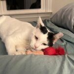He is only a little shy around new people, but once he warms up to you, you’ll never find a more affectionate, loving cat. He is very laid-back but also enjoys playing with wand toys and can’t get enough pets. While he loves people, he is a bit scrappy and aggressive toward other male cats. For that reason, I think he may do best as an only cat.