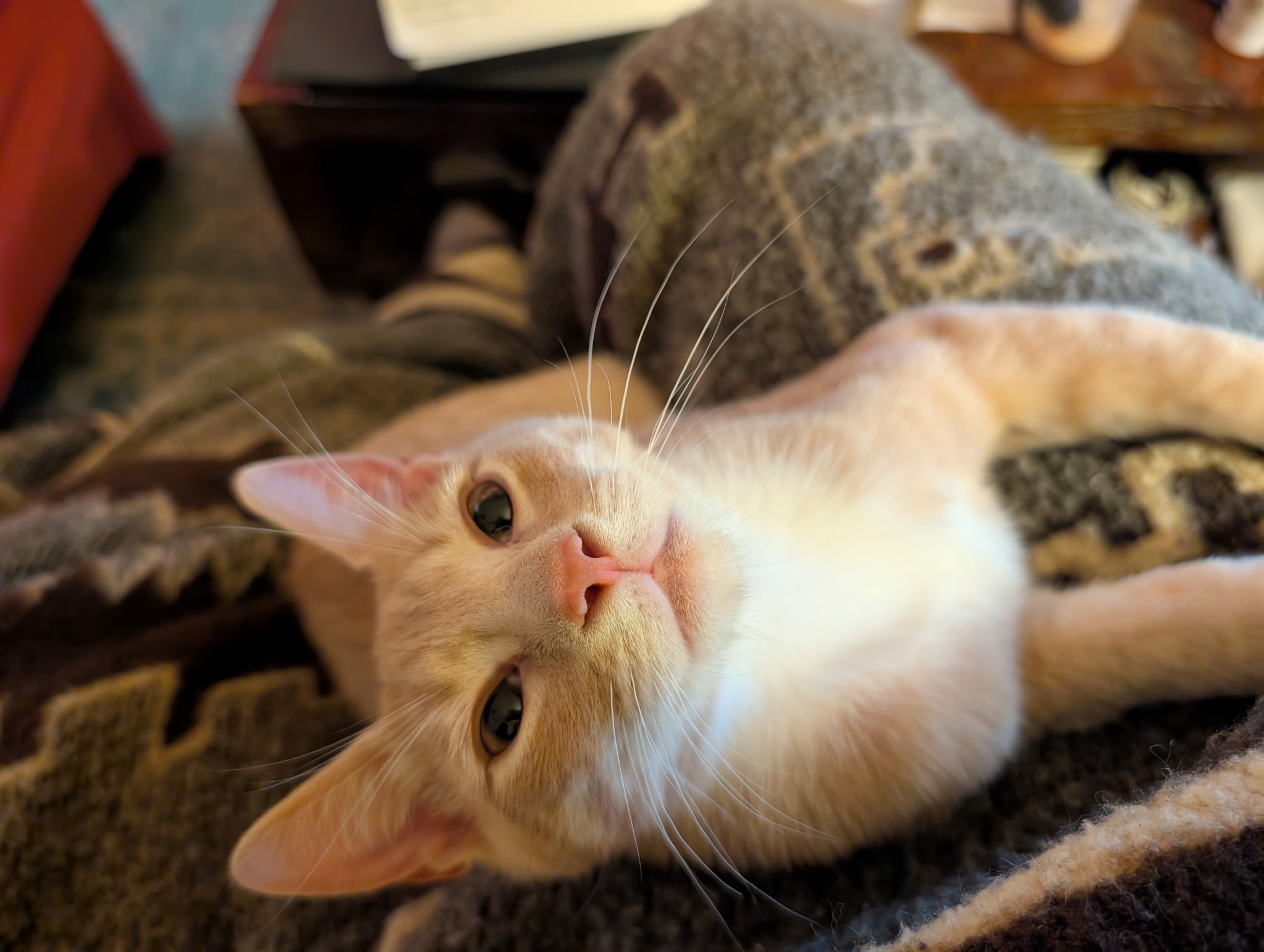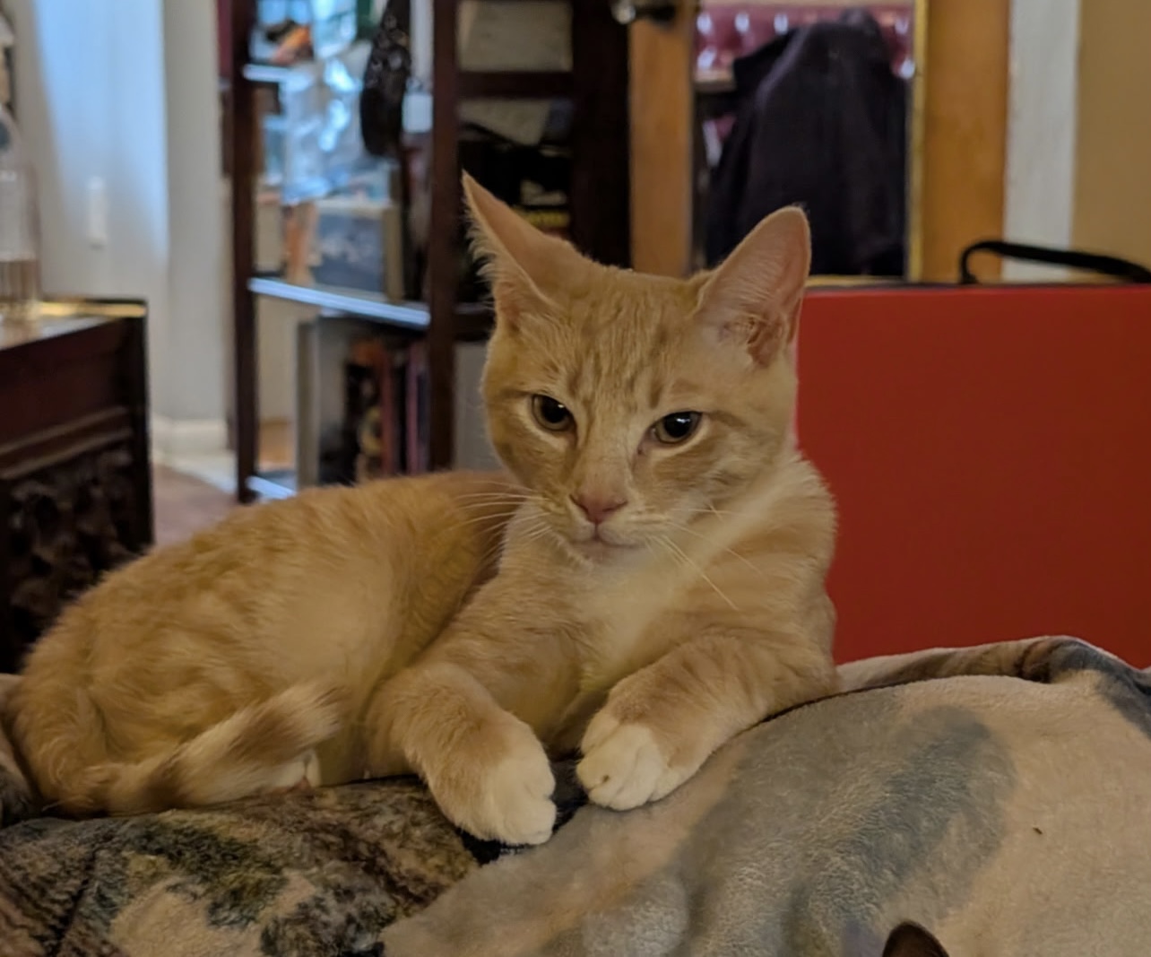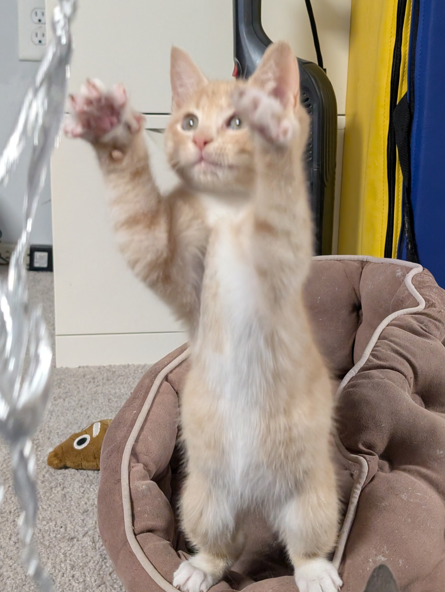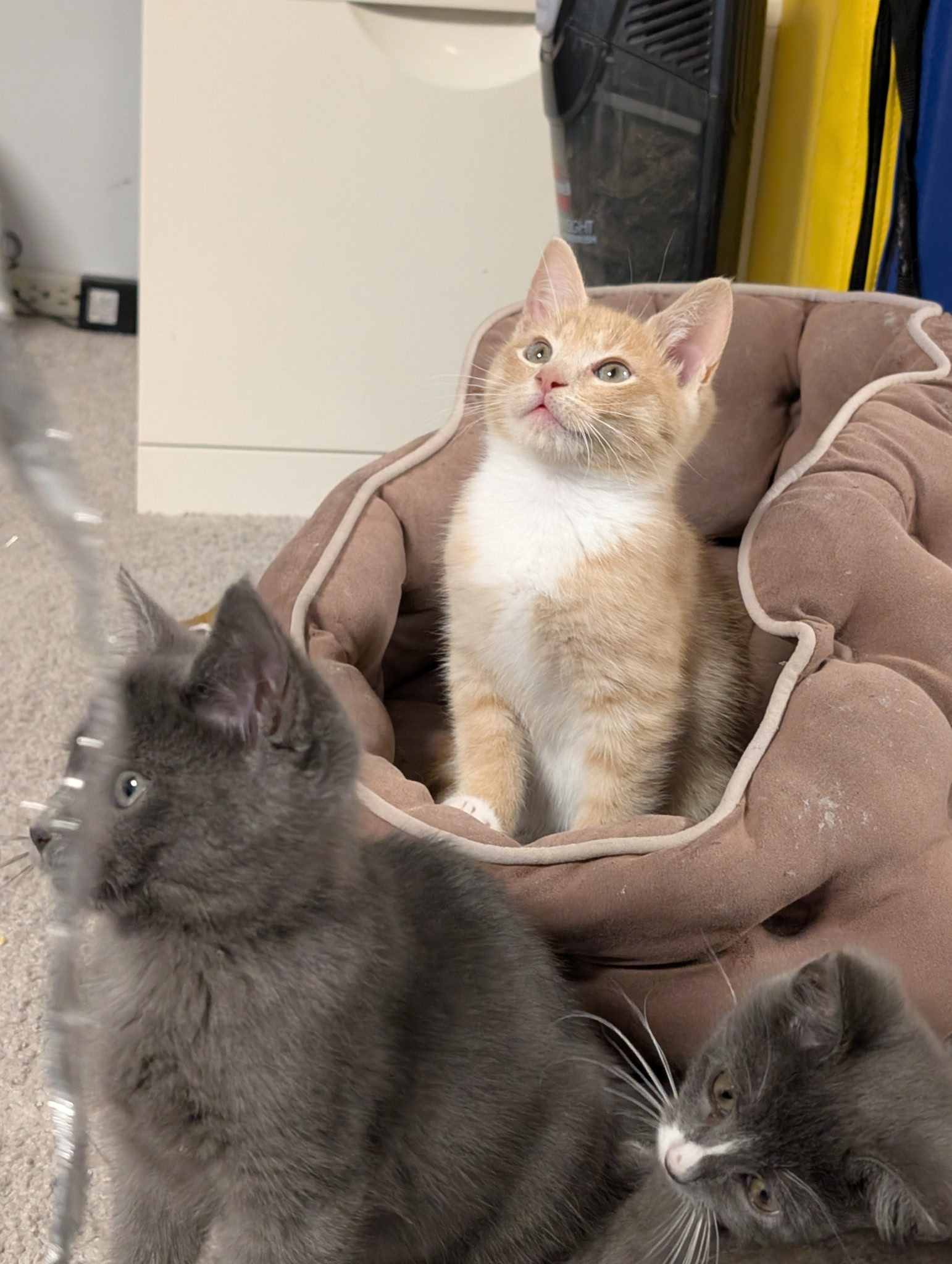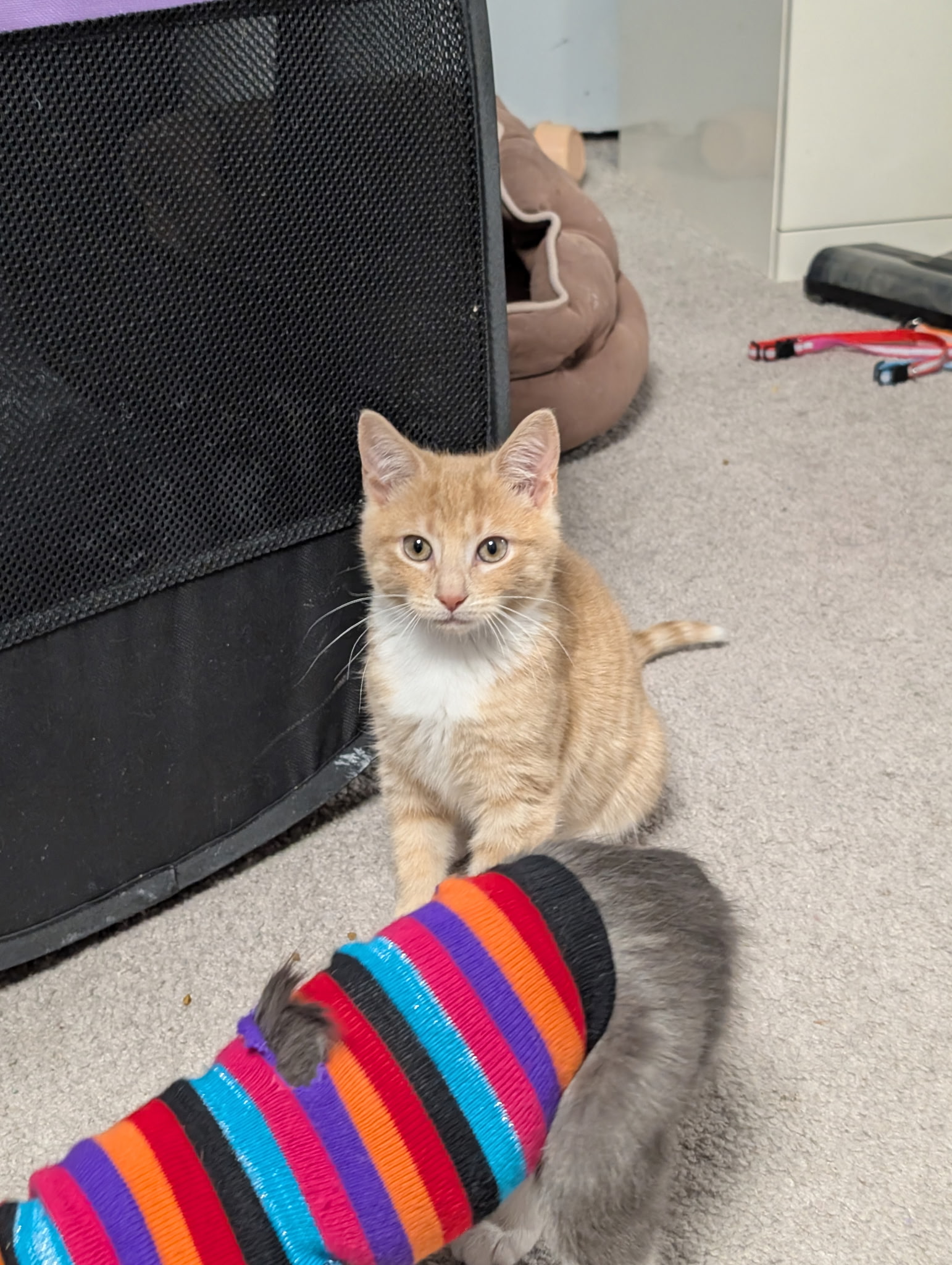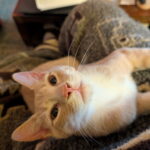 Creamsicle, the orange‑and‑white boy of the litter, was the first to peek out once the family was rescued — blinking up at the world like he already suspected it might be kind. He’s bright, affectionate, and full of that soft, glowing sweetness that makes you fall in love instantly. Creamsicle brings light wherever he goes, and he’s happiest with a sibling beside him to share the warmth.