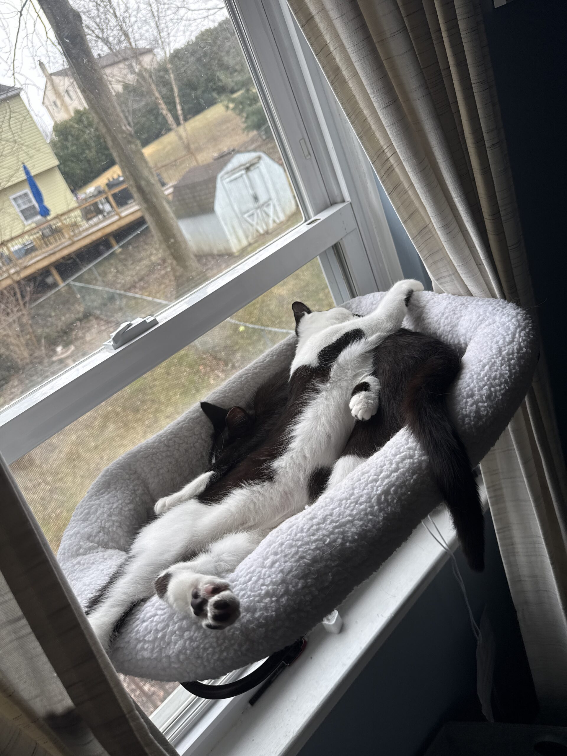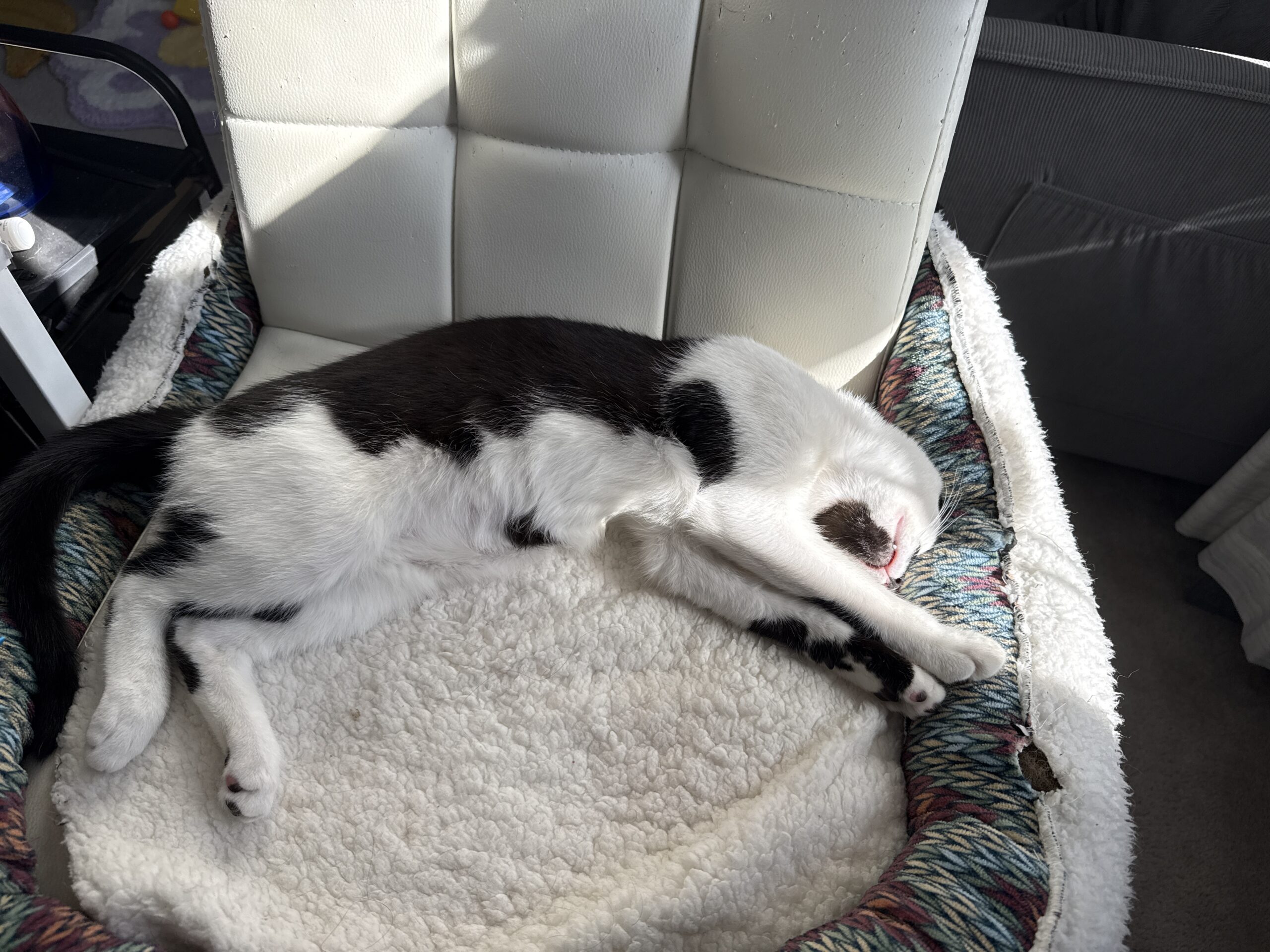 Skippy carries a spark that never went out, even in the worst moments. He’s playful, curious, and brave in that scrappy, resilient way that comes from fighting for every day of your life. He adores Puff, follows him, reassures him, and curls around him like he’s protecting the last piece of family he has.
