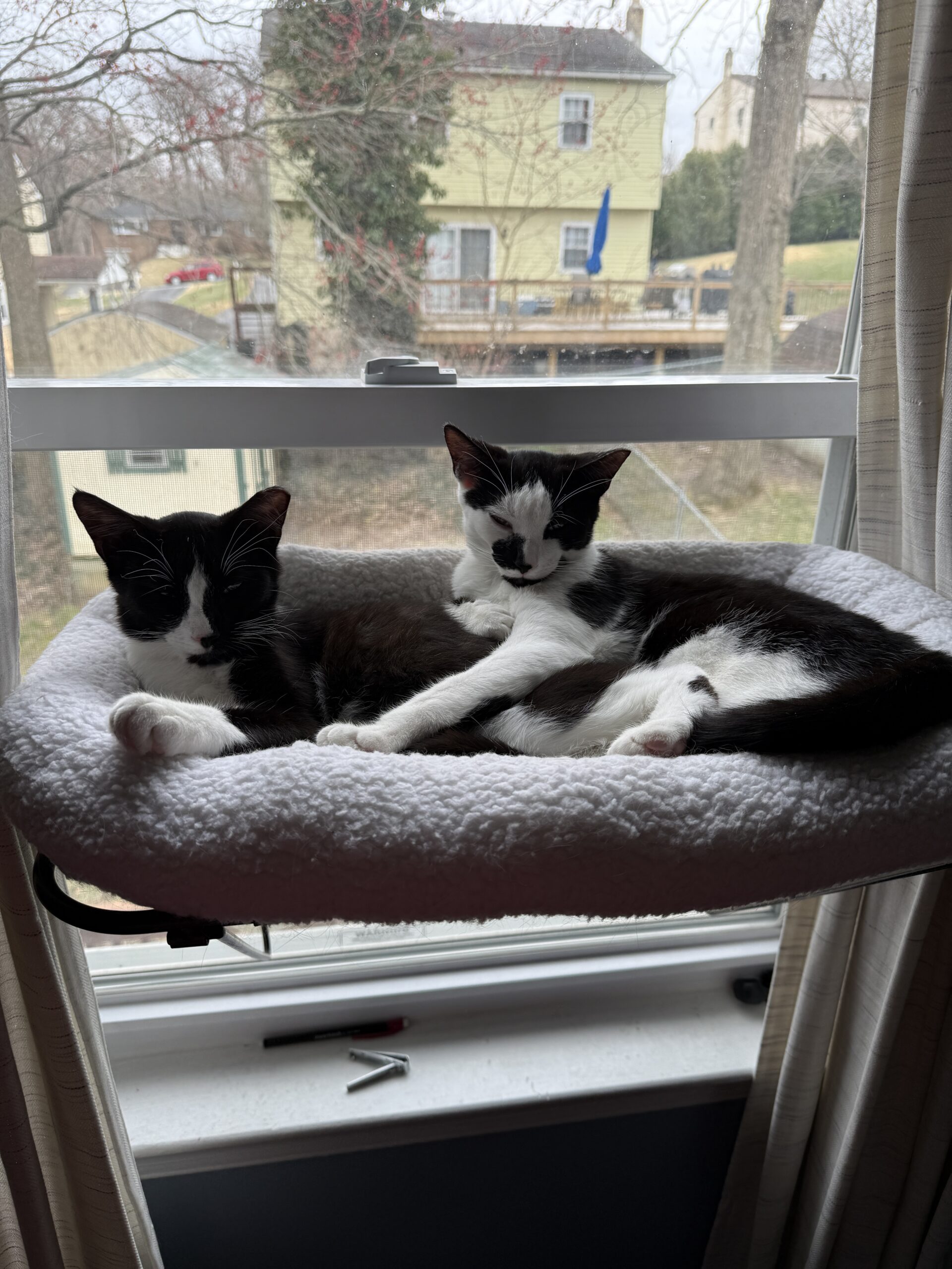 Puff and Skippy grew up in one of the harshest places a kitten can start life: a South Philly fish market where the nights were freezing, the days were loud, and survival depended on whatever their parents could pull from a dumpster. Their mom and dad did everything they could — foraging through trash, dodging traffic, bringing scraps back to their babies — but there was no shelter, no warmth, no safety. Just concrete, cold wind, and hunger.
