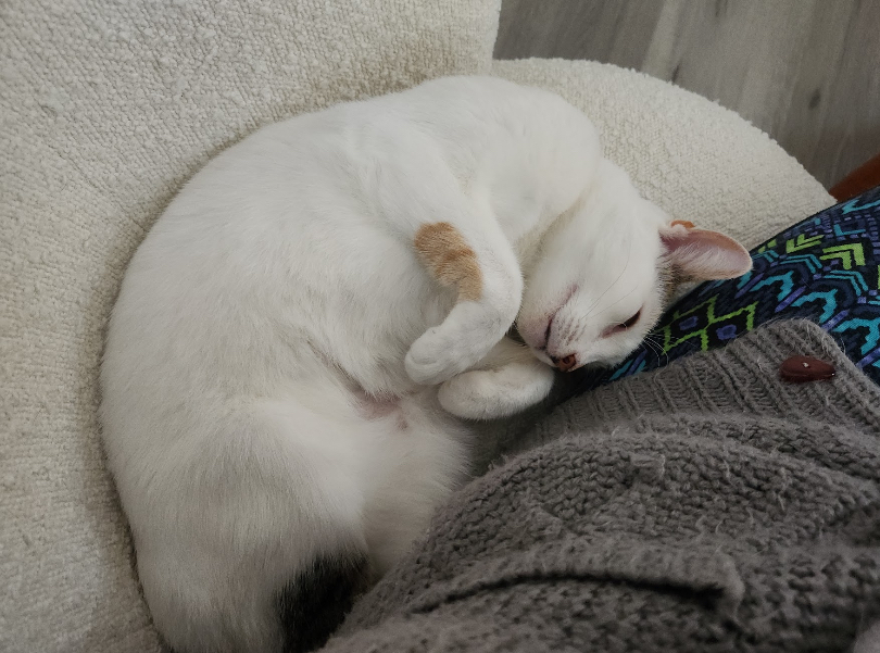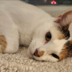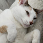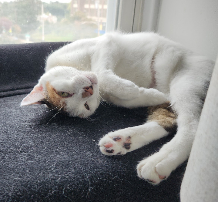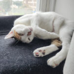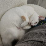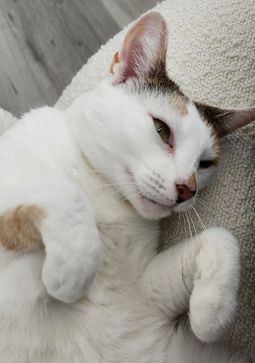 Now inside, with a new chance at life, beautiful Snowy is learning what love is and how to trust — eager to believe that she deserves all she’s come to adore: quiet, sun-soaked naps in the windowsill, fuzzy blankets, and discovering the joys of catnip and play. Snowy has blossomed into a sweet and affectionate girl who loves pets and snuggles and makes the cutest little noises when she greets you. Her purr is loud enough to hear across the room and her heart is full with plenty of love to give to you.