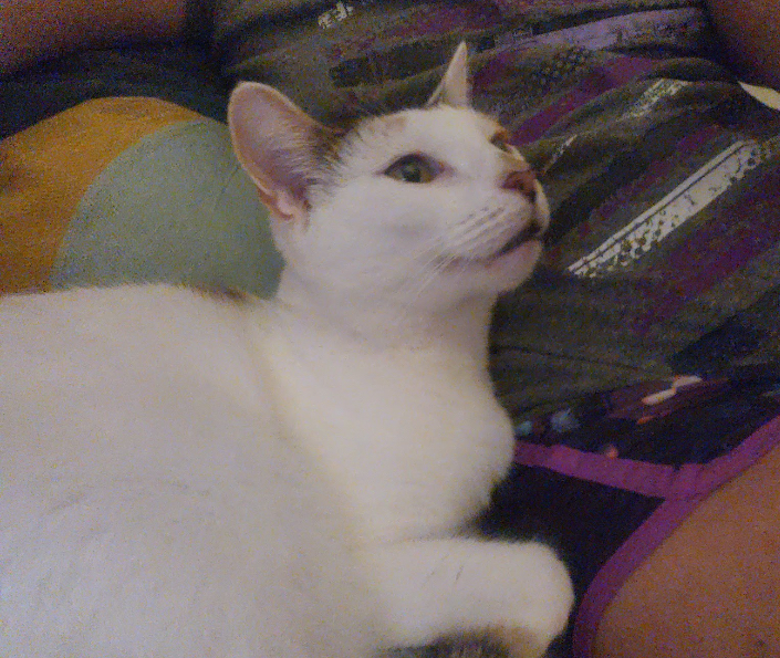 Snowy is spayed, vaccinated, and litter trained. FIV/FeLV negative. She would do well as an only cat or introduced slowly to another calm cat.