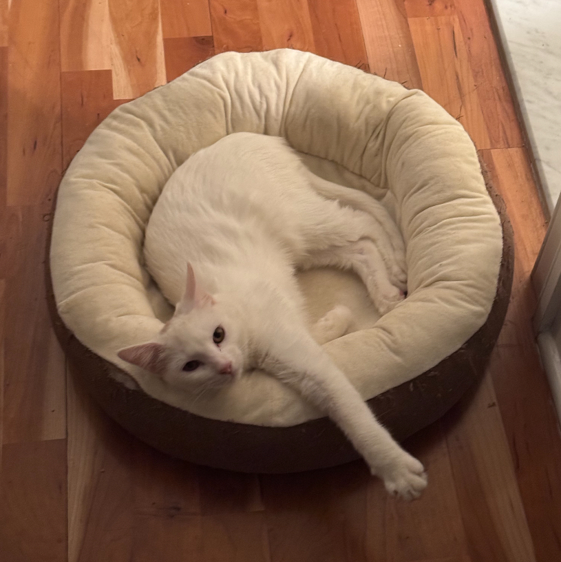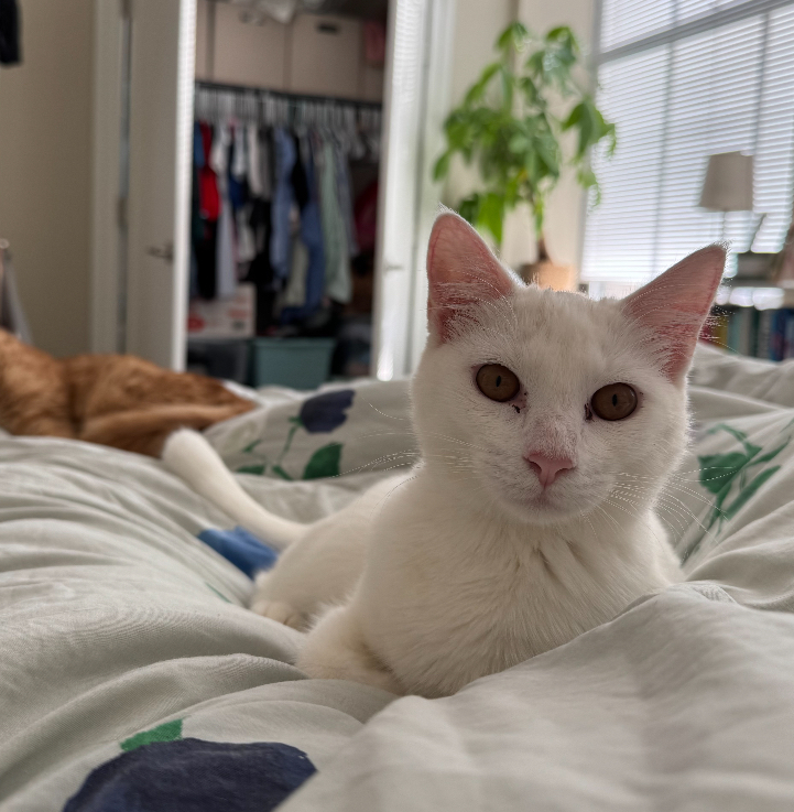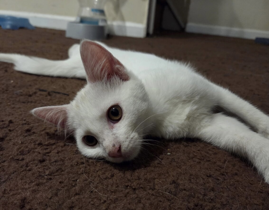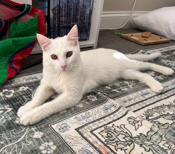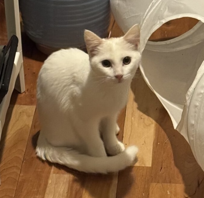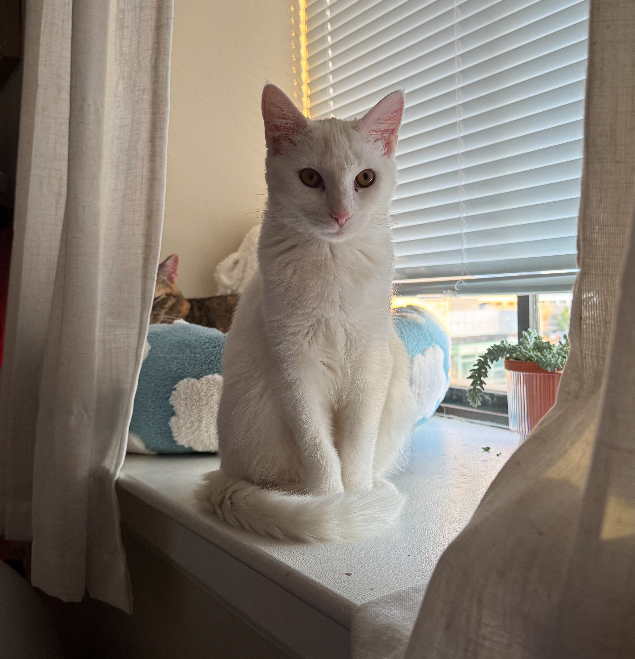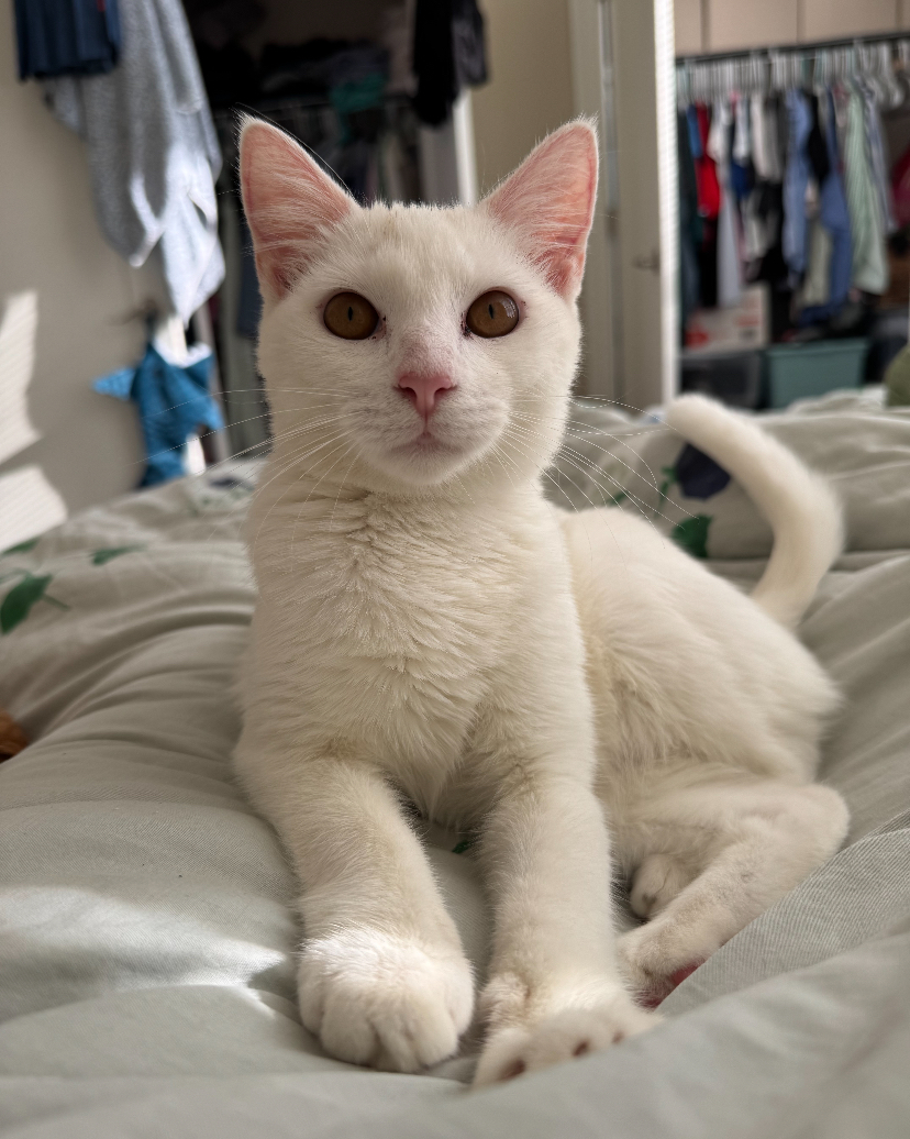 Sylphie, a snowy white sweetheart, is pure magic. Gentle, affectionate, and a little bit dreamy, she loves being held and will melt into your arms like a fluffy cloud.