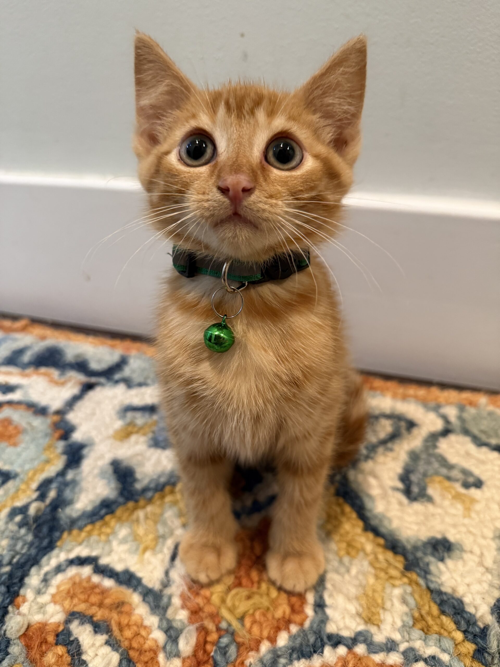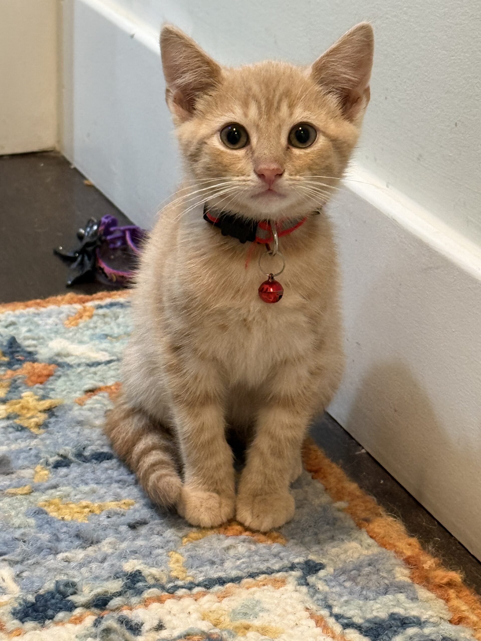 Beaujolais is one of Avaline’s orange boys—a quiet, thoughtful kitten with a heart as warm as his fur. He’s the kind of little guy who watches from the sidelines before joining in, who leans into your hand with a slow blink and a tiny purr. He’s not shy—just soulful.