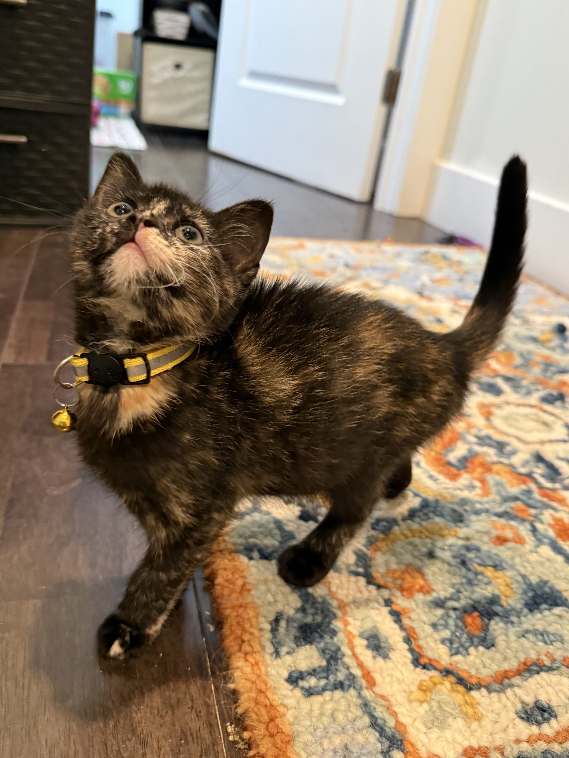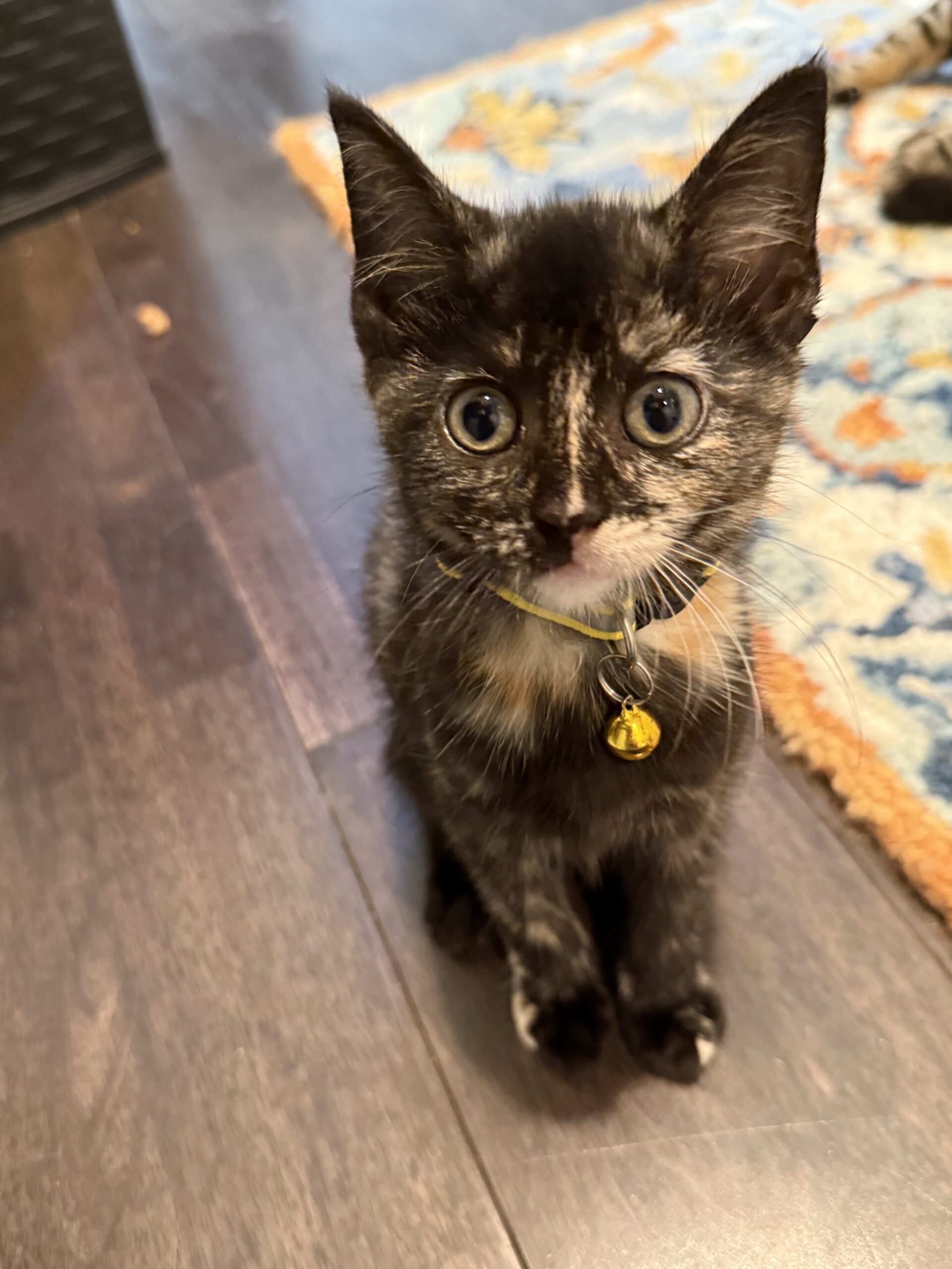 Syrah is the only girl in Avaline’s litter—a tortie with a flickering spirit and a heart that burns bright. She’s playful, clever, and just a little bit bossy (as any self-respecting tortie should be). But beneath her sass is a kitten who loves deeply, especially when she’s with one of her brothers.