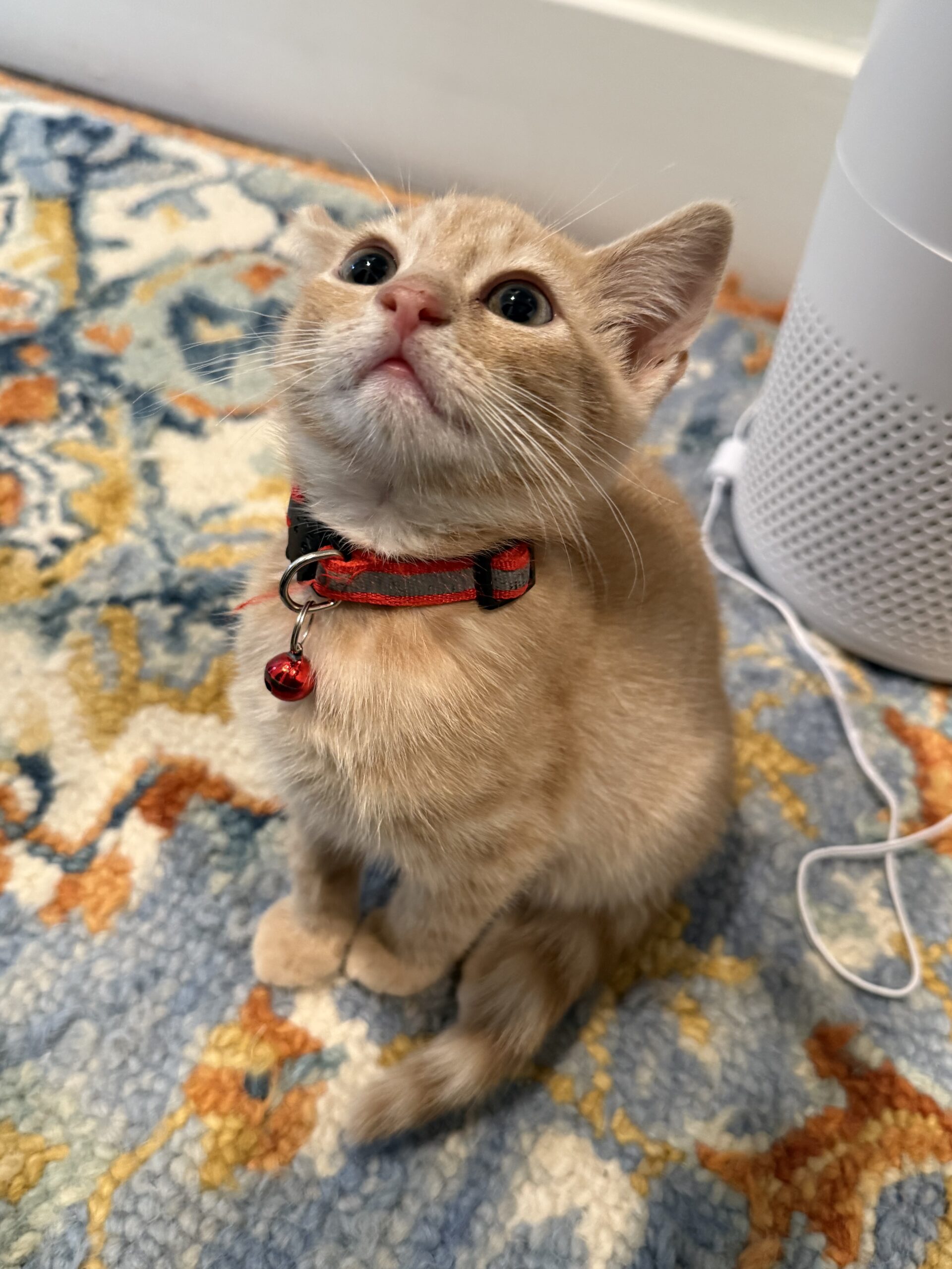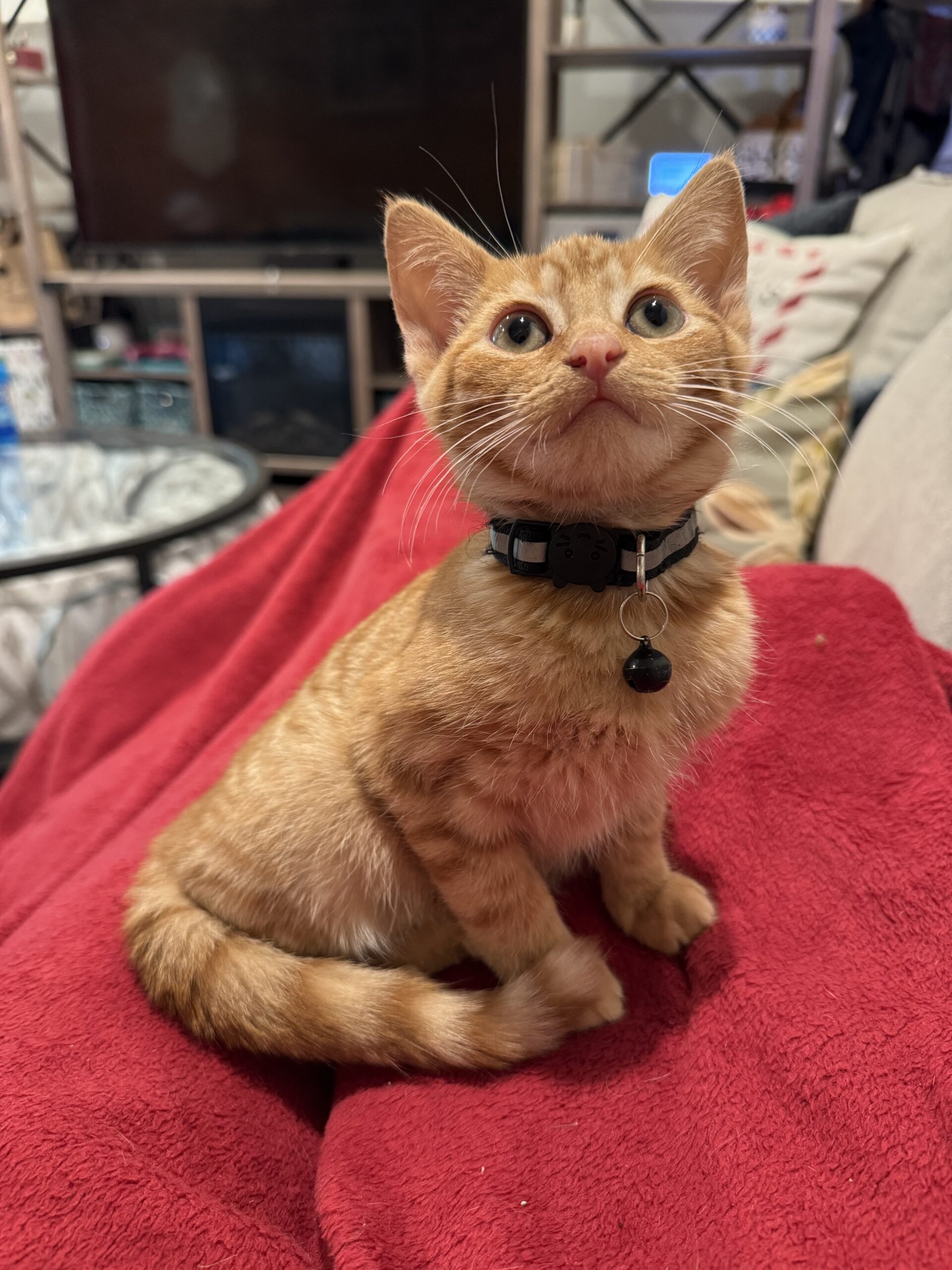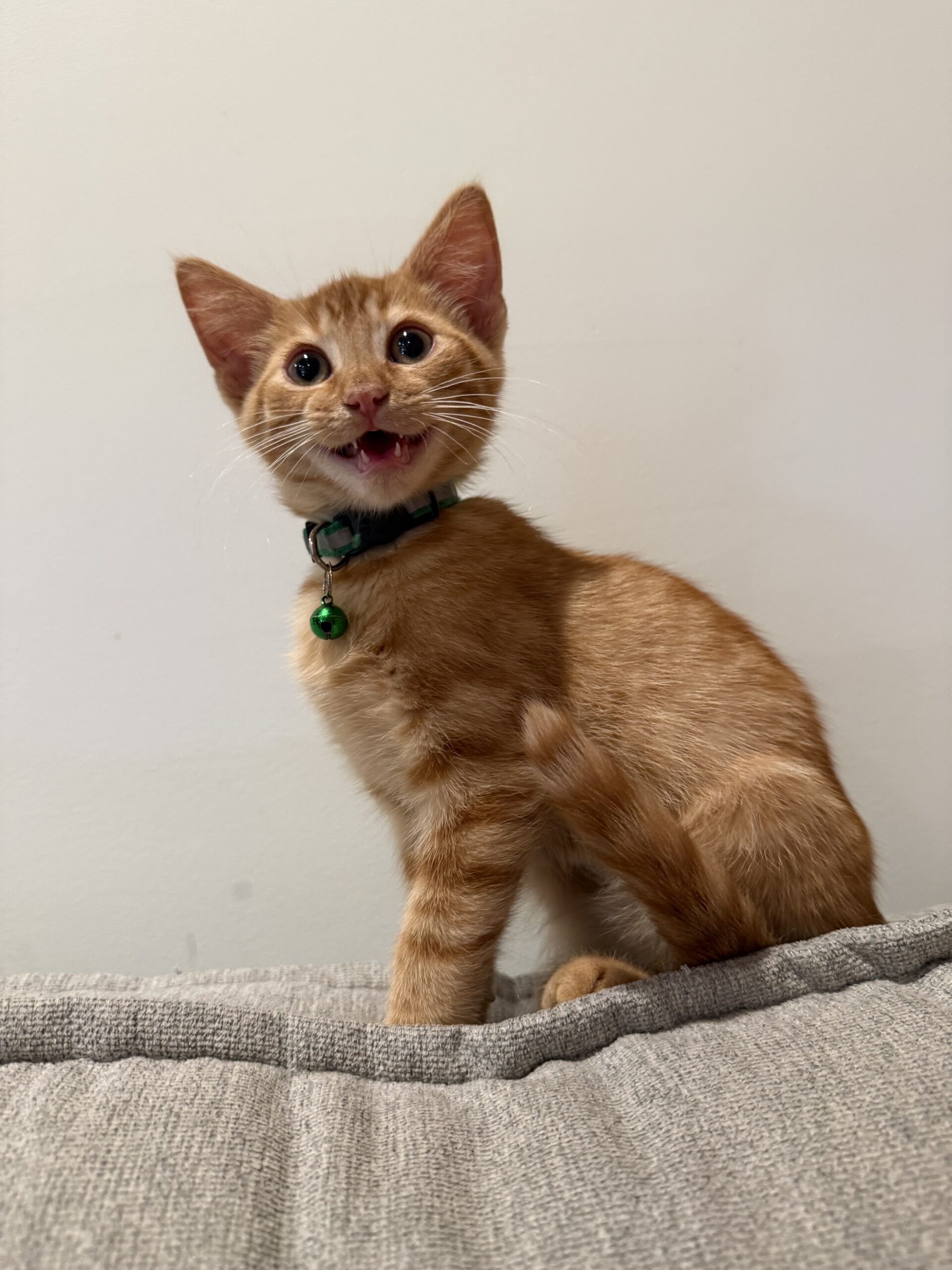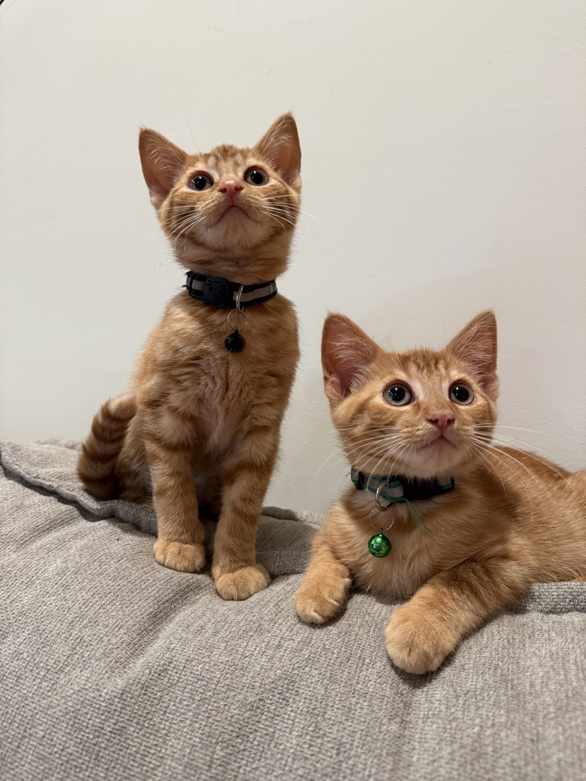 Pinot is the explorer of the group—an orange boy with a nose for adventure and a heart full of wonder. He’s the first to investigate a new toy, the first to climb the cat tree, and the first to figure out how to open the treat jar (you’ve been warned). But he’s also a total softie—quick to purr, quick to cuddle, and always happiest with a sibling nearby.