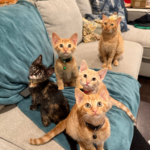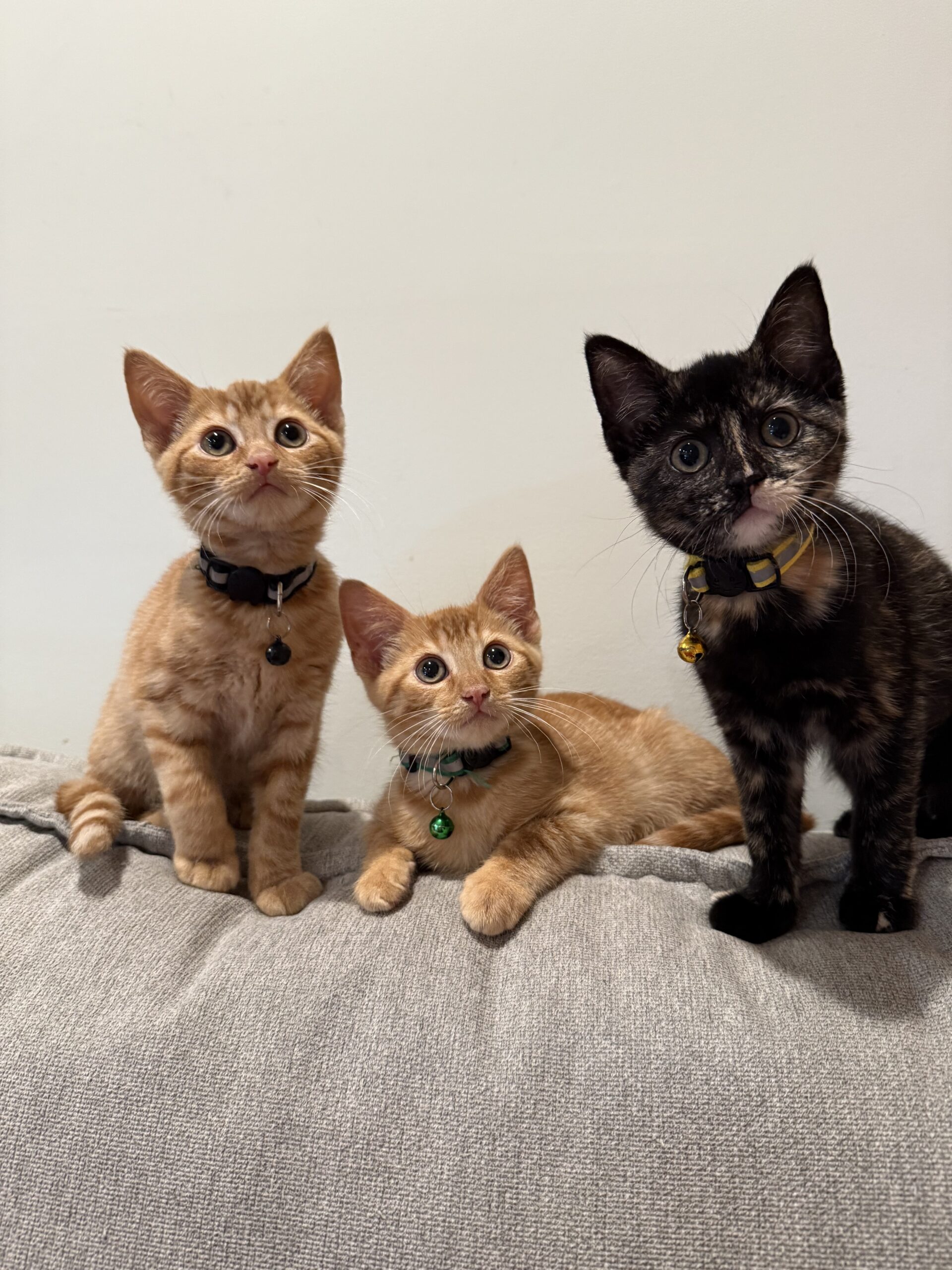 Now, at around 3 months old, they’re safe, thriving, and ready for homes of their own—but not alone. These kittens are deeply bonded and must be adopted in pairs. Whether you fall for the bold and the bashful, the curious and the cuddly, or the tortie and her orange shadow, there’s a perfect match waiting in this little family.