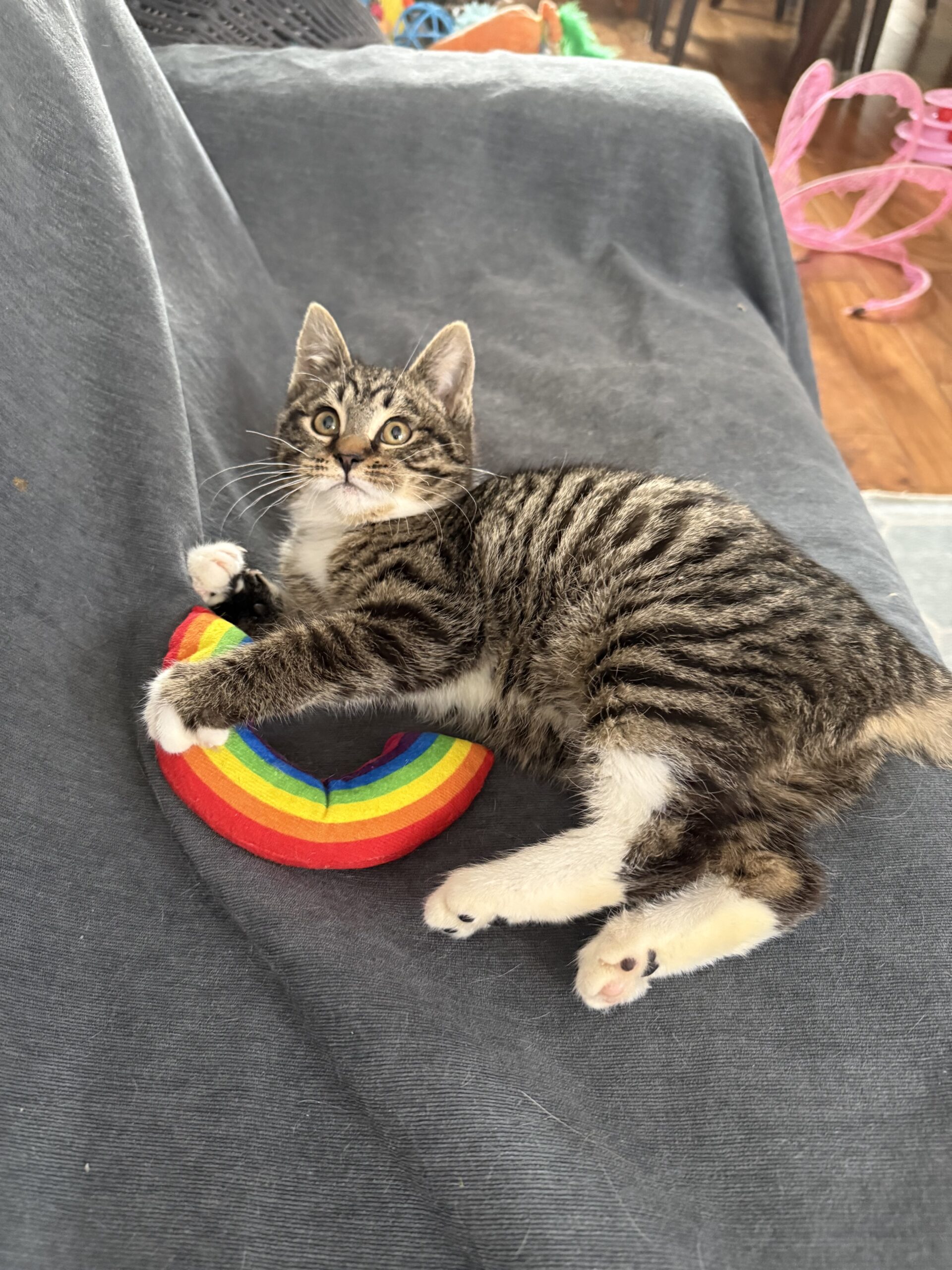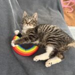The moment he was finally found, trembling but brave, Woolite didn’t hiss or hide—he leaned in. He wanted warmth, safety, a heartbeat to curl against. Now he’s discovering the softness he never knew existed: gentle hands, cozy blankets, toys that don’t require survival instincts, and naps where he doesn’t have to keep one eye open.
