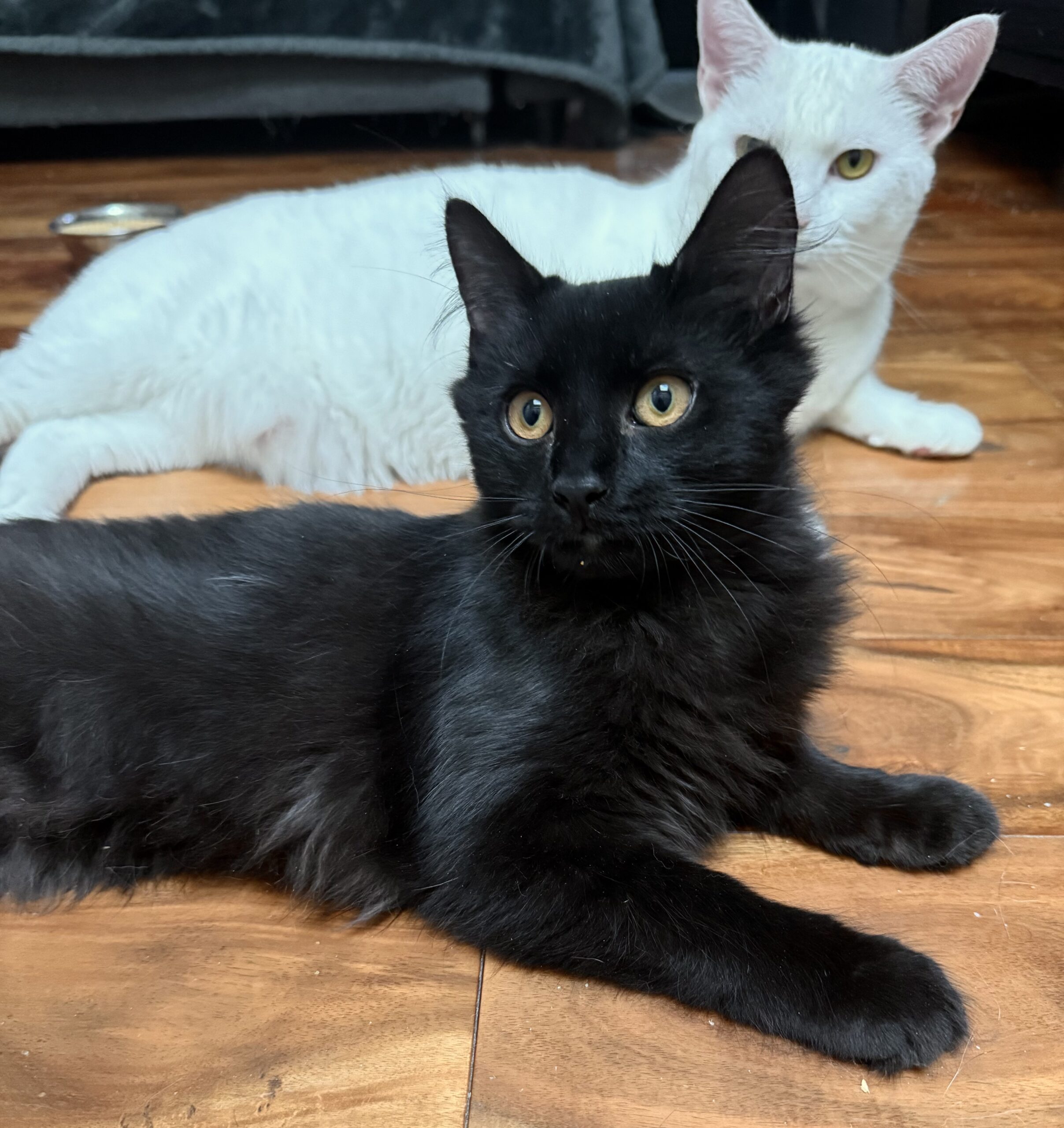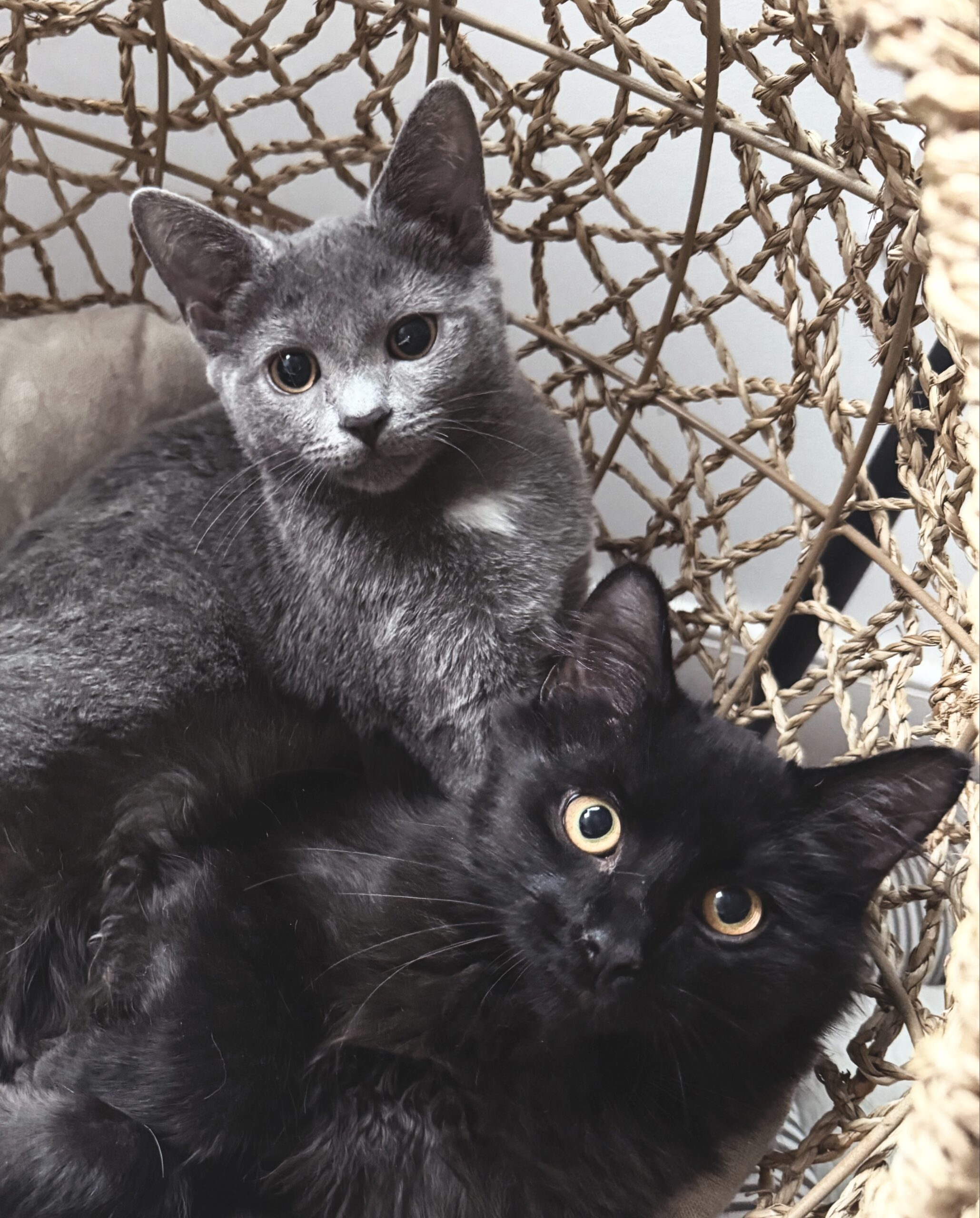 Now safe, Zibble is playful and bold, always the first to explore. Chichi is gentle and watchful, her purrs like lullabies. They chase toys, nap in sunbeams, and still sleep curled up like puzzle pieces.