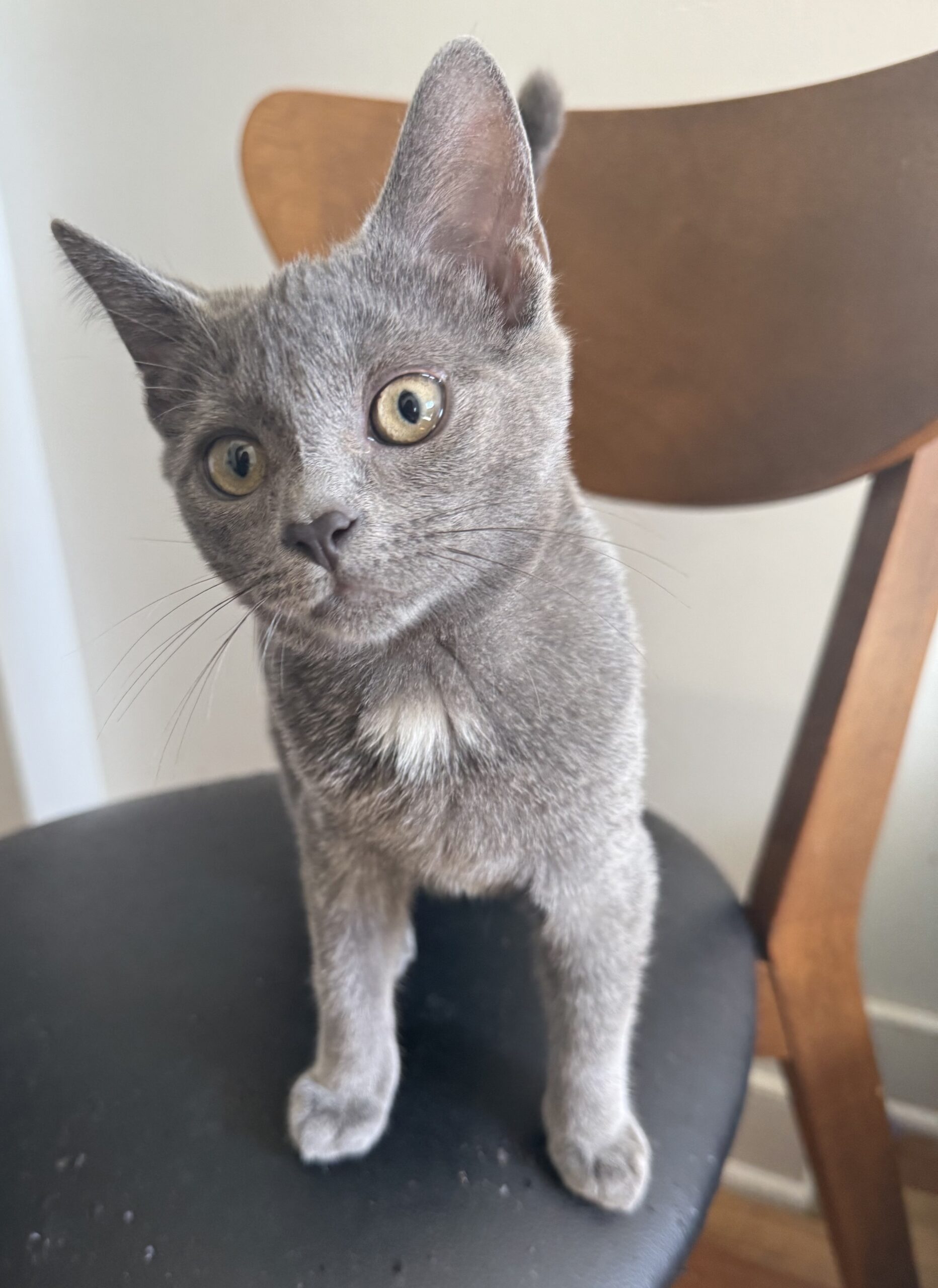 Chichi, a soft grey girl with quiet strength and a soul that glows.