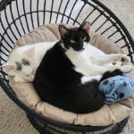 Ziti is the more outgoing of the pair—full of charm, goofiness, and love. He’s a world-class napper who can fall asleep just about anywhere, including cradled in your arms like a baby. His playful and affectionate nature brings comfort not only to people, but most especially to Mimi.